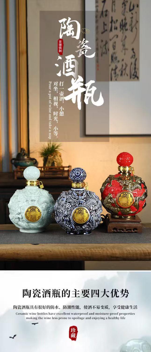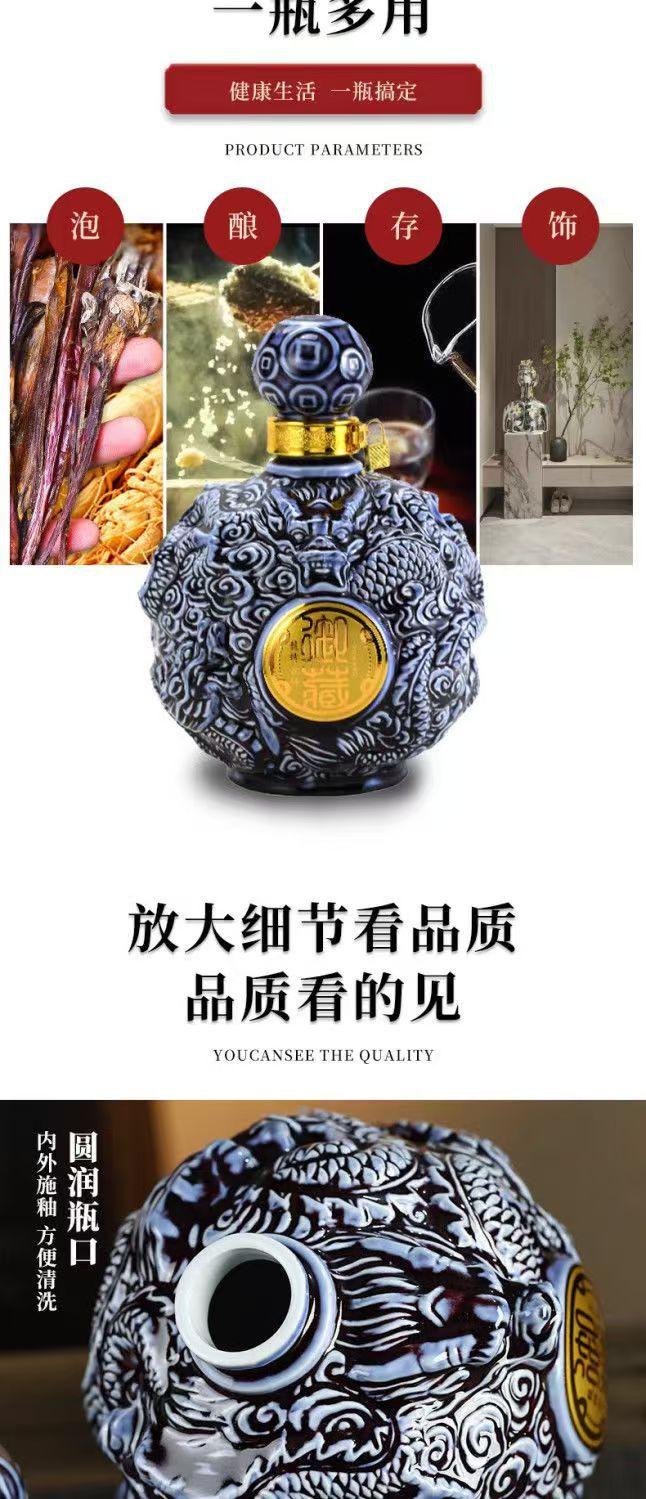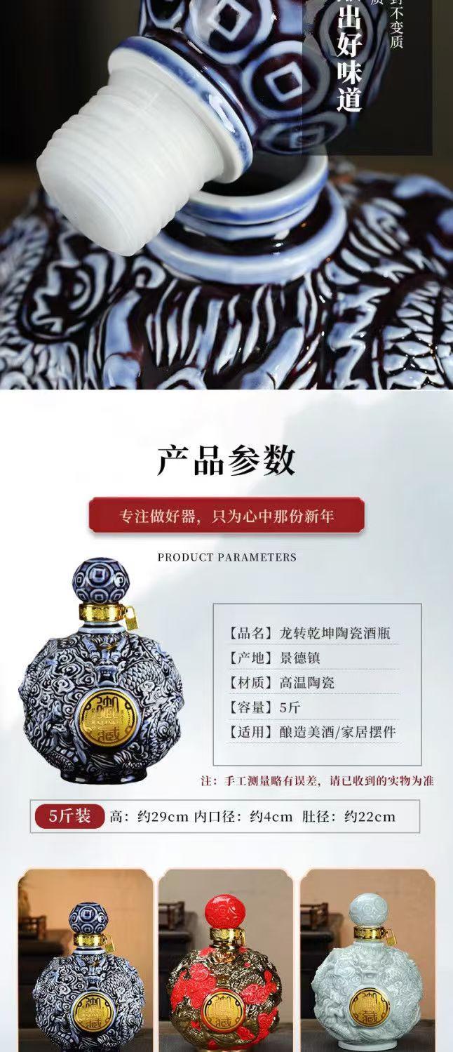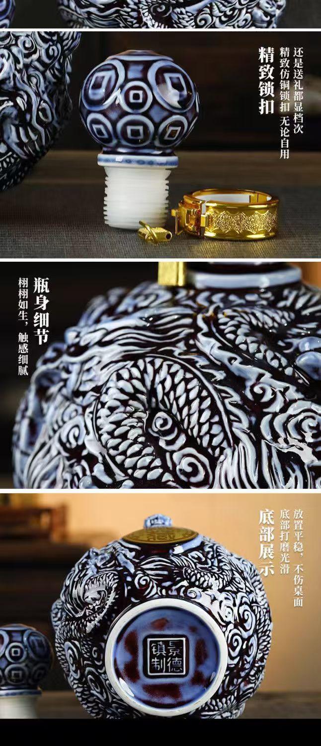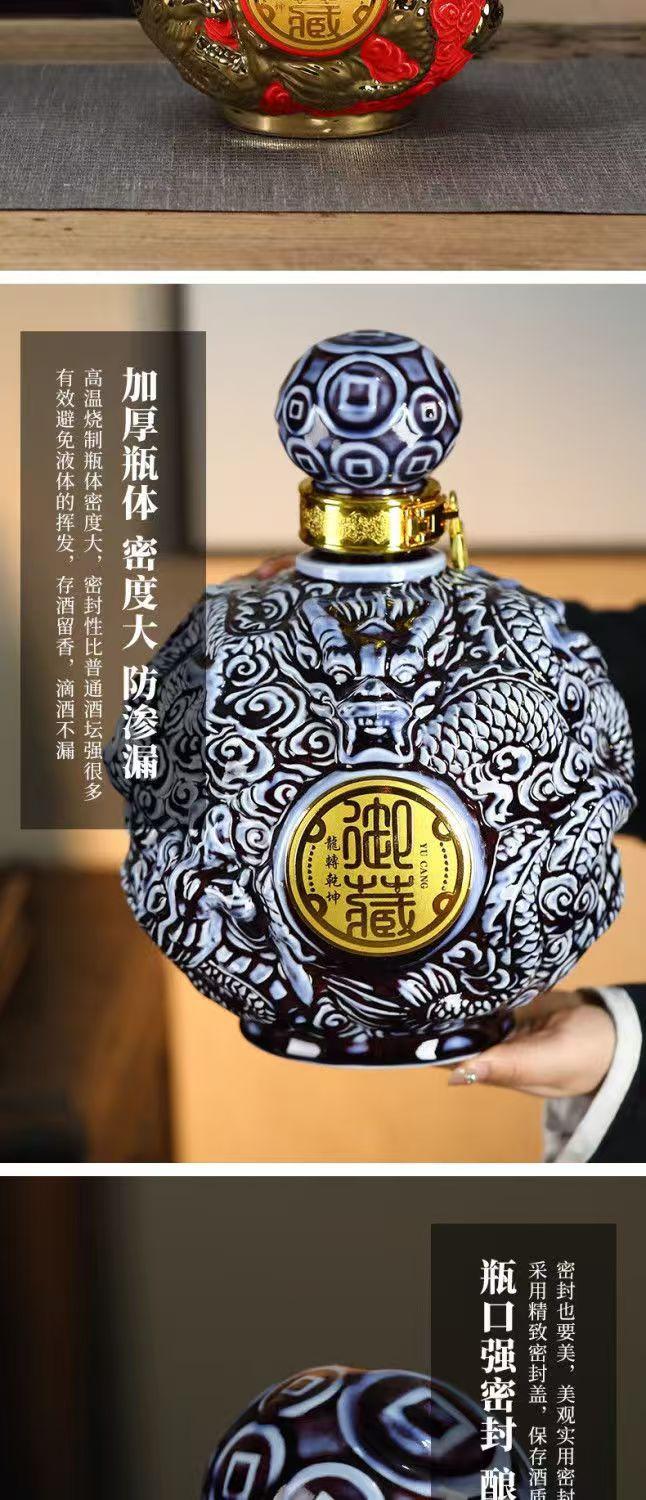 Dragón se convierte en Qiankun 2.5kg Botella de Vino Vacía de Cerámica Relieve Botella de Vino Tarro de Vino Tarro de Vino Hogar Sellado Atmosférico Caja de Regalo