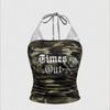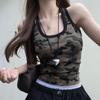 Camiseta sin mangas de camuflaje color block con cuello cuadrado y hombros anchos, ropa de brocado personalizada