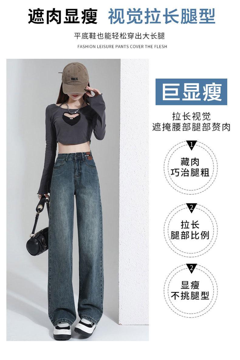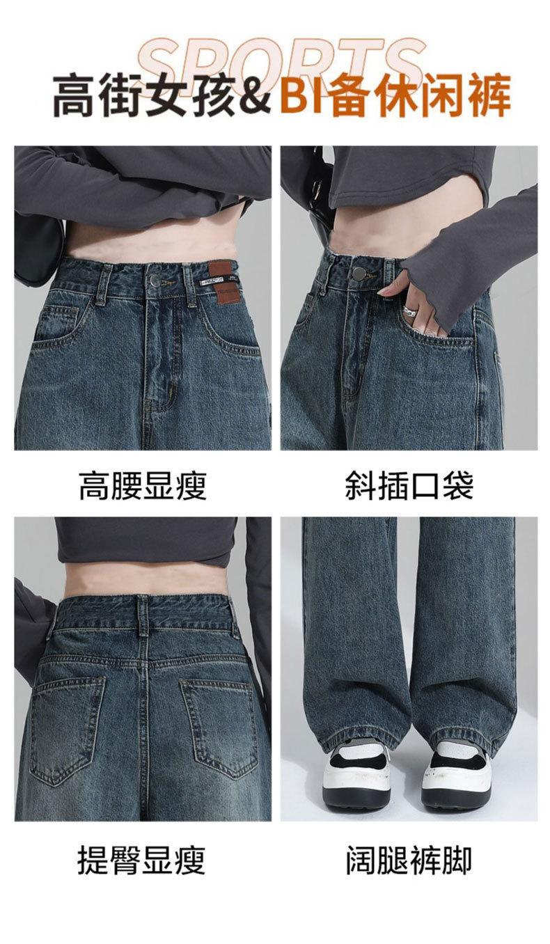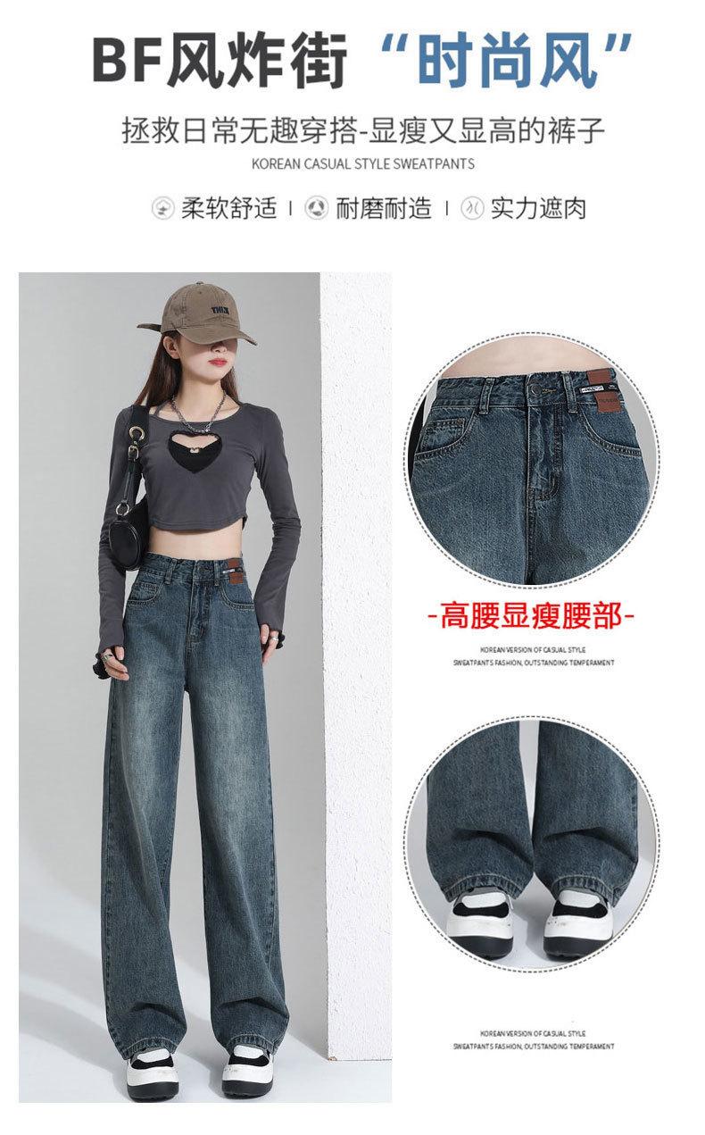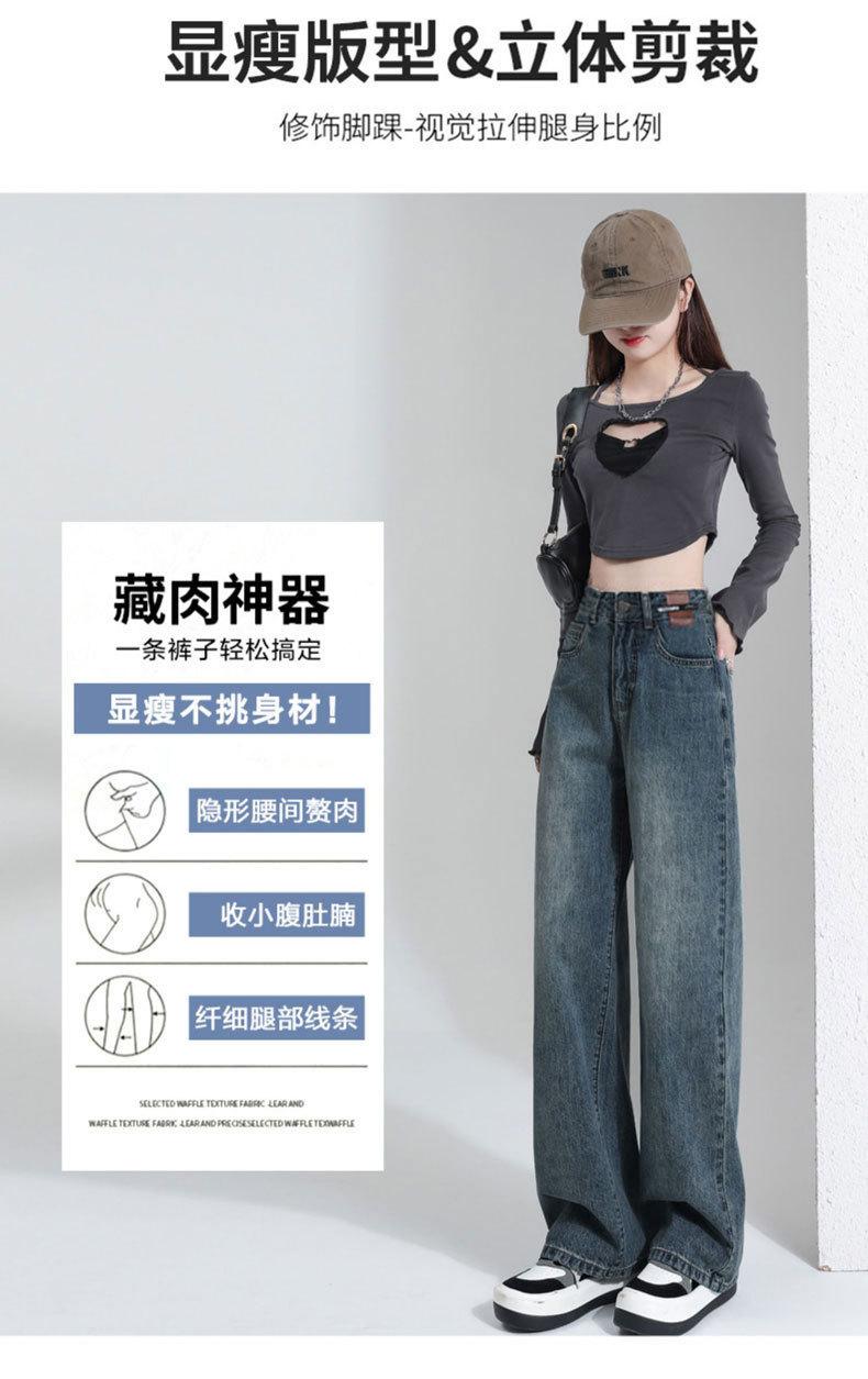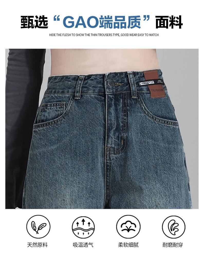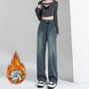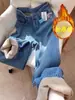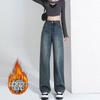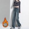 Jeans de Pierna Ancha con Forro Polar para Mujer Otoño 2024 Nuevo Cintura Alta Sueltos Ligeramente Estrechos Rectos