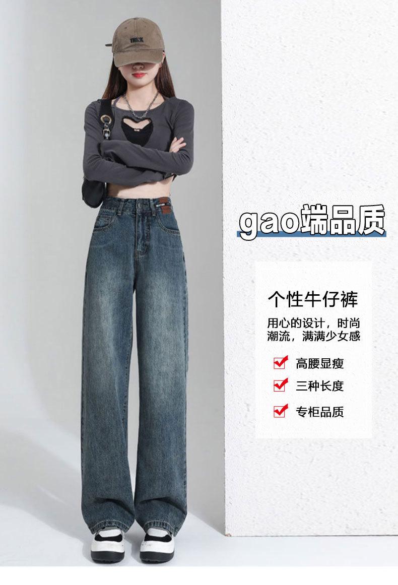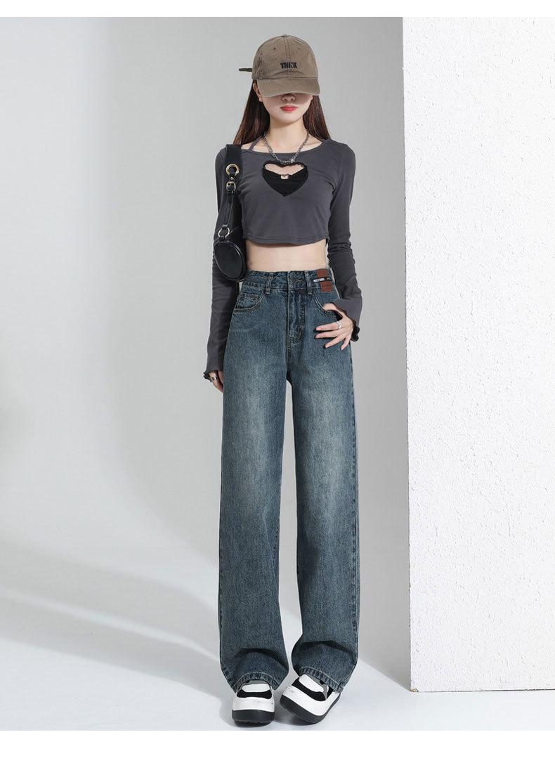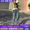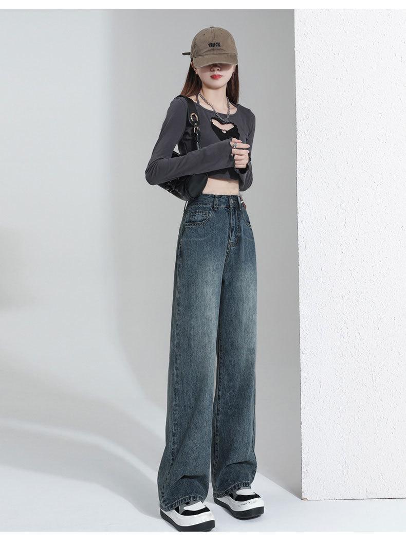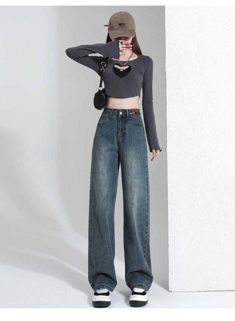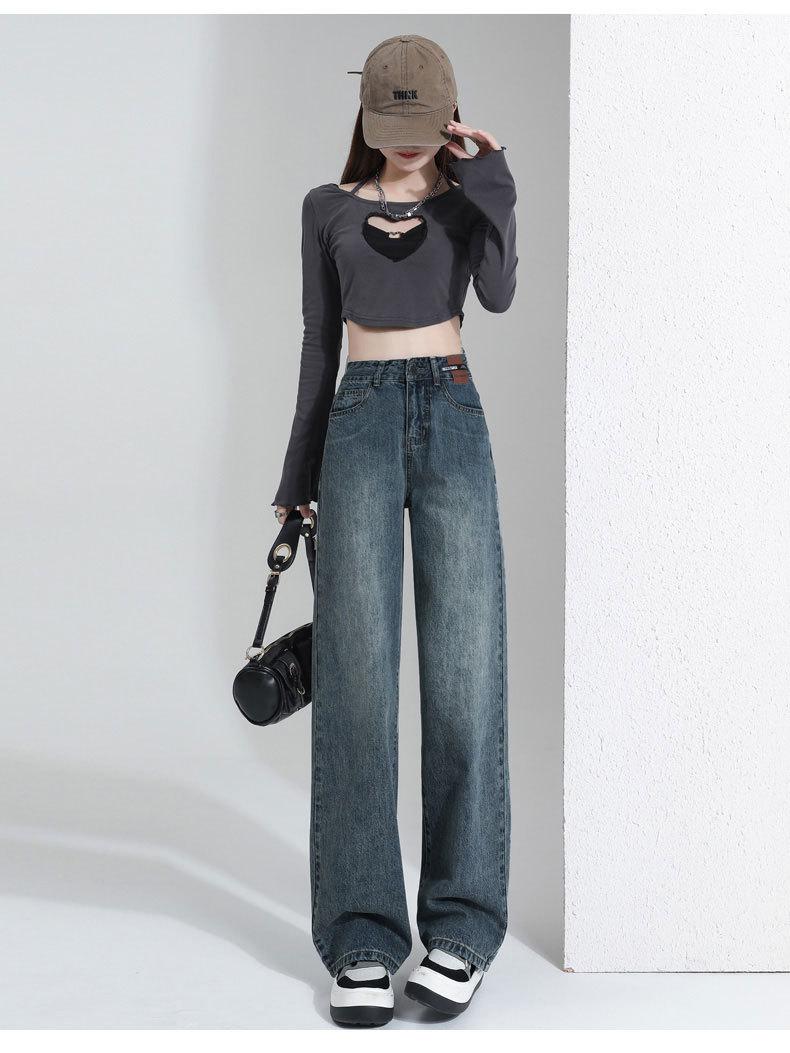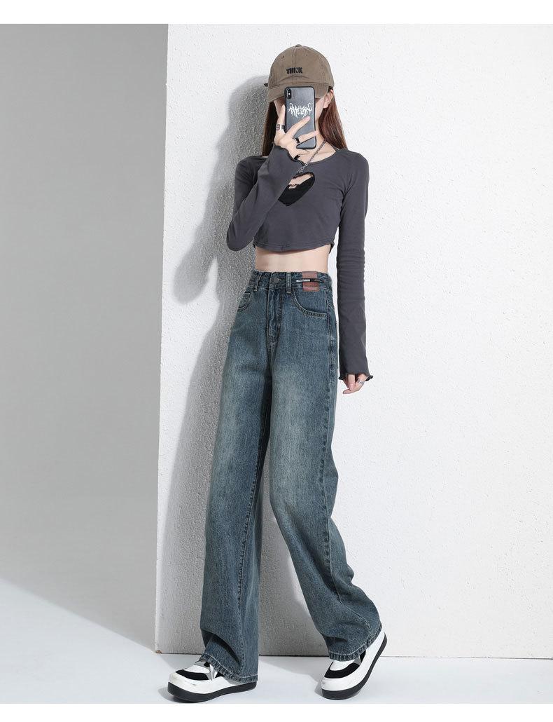 Jeans de Pierna Ancha con Forro Polar para Mujer Otoño 2024 Nuevo Cintura Alta Sueltos Ligeramente Estrechos Rectos
