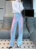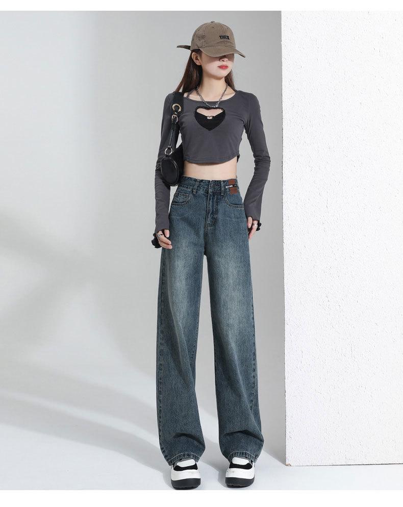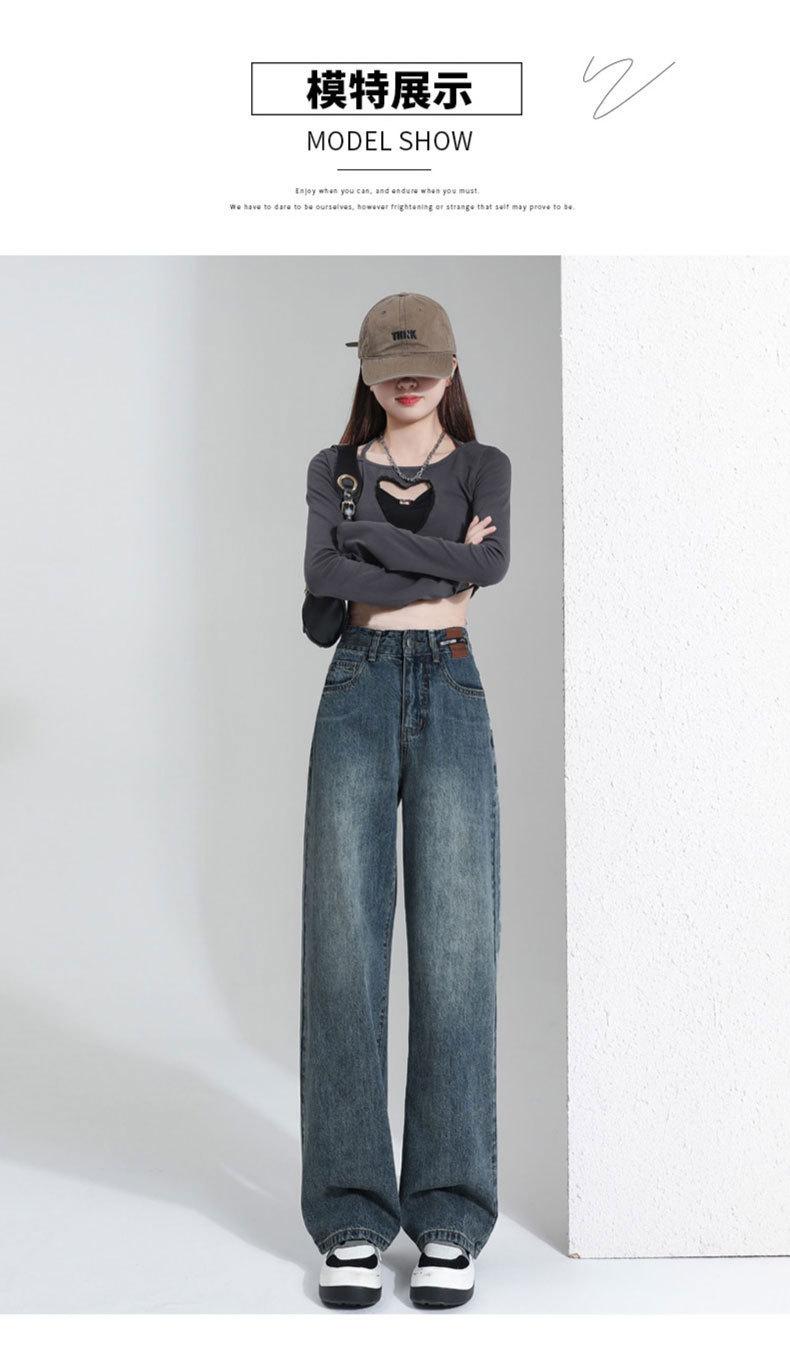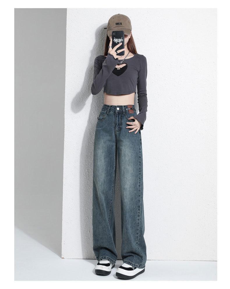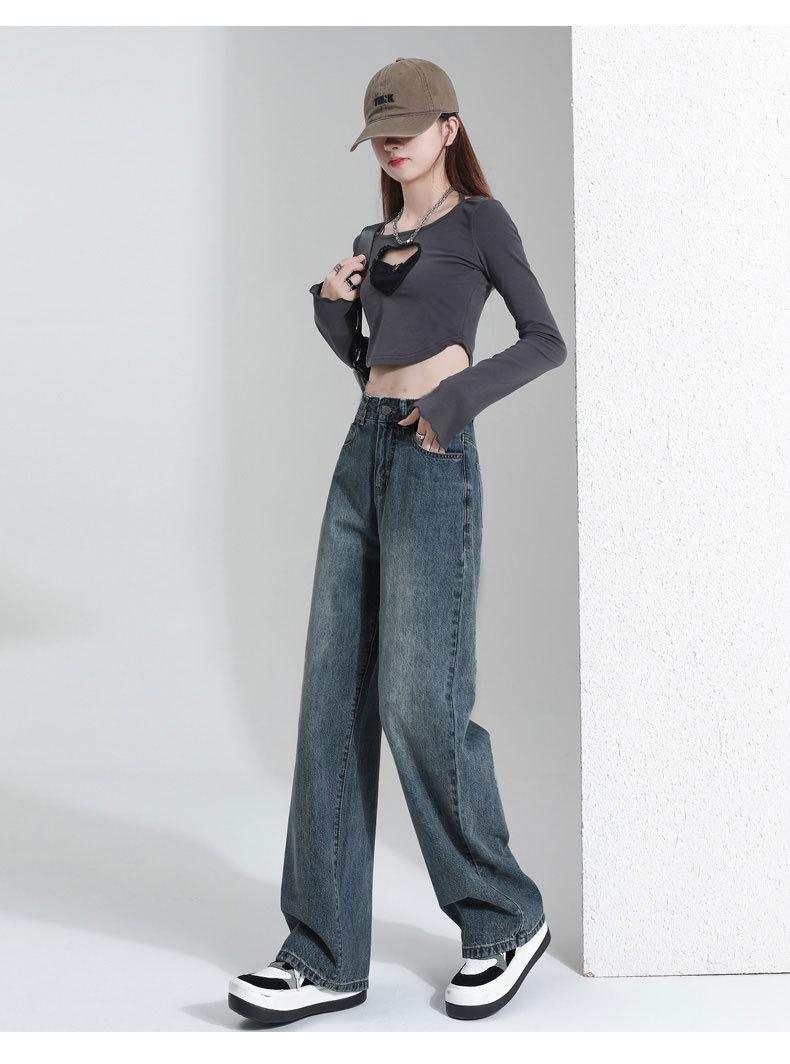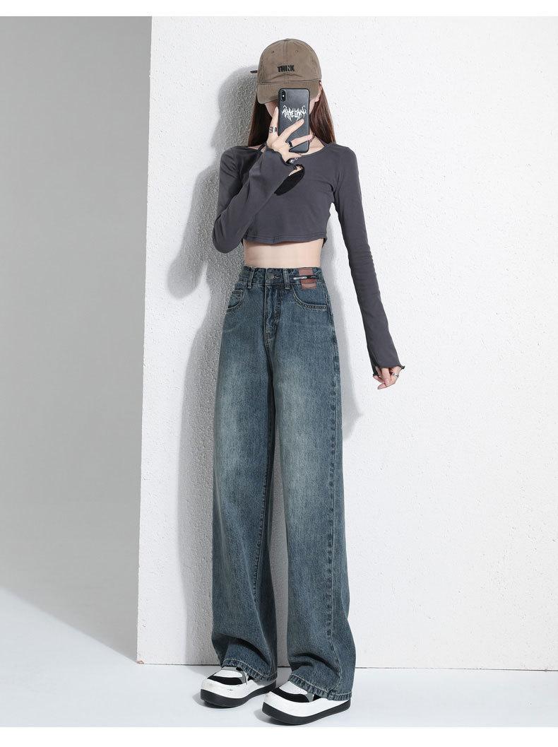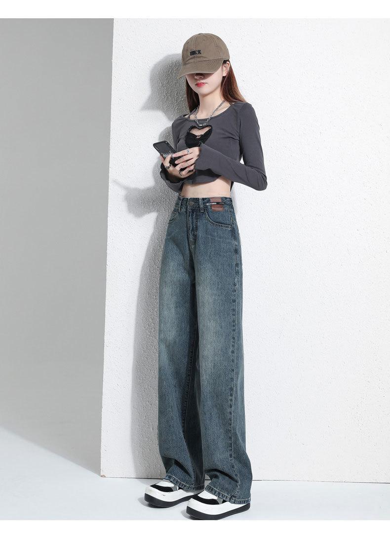 Jeans de Pierna Ancha con Forro Polar para Mujer Otoño 2024 Nuevo Cintura Alta Sueltos Ligeramente Estrechos Rectos