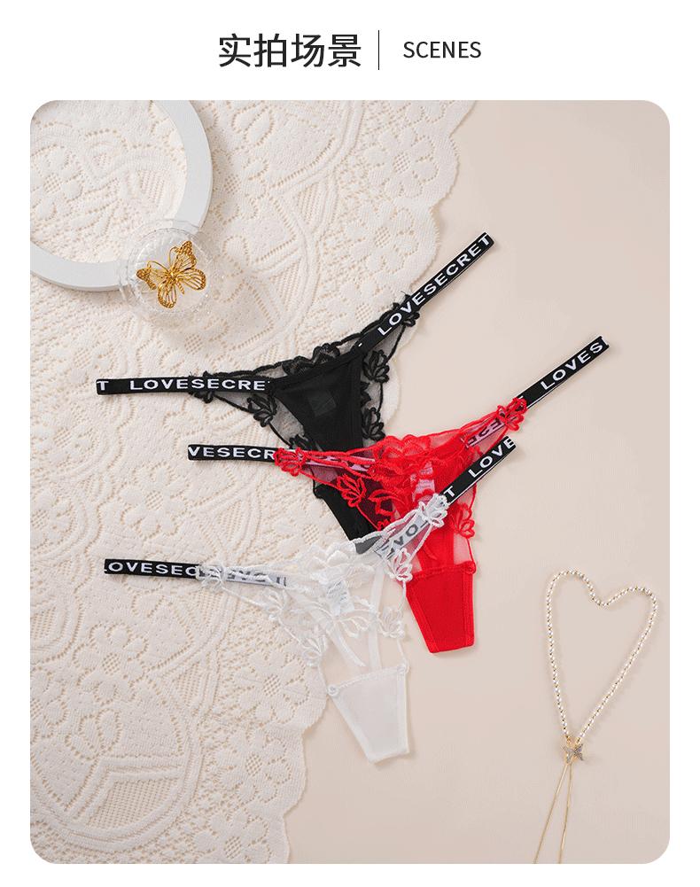 Tanga Sexy Europea y Americana Cruzada de Encaje con Aberturas de Cintura Baja para Mujer Ropa Interior Transpirable sin Costuras Puro Deseo Pantalones T para Mujer
