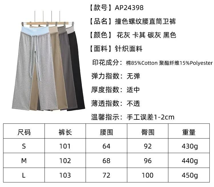 Otoño 2024 Nuevo Pantalón Recto de Pierna Ancha para Mujer de Cintura Alta Suelto Adelgazante Pantalón de Sudor Costuras Casual Lop