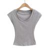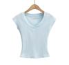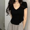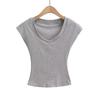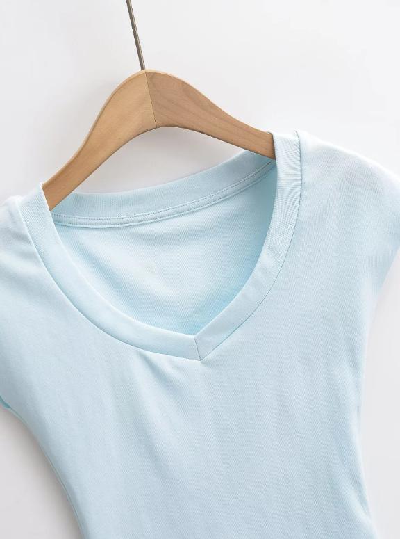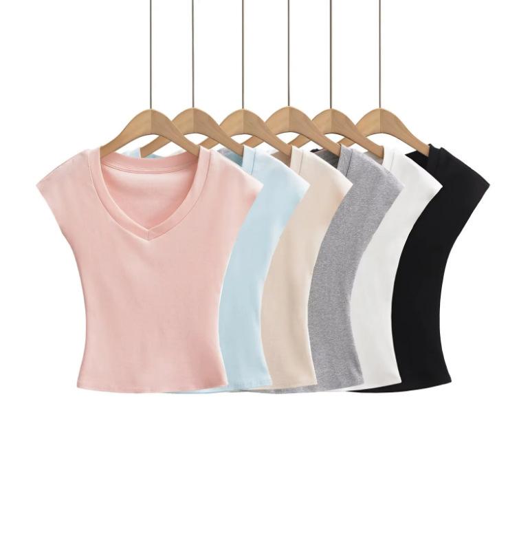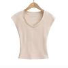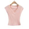 Lujuria Pura Sexy Sexy Top de Fondo de Cuello en V Grande para Mujer 2025 Verano Slim Casual Interior Camiseta de Manga Corta