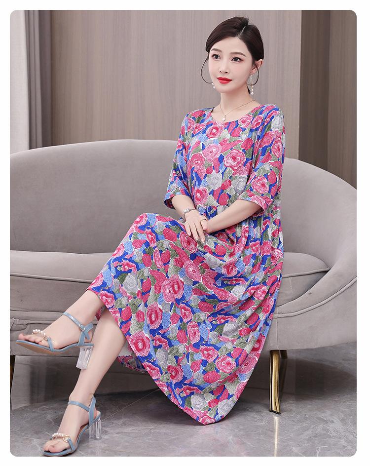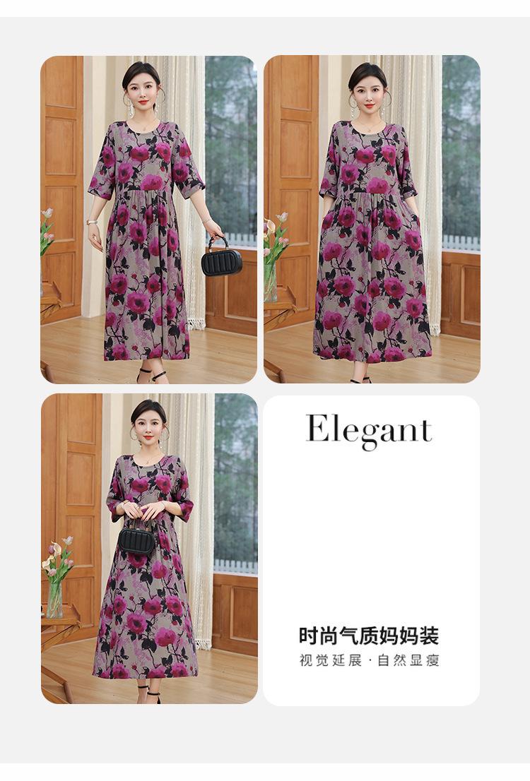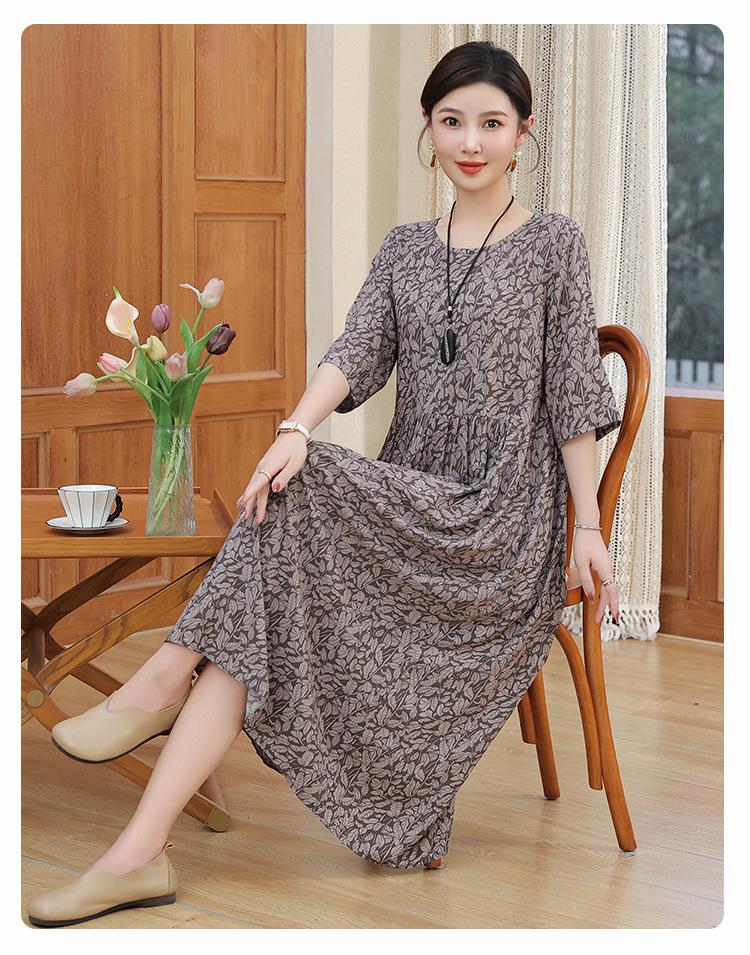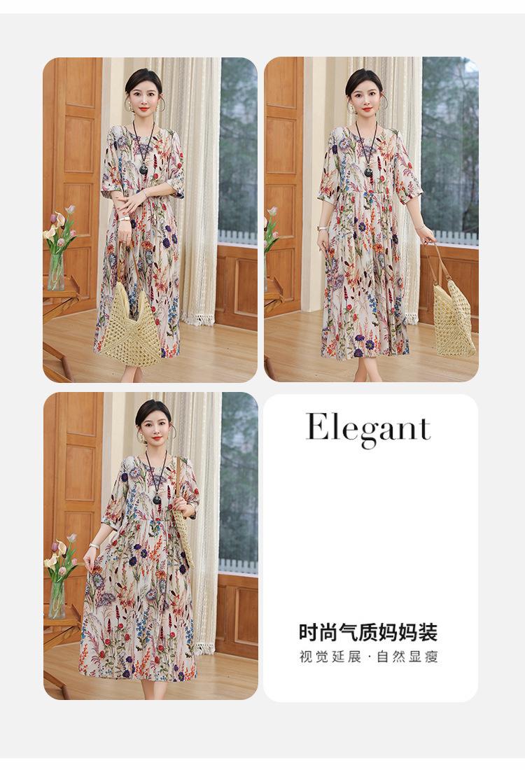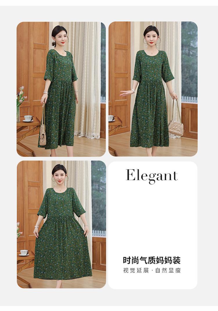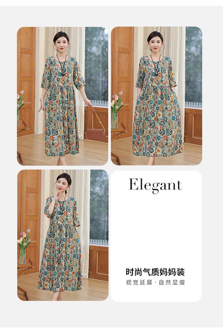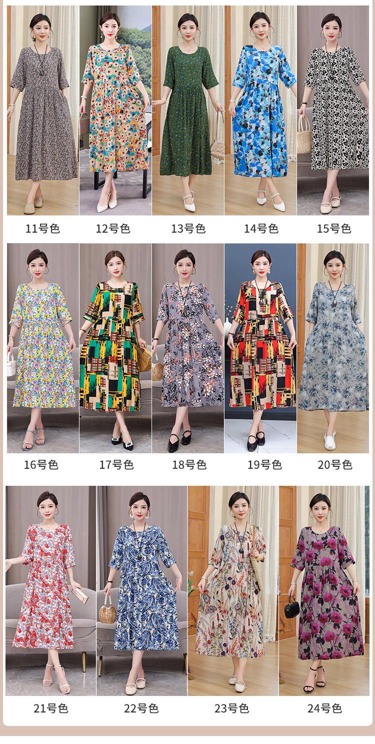 2025 Nuevo Vestido Holgado de Algodón Seda de Manga Media para Mediana Edad y Ancianas Verano Estilo de Madre Talla Grande Falda Larga