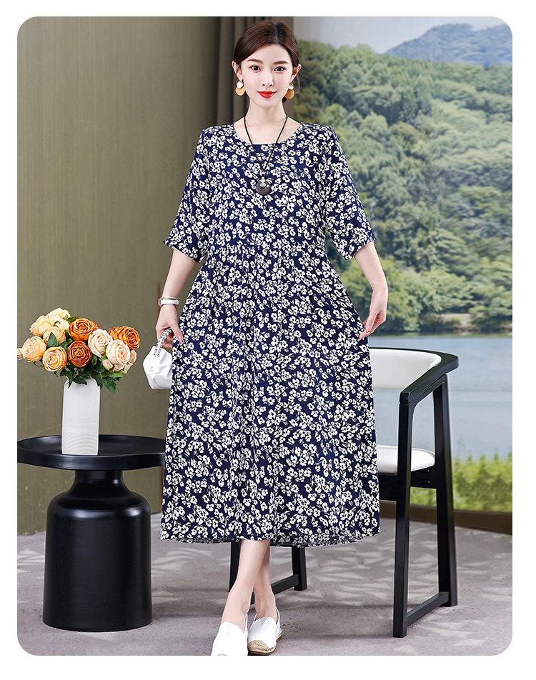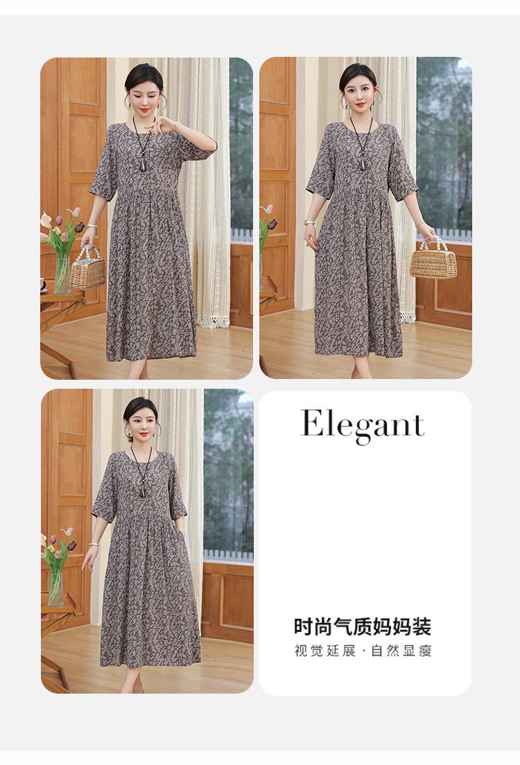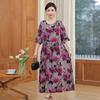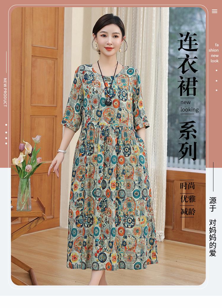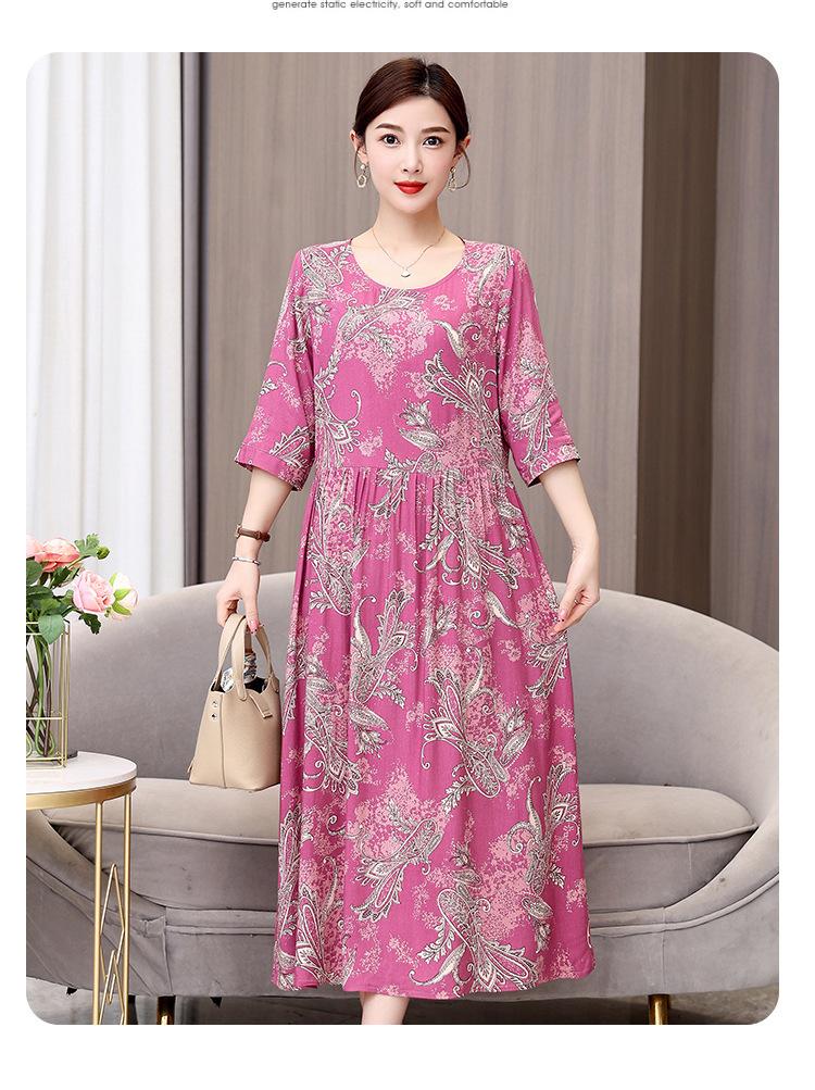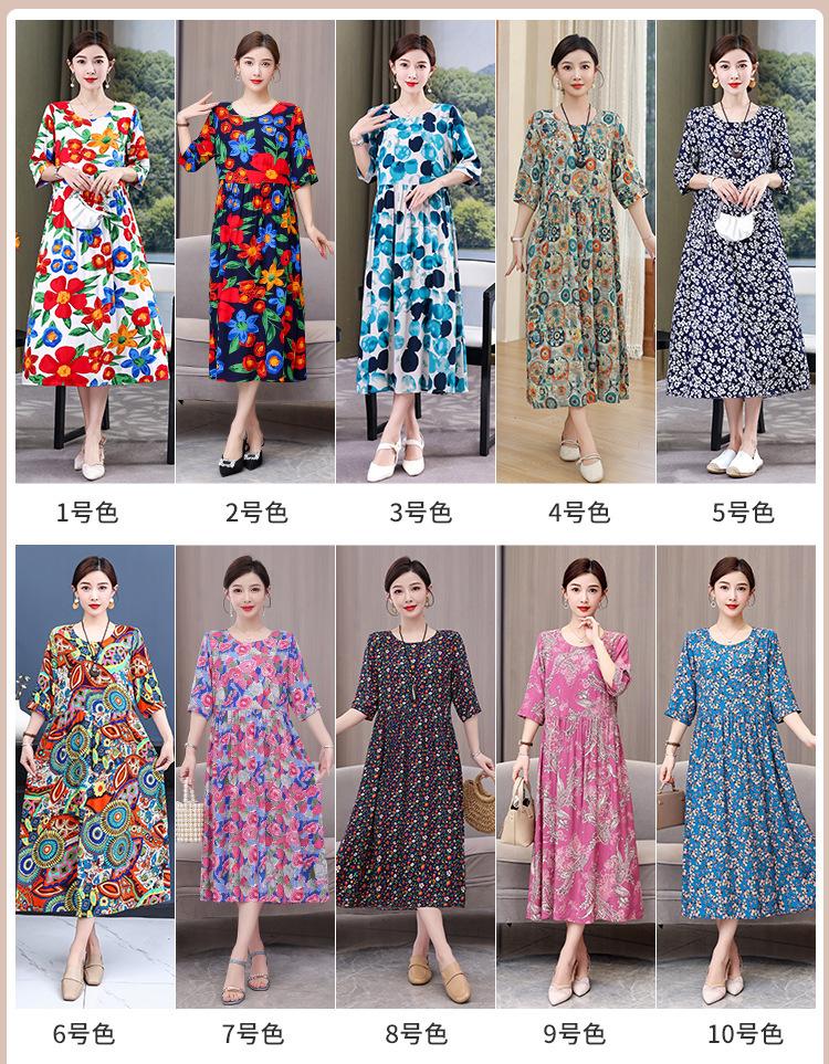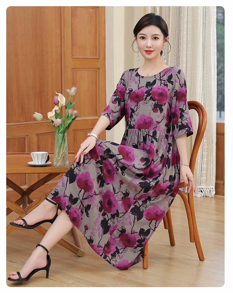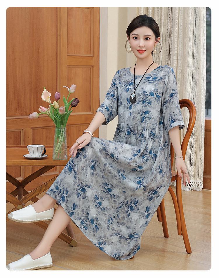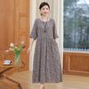 2025 Nuevo Vestido Holgado de Algodón Seda de Manga Media para Mediana Edad y Ancianas Verano Estilo de Madre Talla Grande Falda Larga