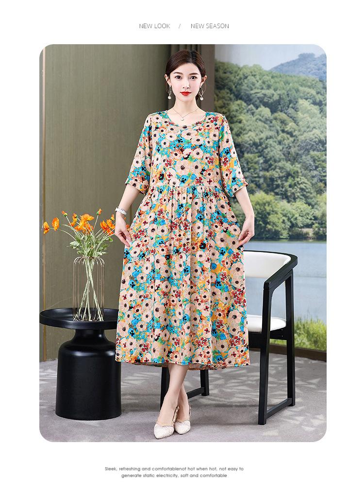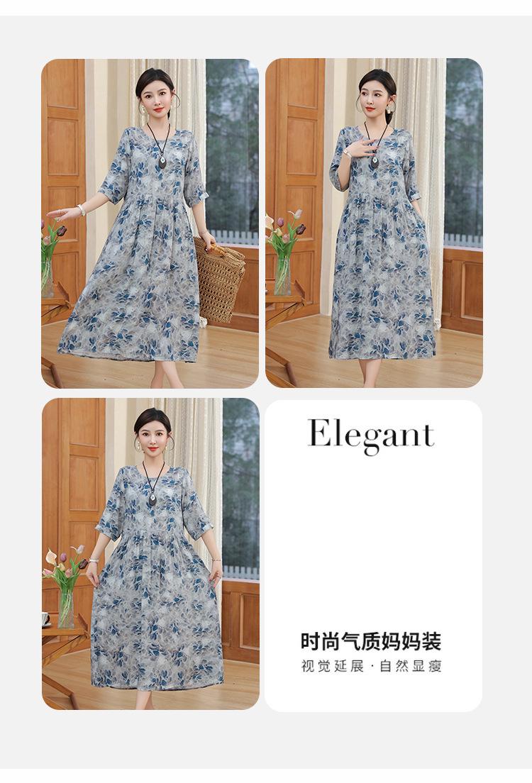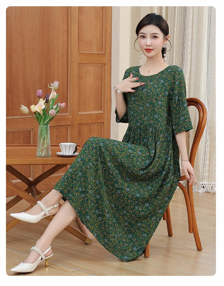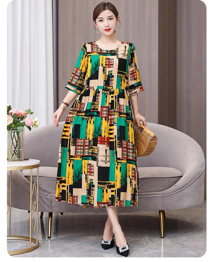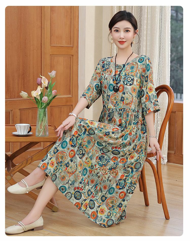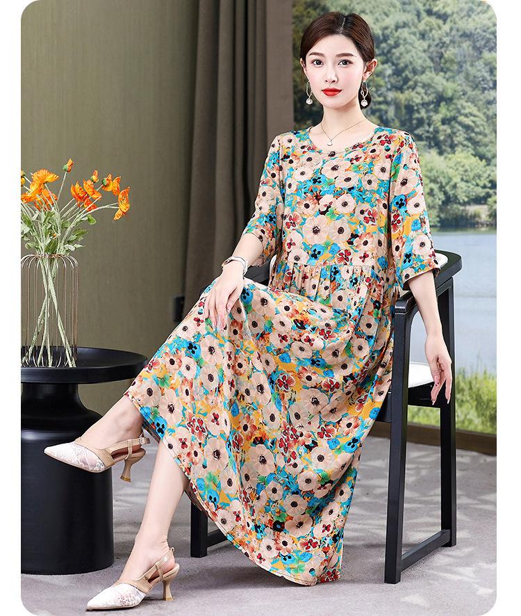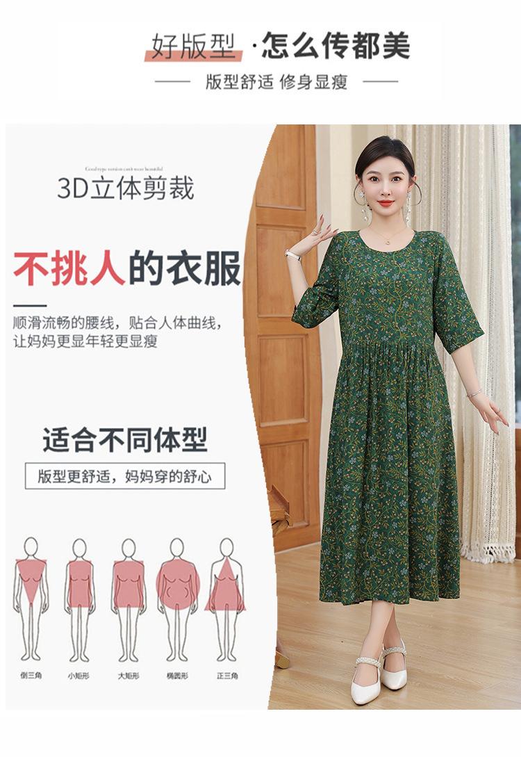 2025 Nuevo Vestido Holgado de Algodón Seda de Manga Media para Mediana Edad y Ancianas Verano Estilo de Madre Talla Grande Falda Larga