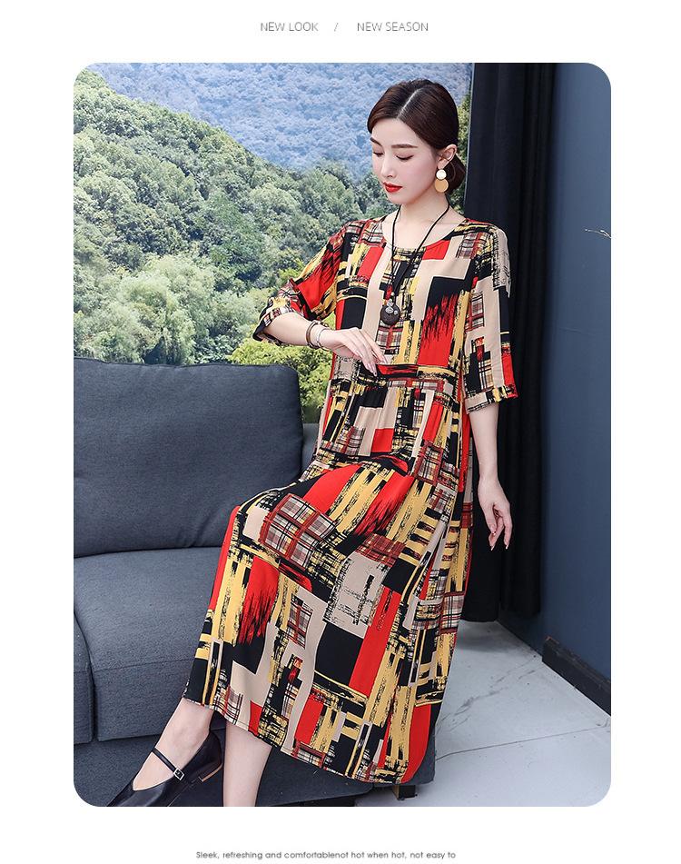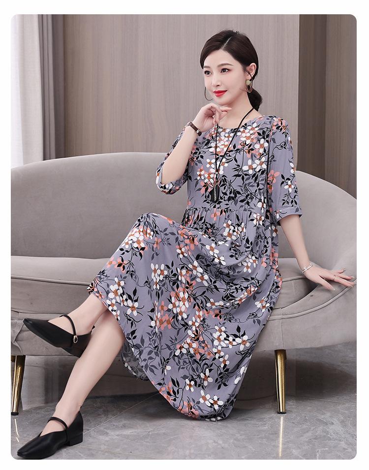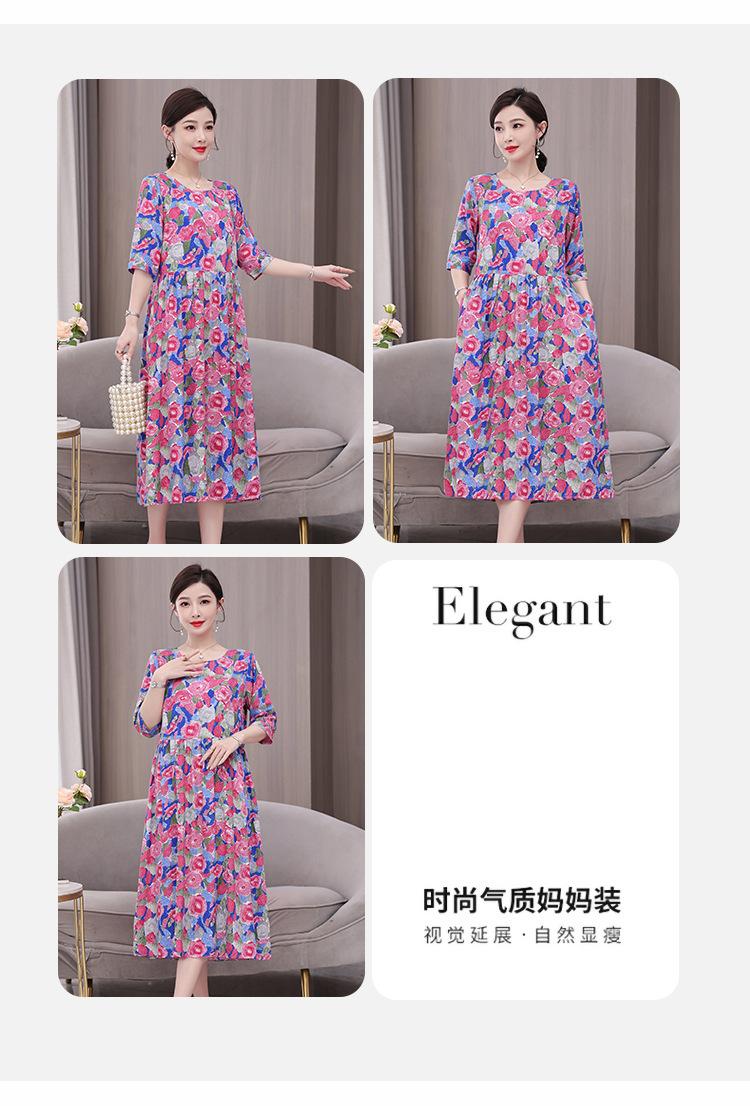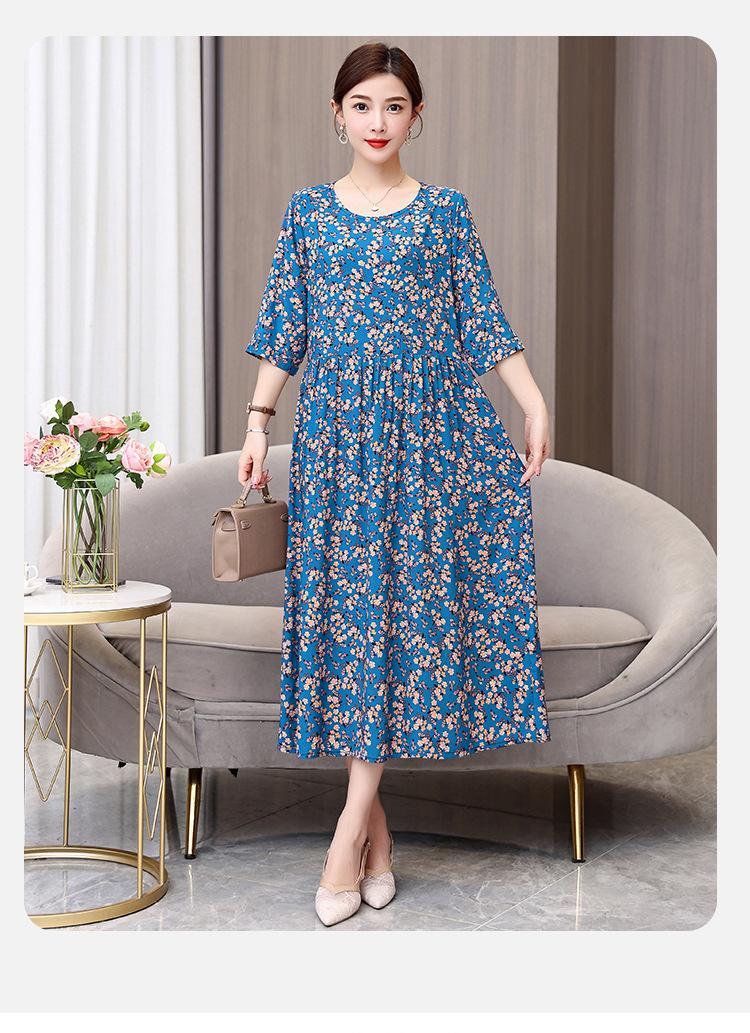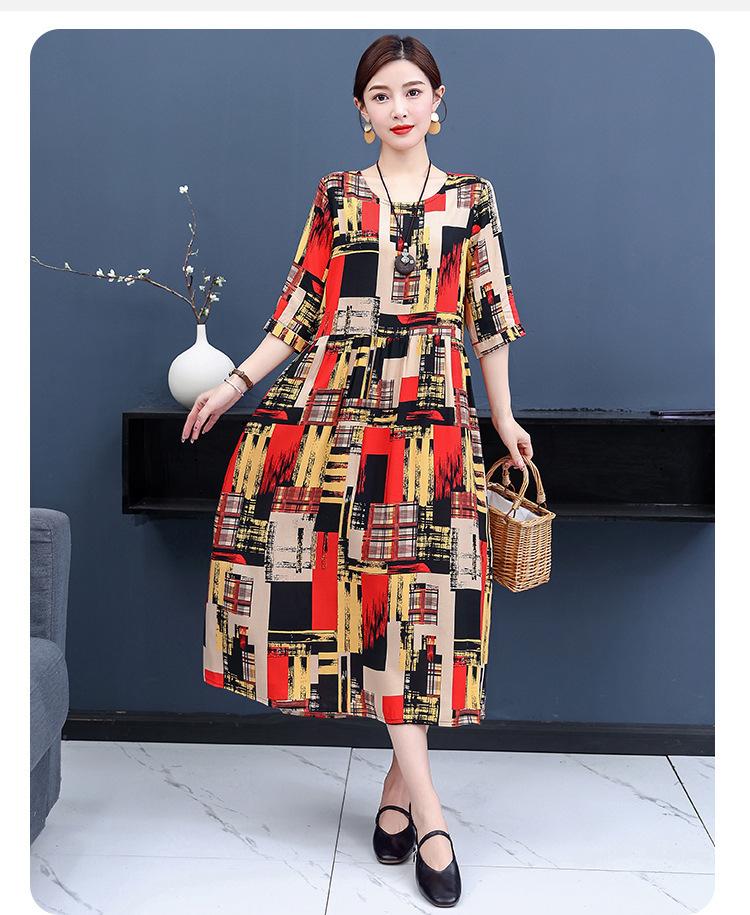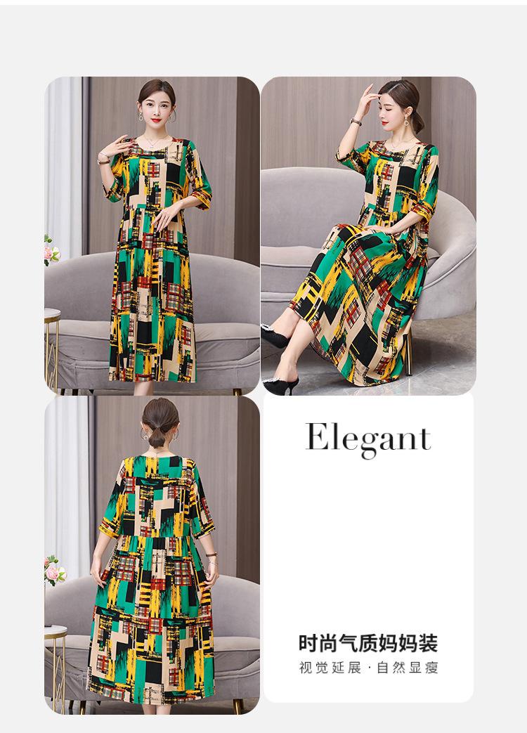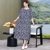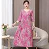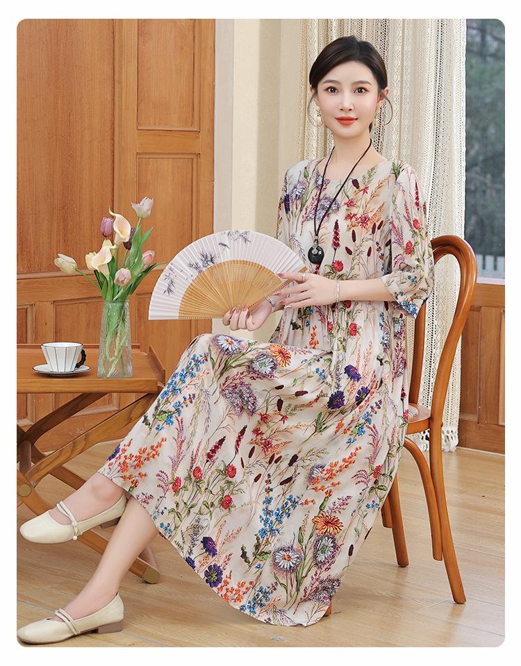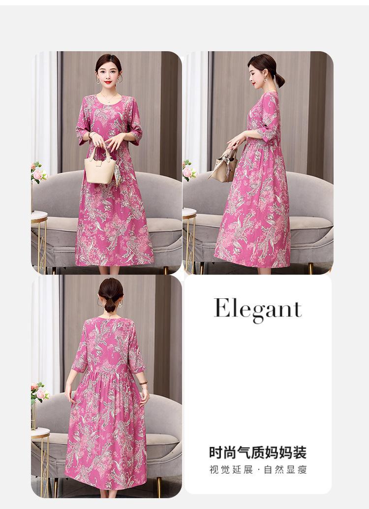 2025 Nuevo Vestido Holgado de Algodón Seda de Manga Media para Mediana Edad y Ancianas Verano Estilo de Madre Talla Grande Falda Larga