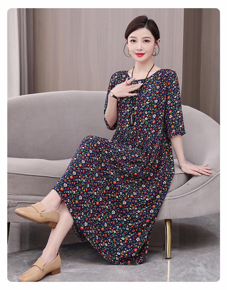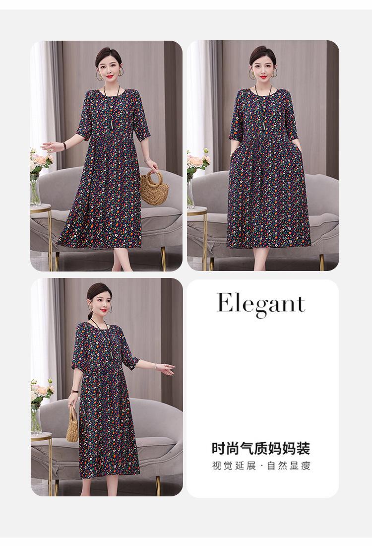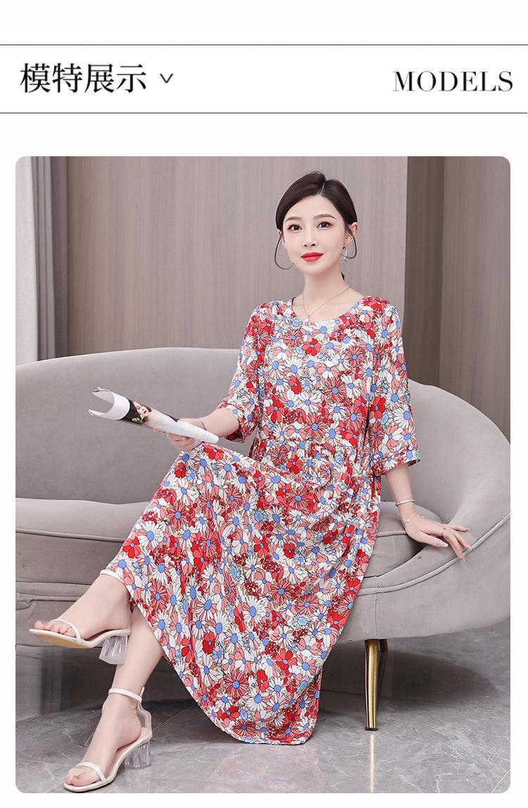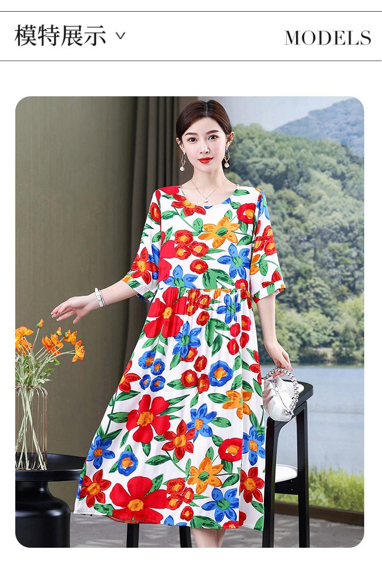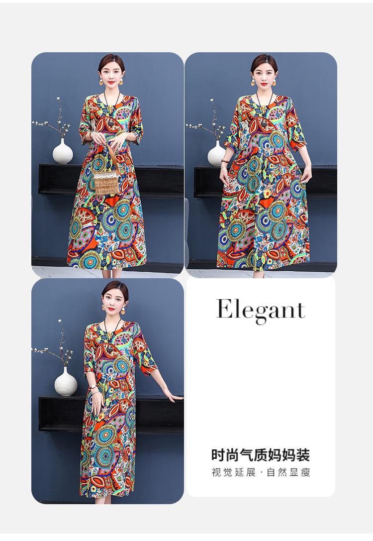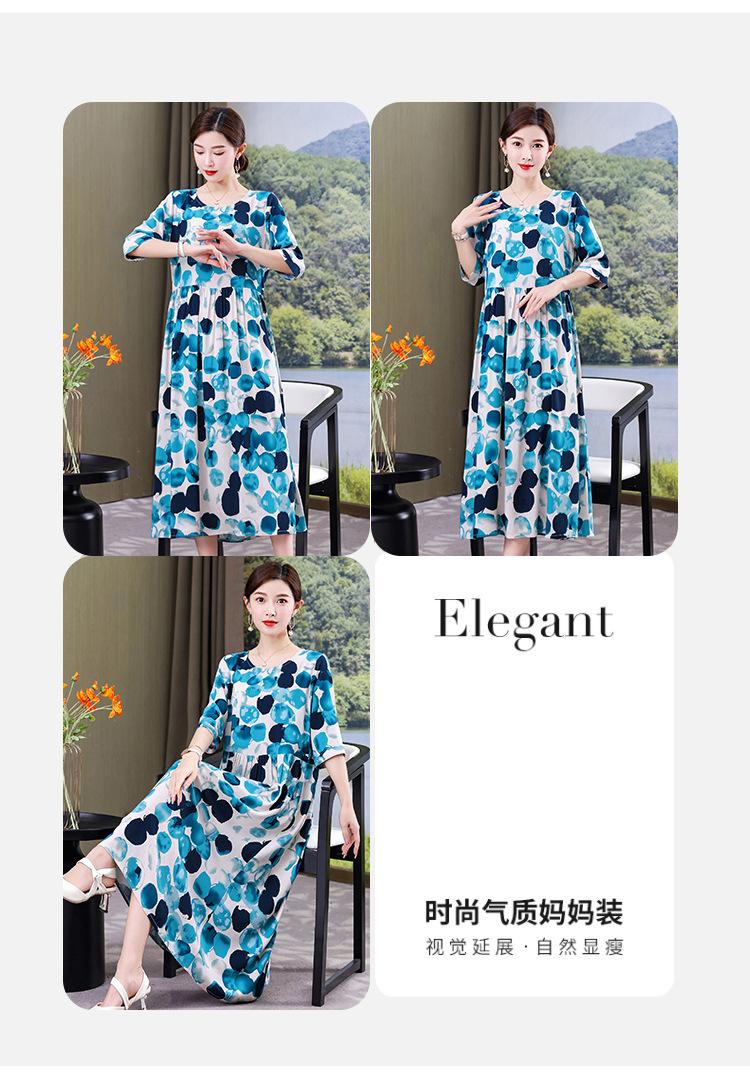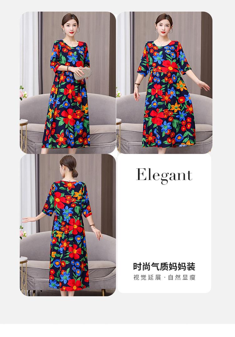 2025 Nuevo Vestido Holgado de Algodón Seda de Manga Media para Mediana Edad y Ancianas Verano Estilo de Madre Talla Grande Falda Larga