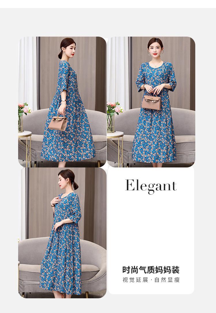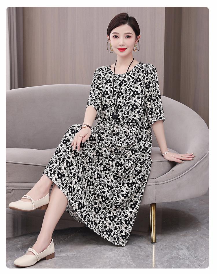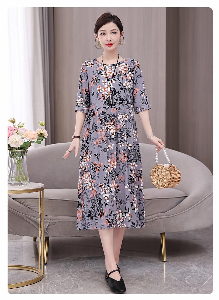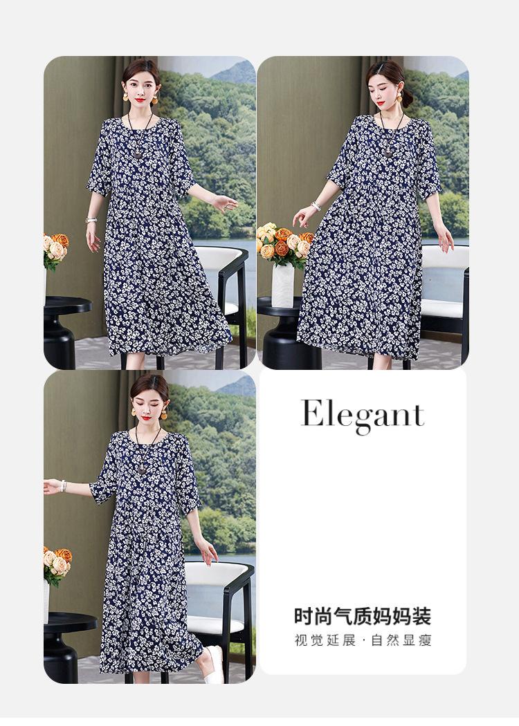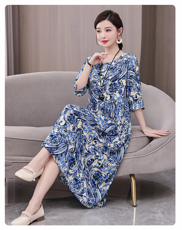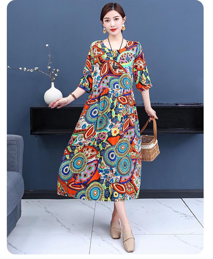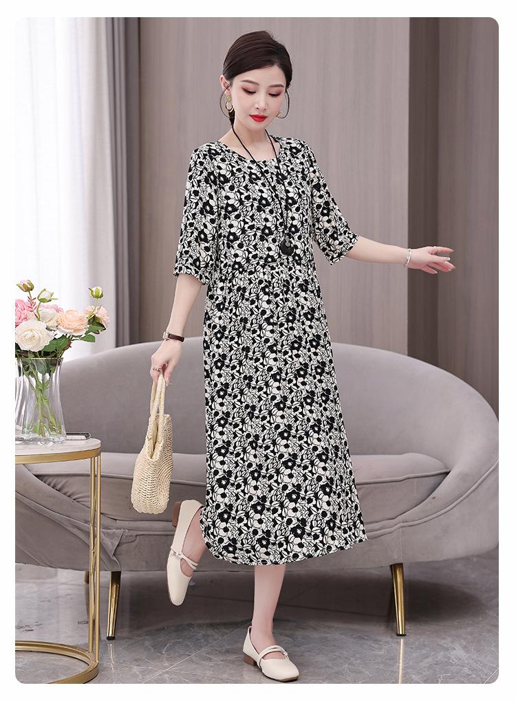 2025 Nuevo Vestido Holgado de Algodón Seda de Manga Media para Mediana Edad y Ancianas Verano Estilo de Madre Talla Grande Falda Larga