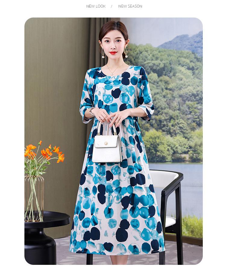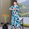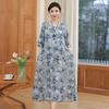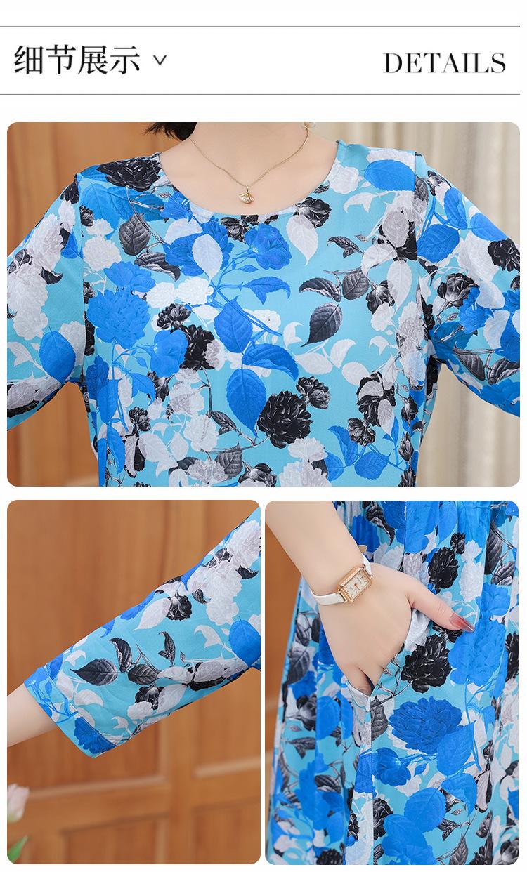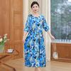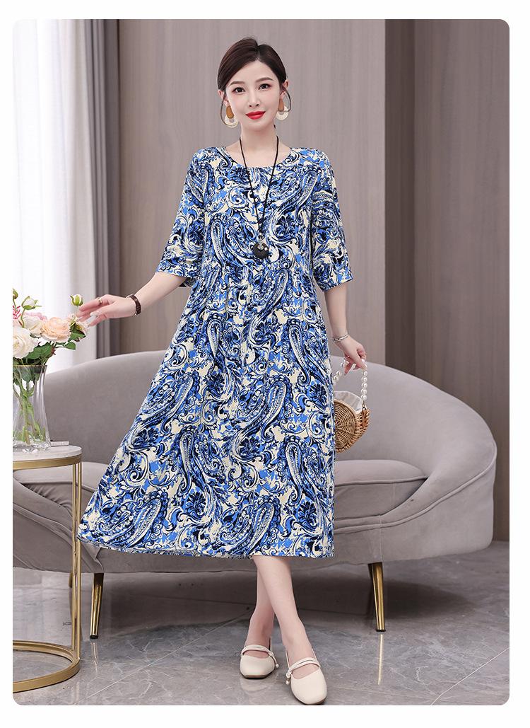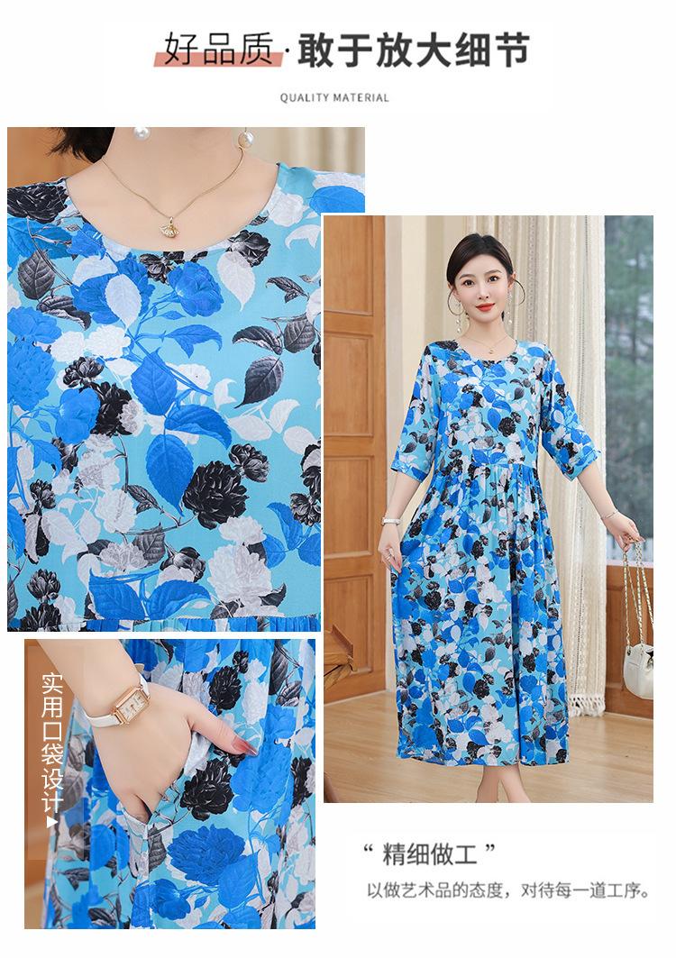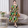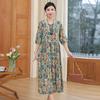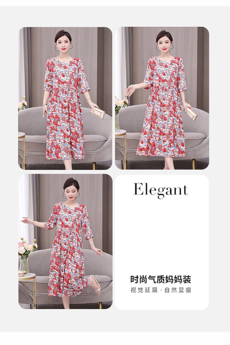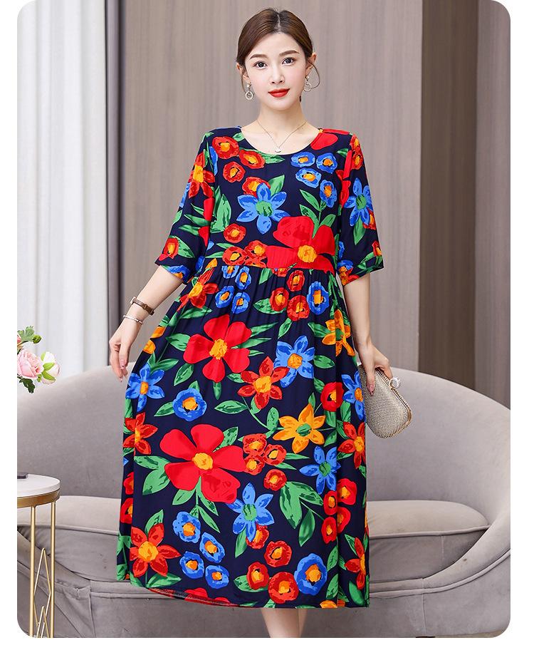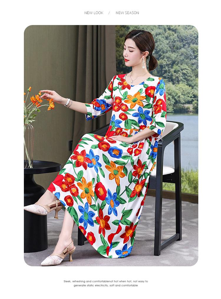 2025 Nuevo Vestido Holgado de Algodón Seda de Manga Media para Mediana Edad y Ancianas Verano Estilo de Madre Talla Grande Falda Larga