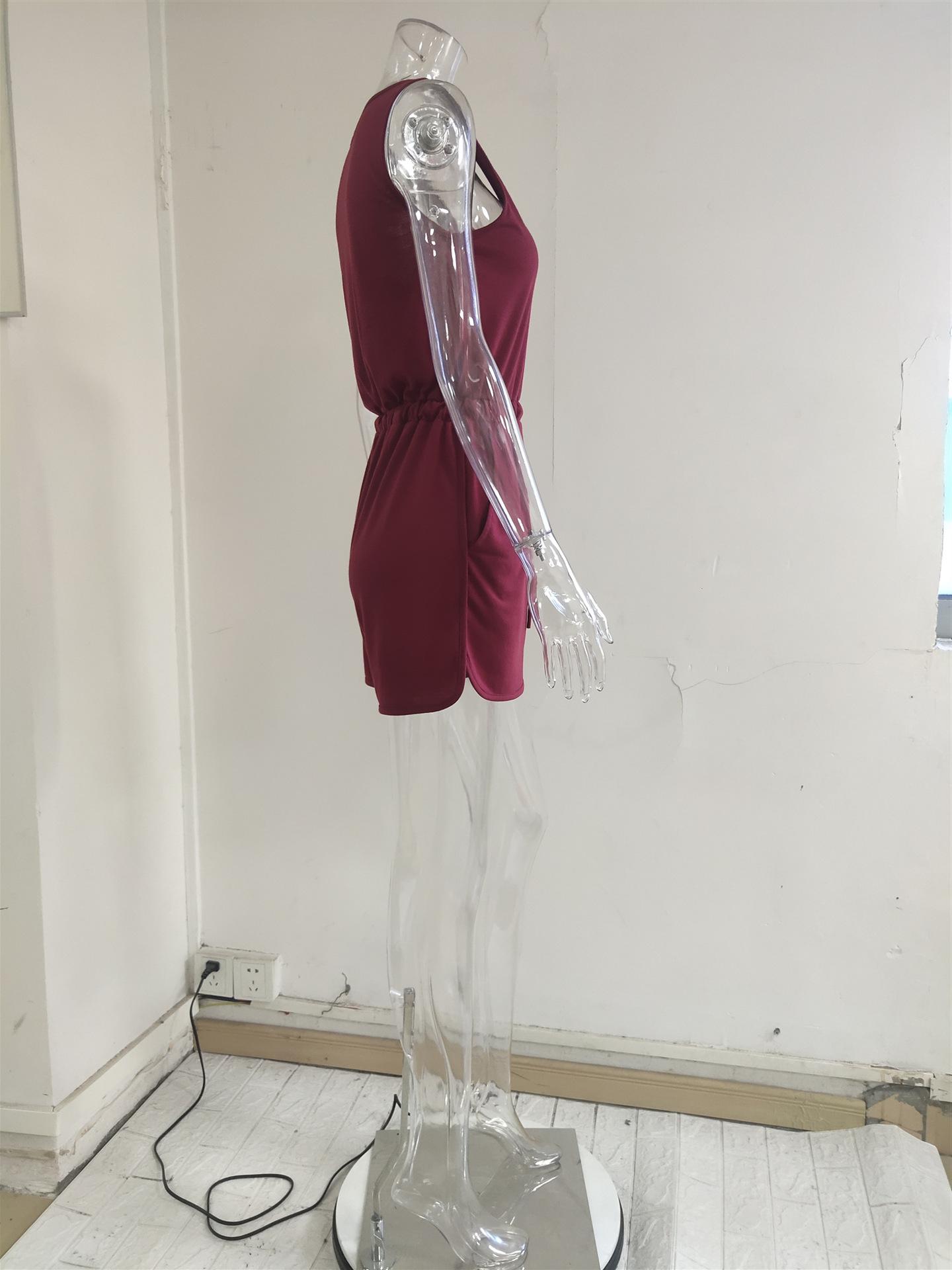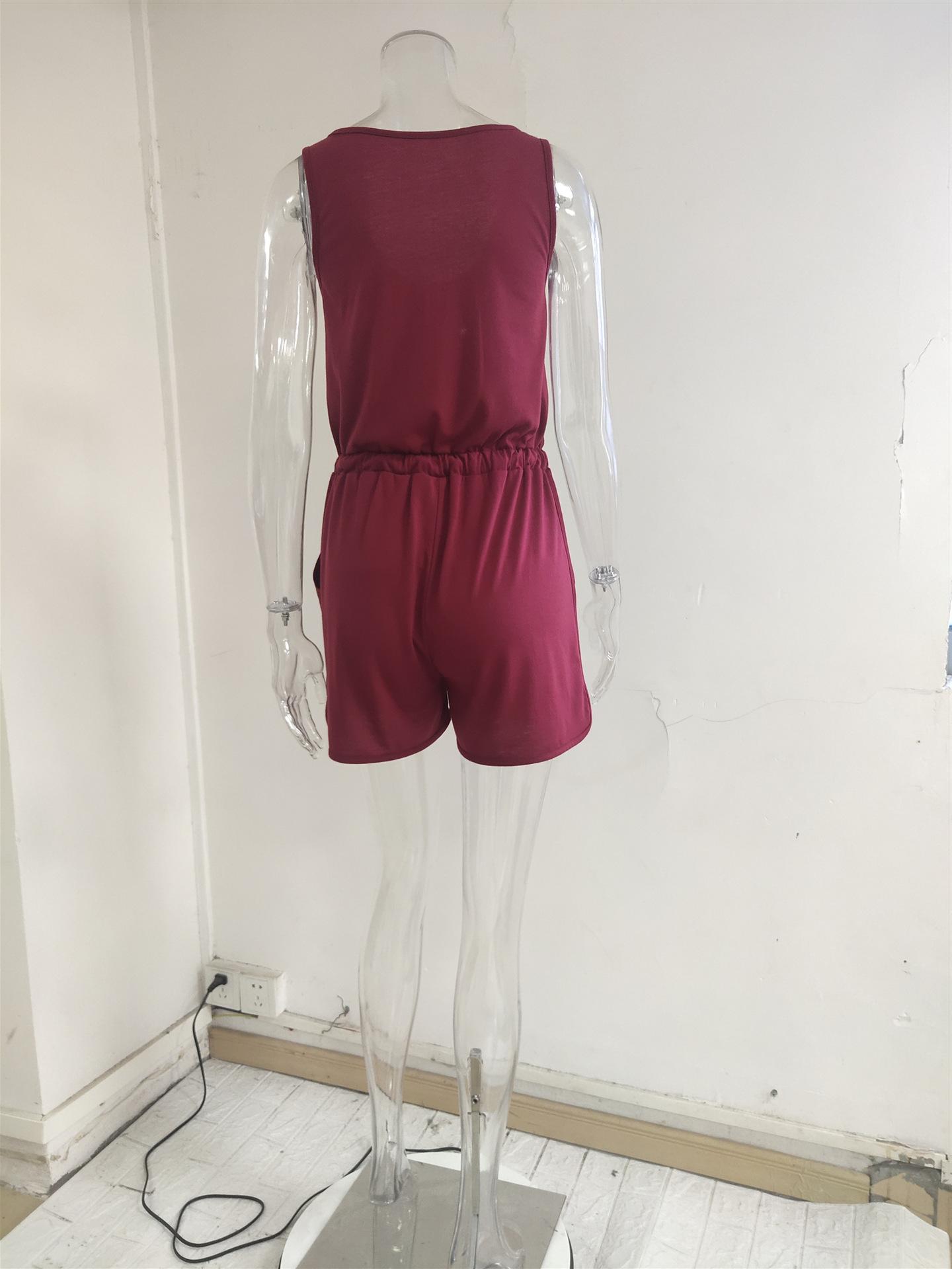 Ropa Nueva Europea y Americana 2024 Verano Mono sin Mangas Cruzado Cinturón Casual Suelto Pierna Ancha Shorts