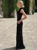 Ropa de mujer europea y americana 2025 verano nuevo deseo puro chica hot cuello halter profundo V escote bajo vestido sin mangas color sólido de alta gama