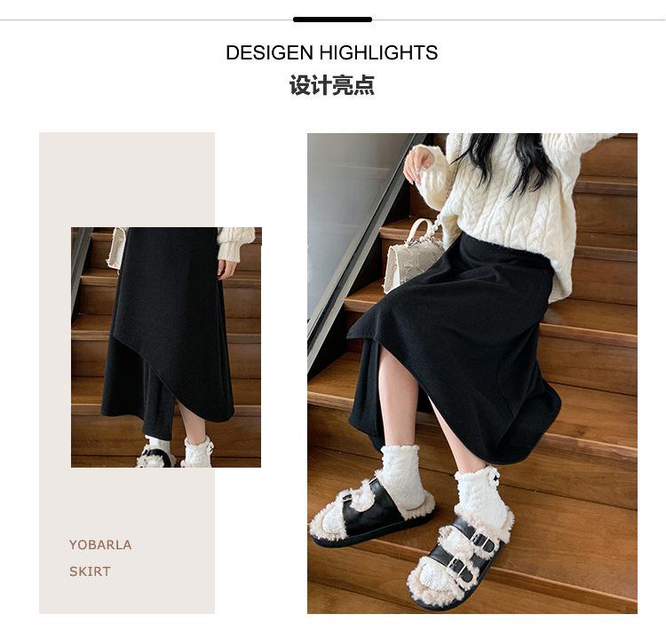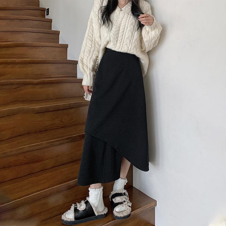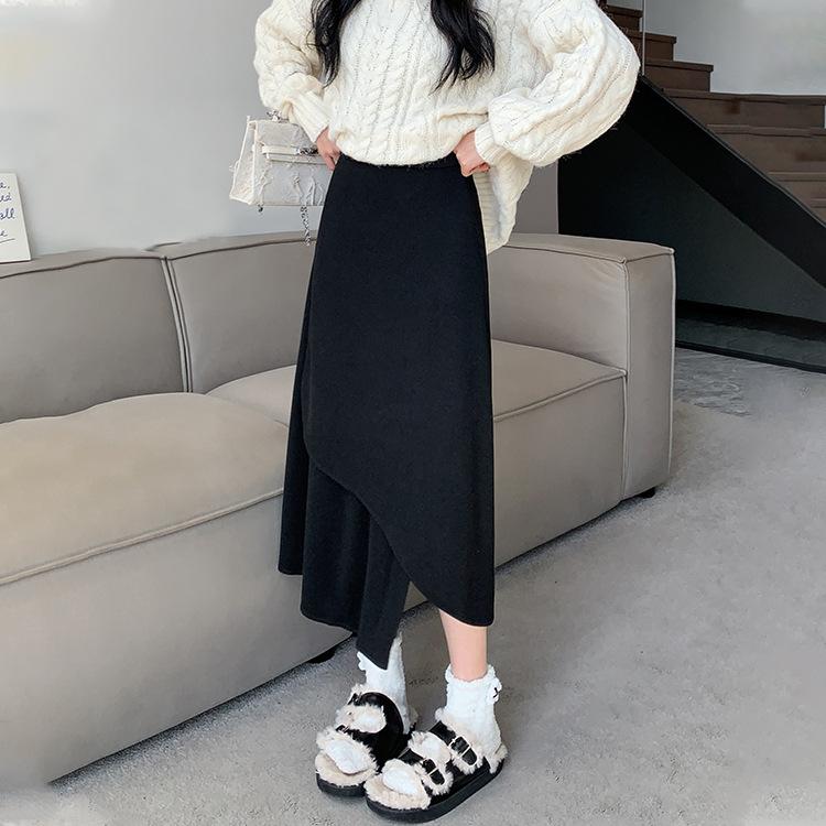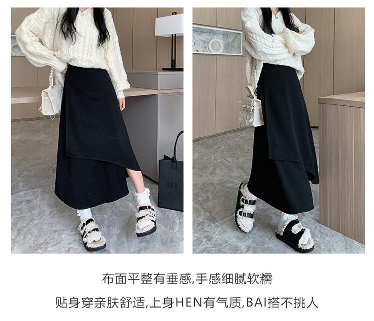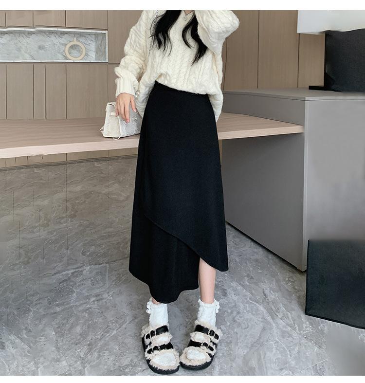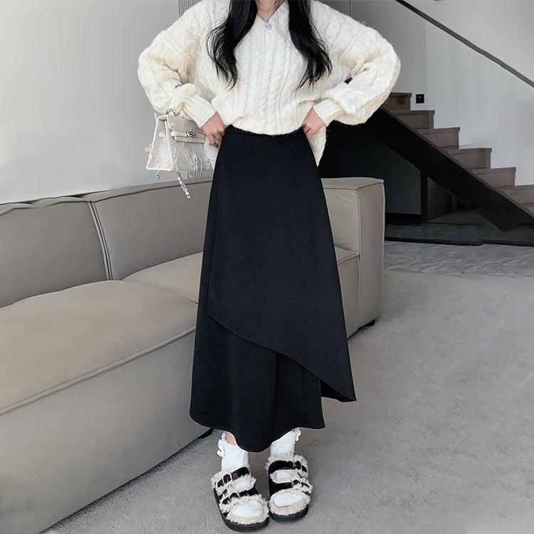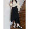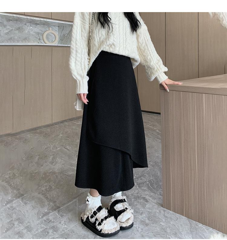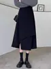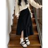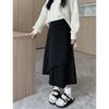 Falda Negra de Mujer 2024 Nueva Otoño e Invierno Línea A Cintura Alta Adelgazante Falda Paraguas Vestido Irregular de Largo Medio