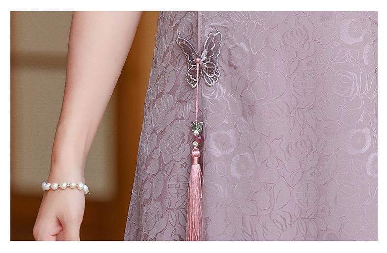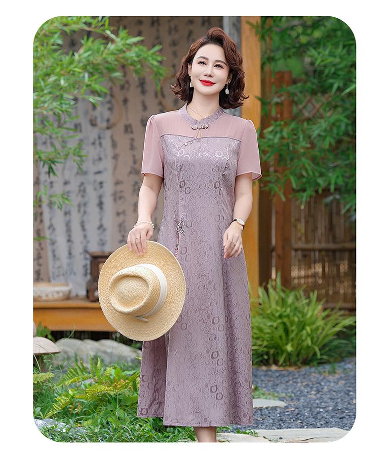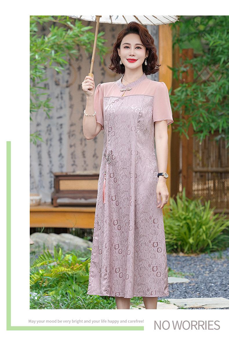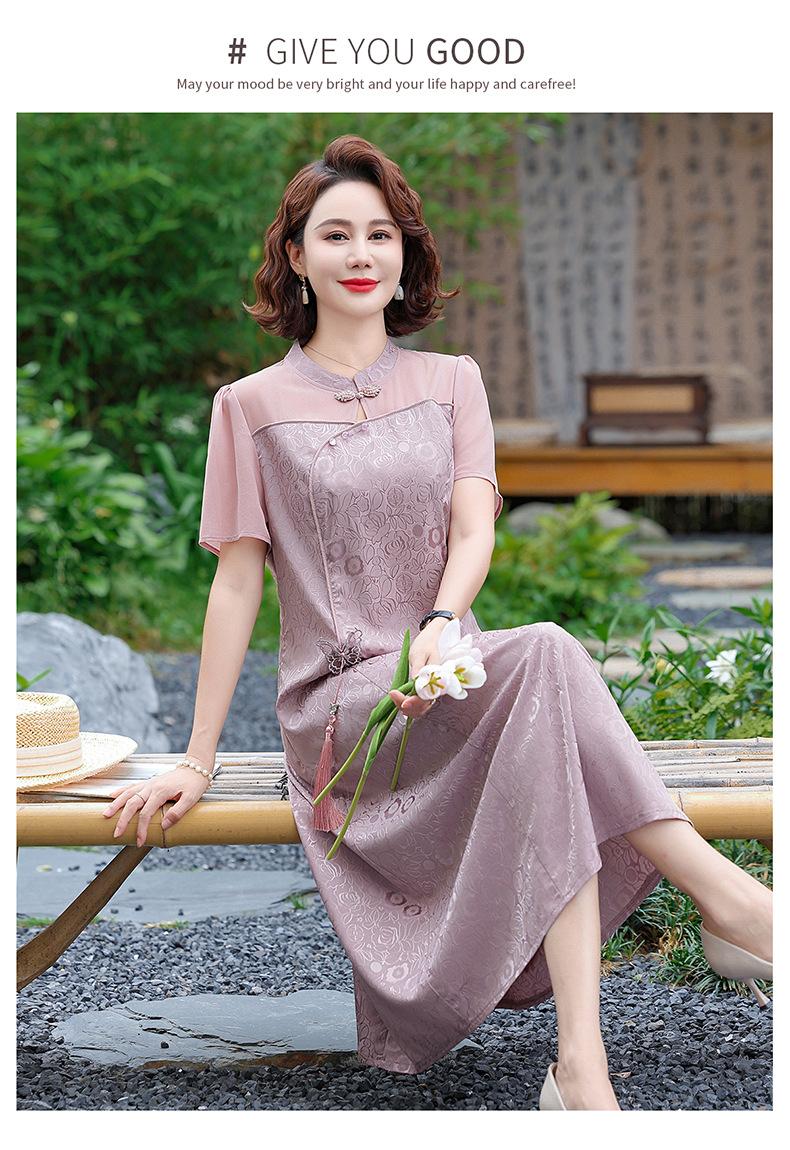 Vestido de Verano para Mamá Cheongsam Mejorado Vestido de Mujer Moda 2025 Nuevo Dama Verano Estilo Chino Falda de Gasa