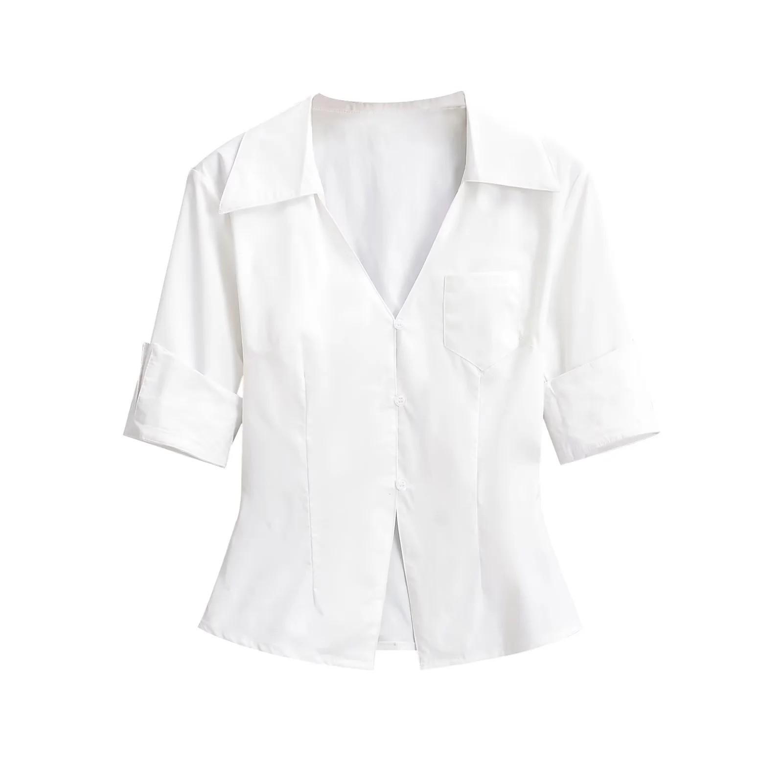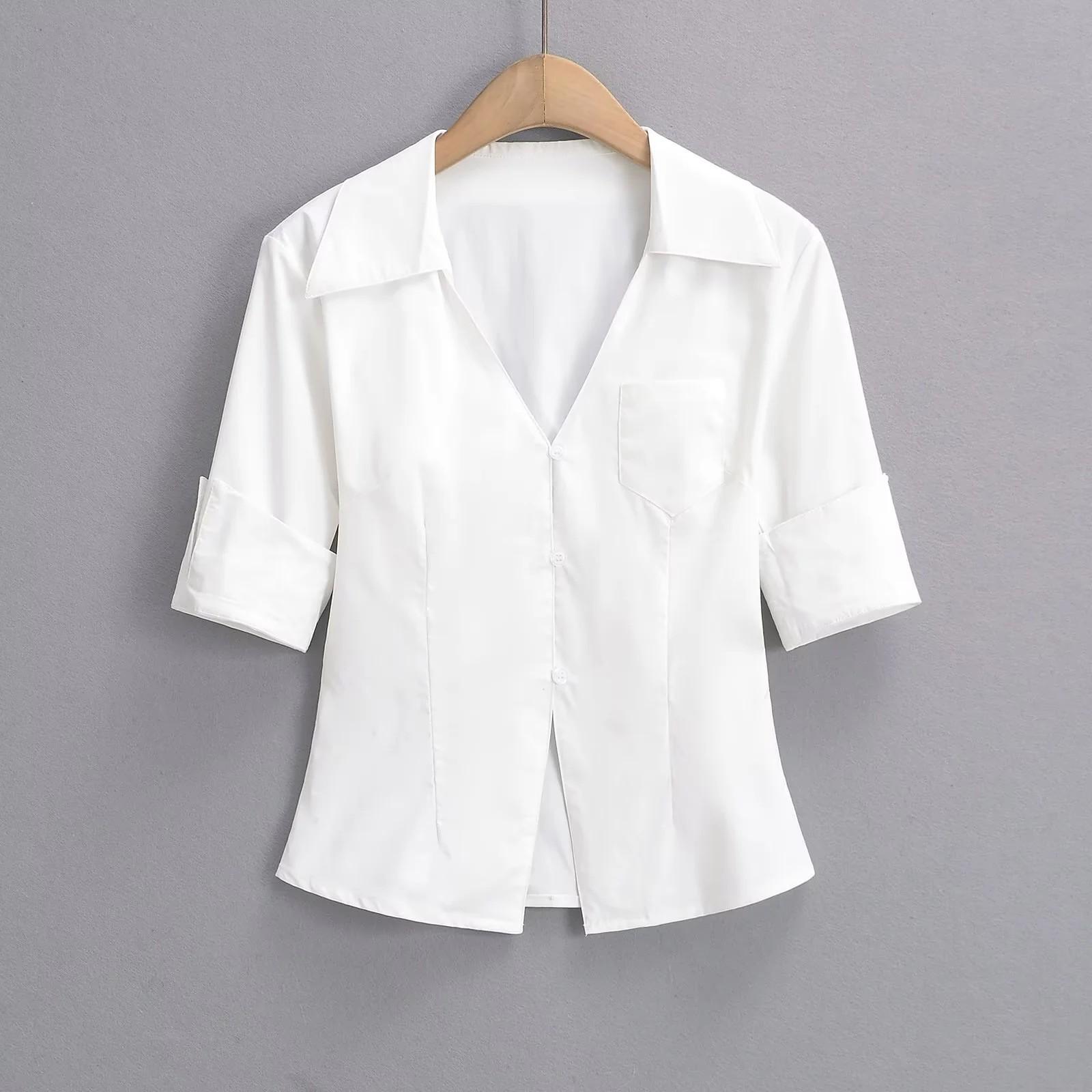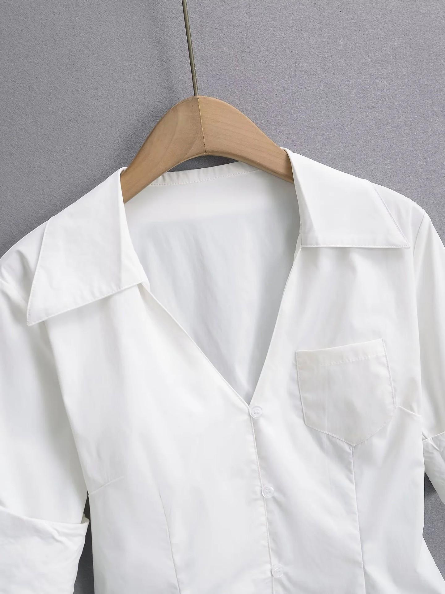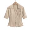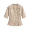 Tendencia de moda chica hot sexy cintura top corto mujer primavera 2025 cuello en V abotonado hueco camisa manga media