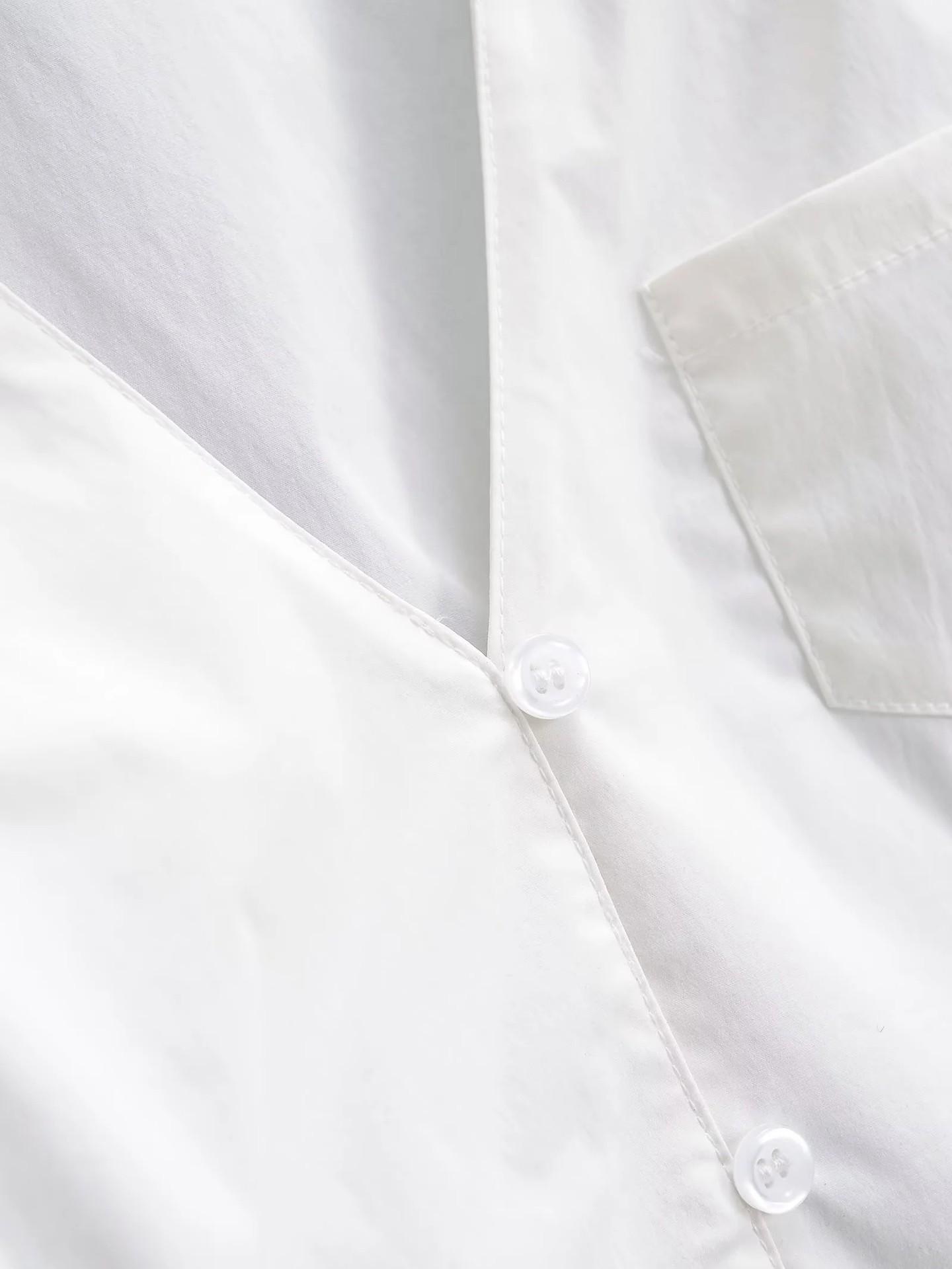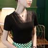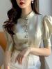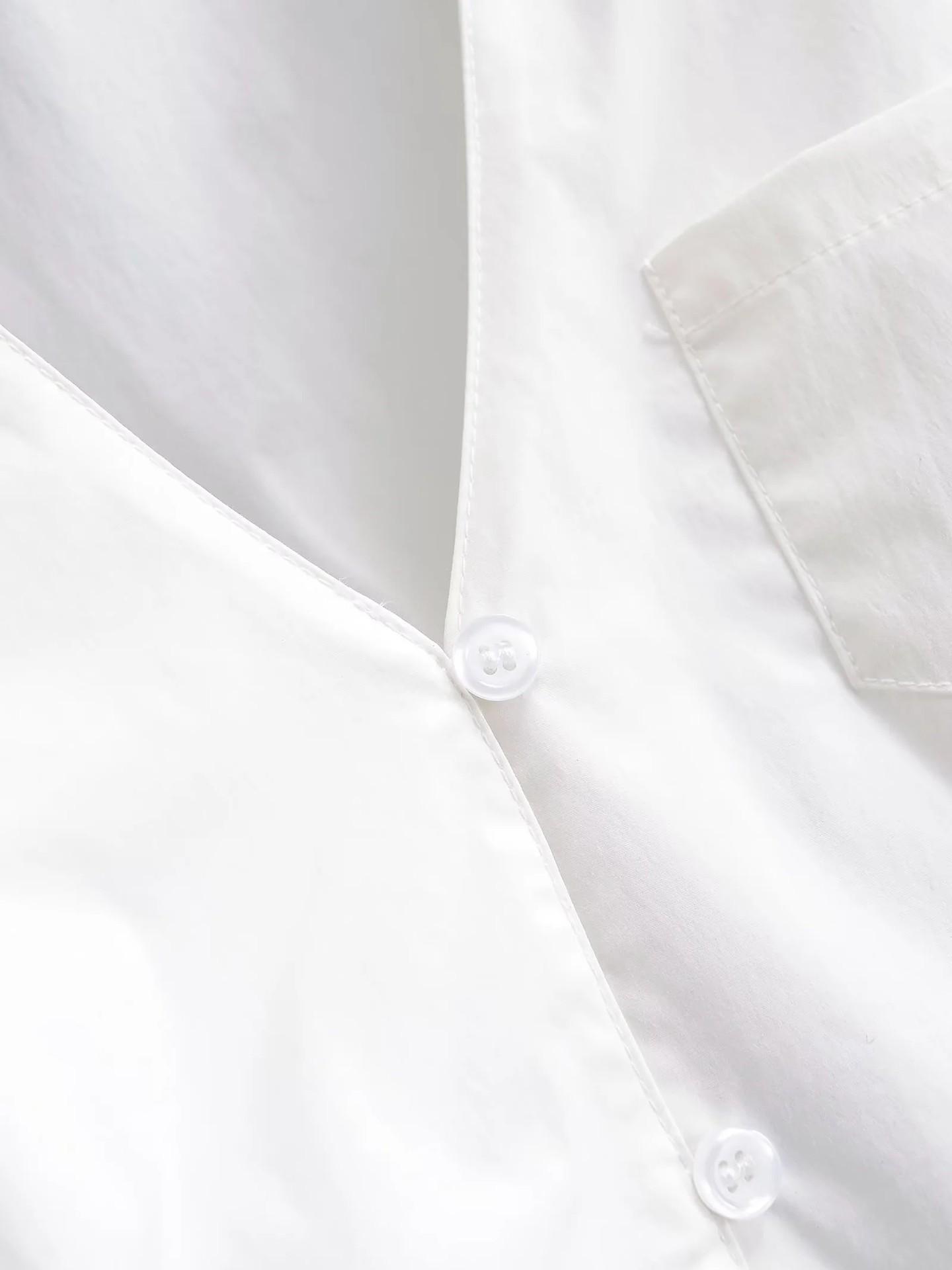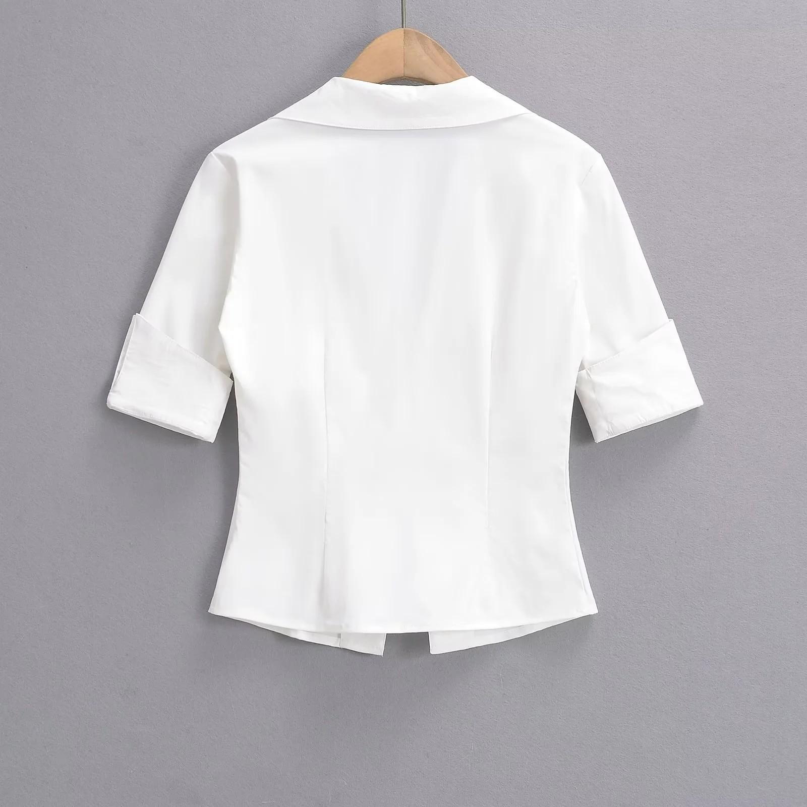 Tendencia de moda chica hot sexy cintura top corto mujer primavera 2025 cuello en V abotonado hueco camisa manga media