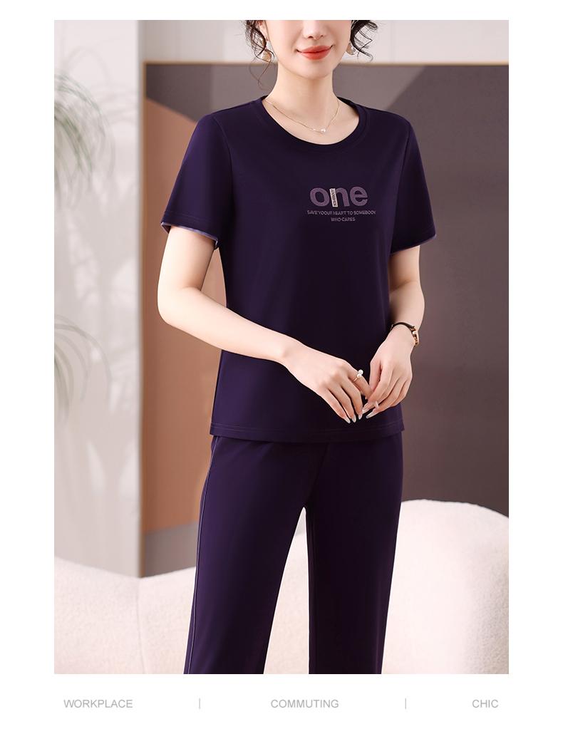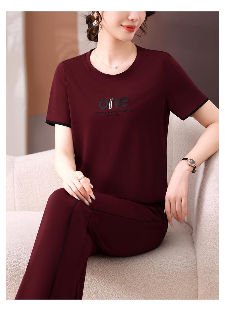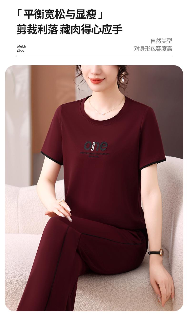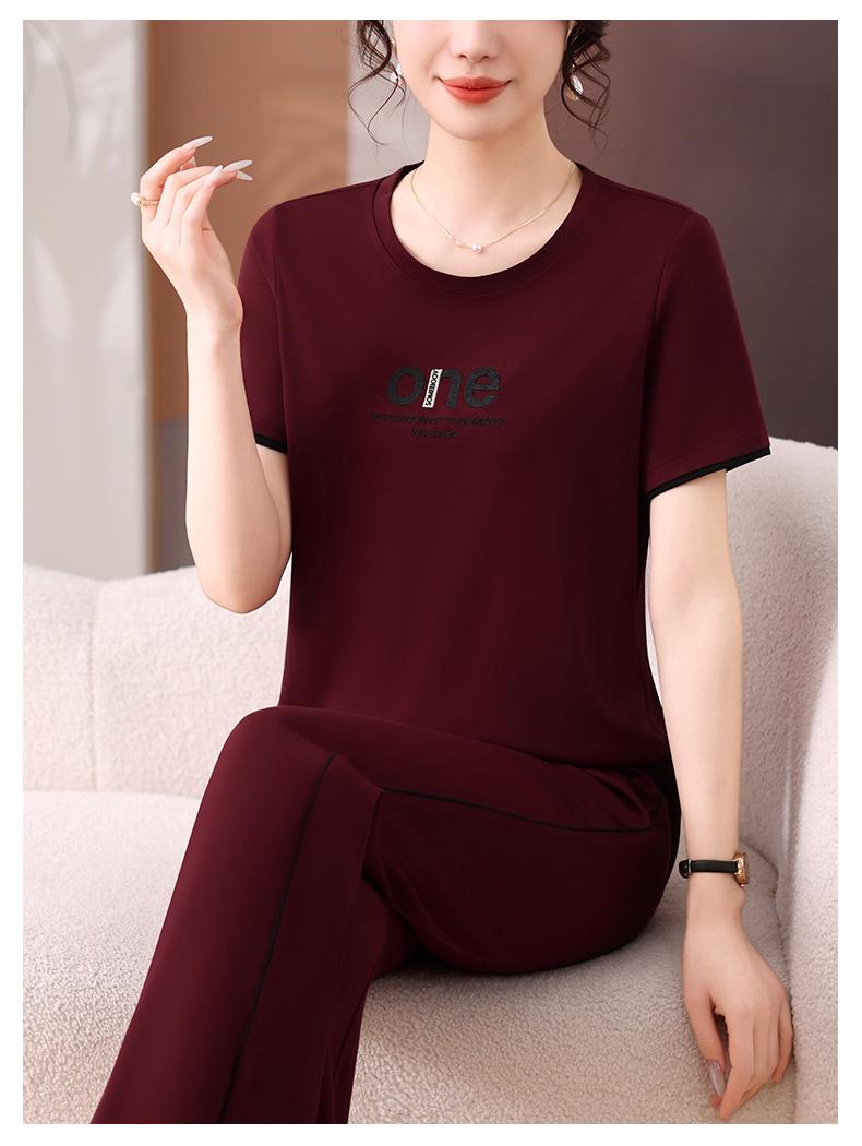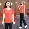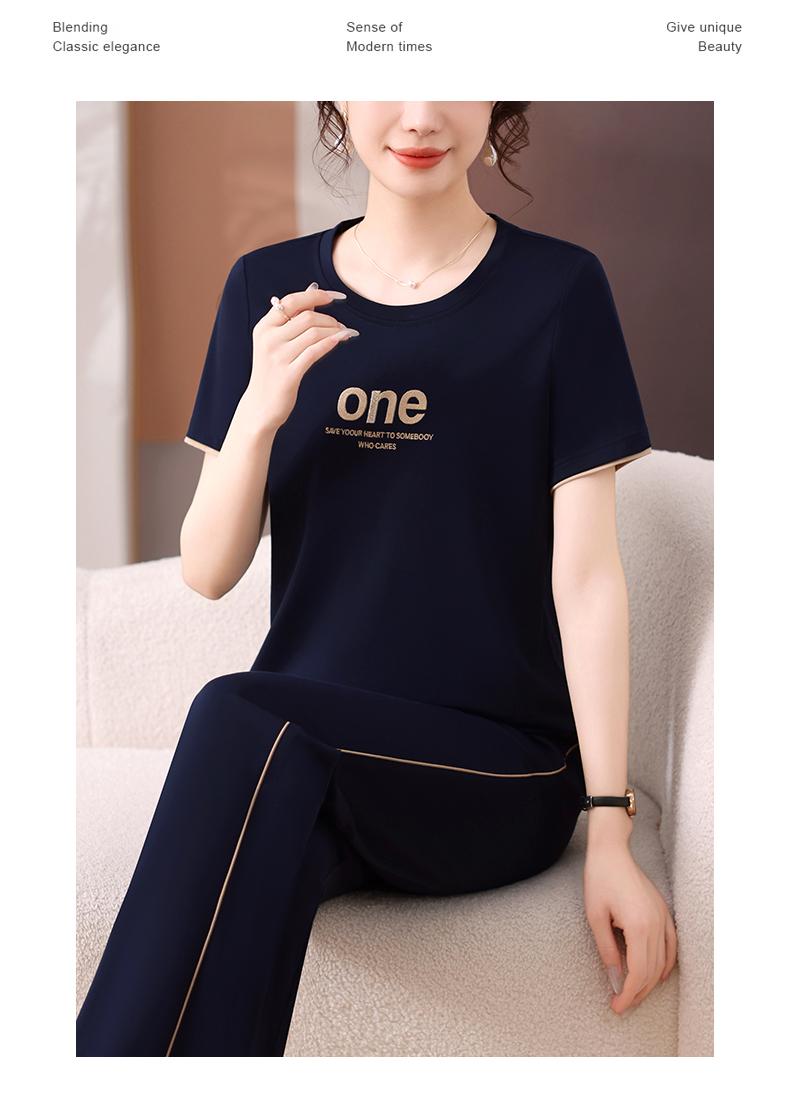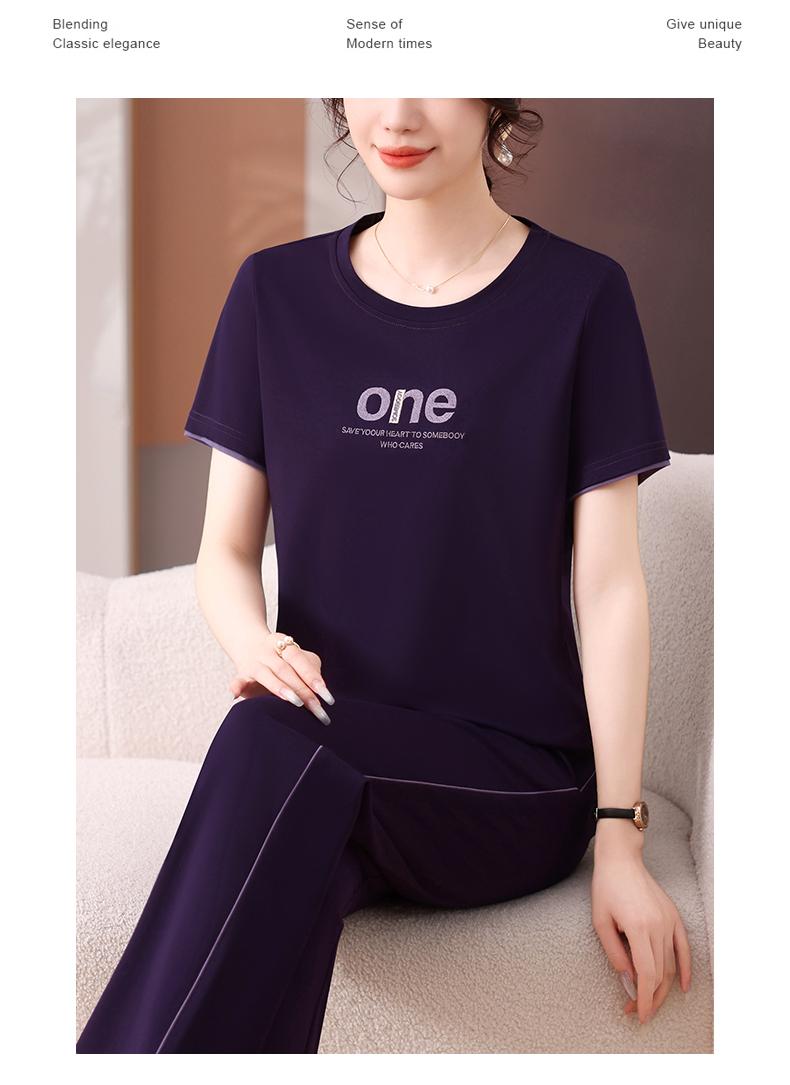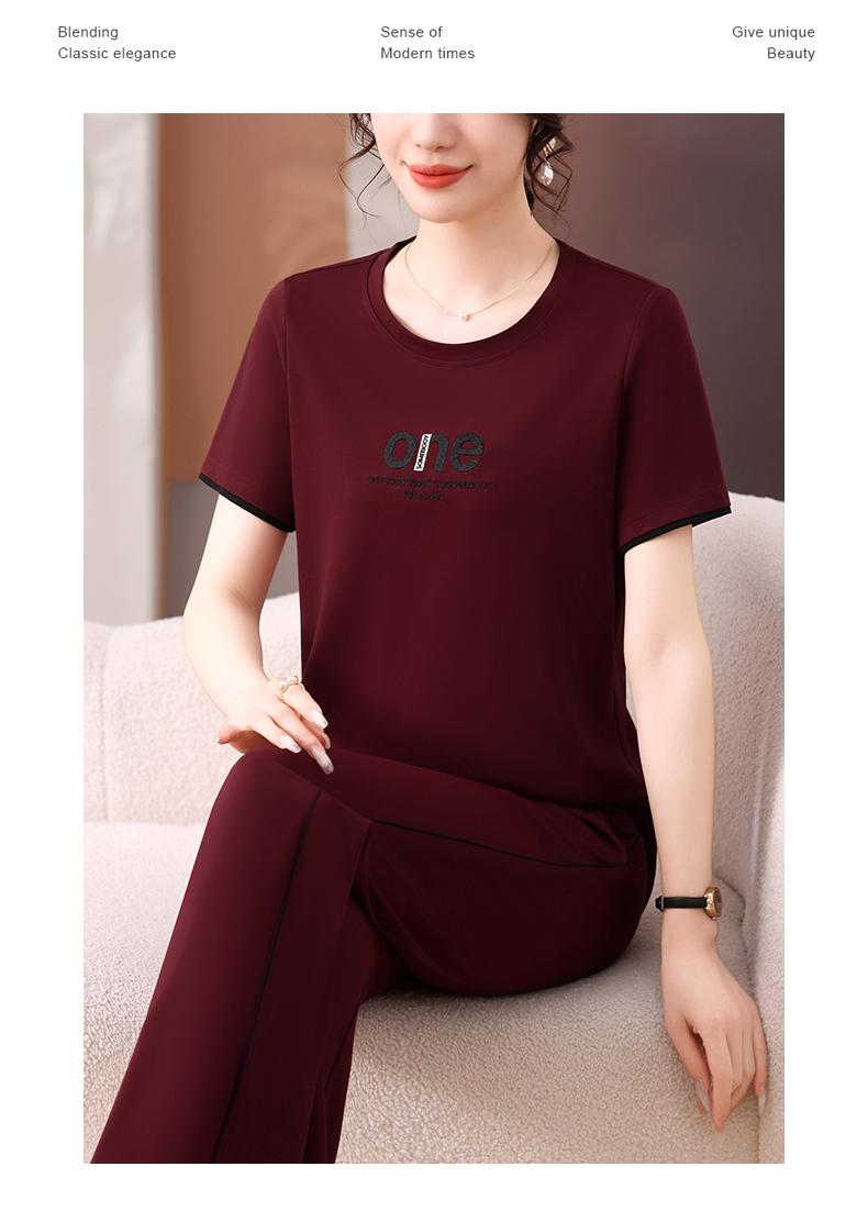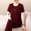 Traje Deportivo de Seda de Hielo para Mujer Verano 2025 Nuevo Cuello Redondo Manga Corta Pantalón Moda Mamá Casual para Correr Conjunto de Dos Piezas