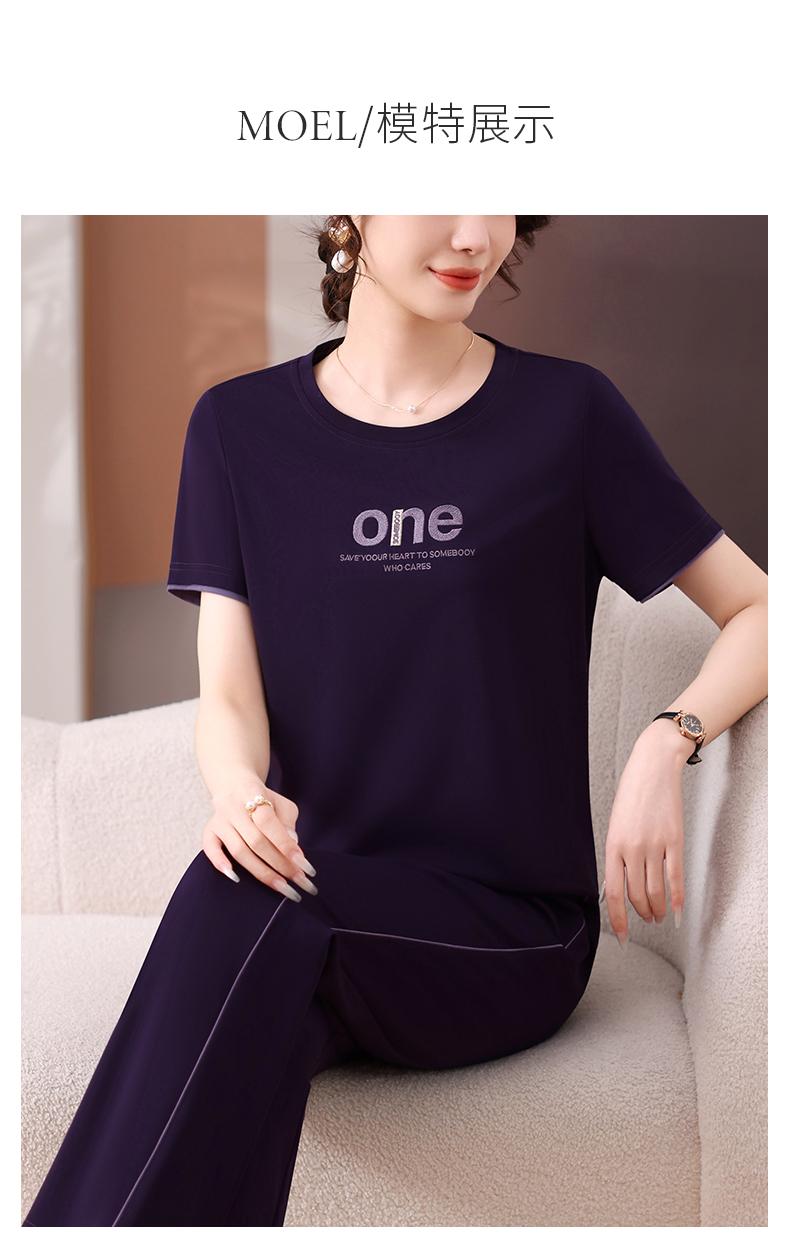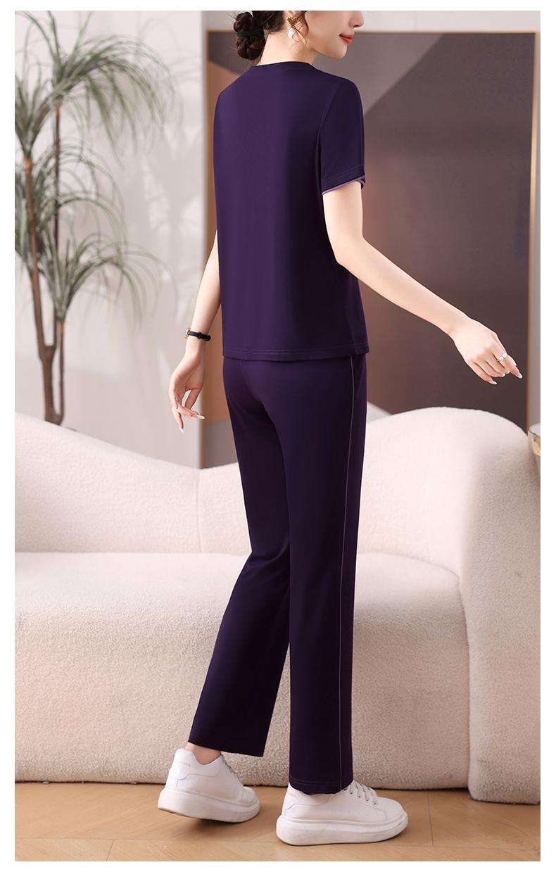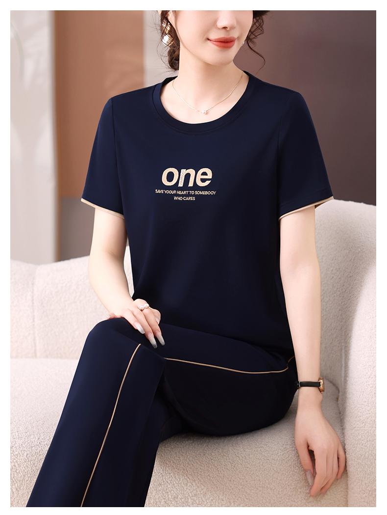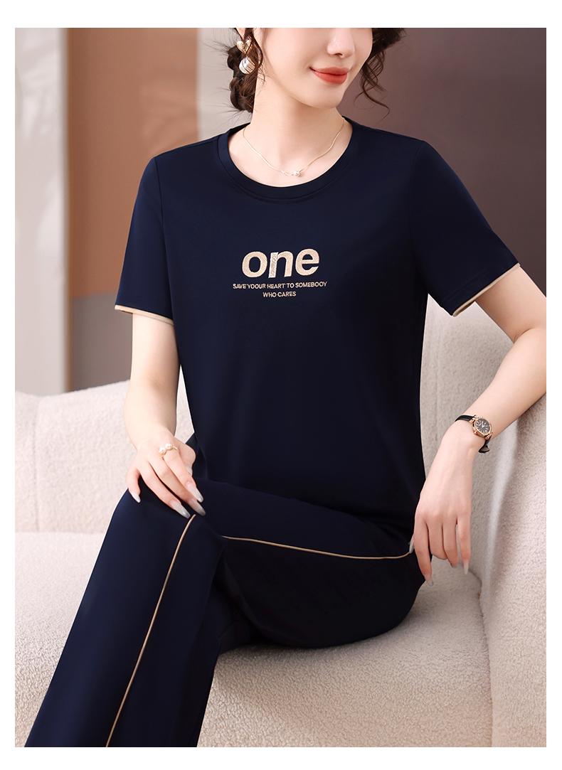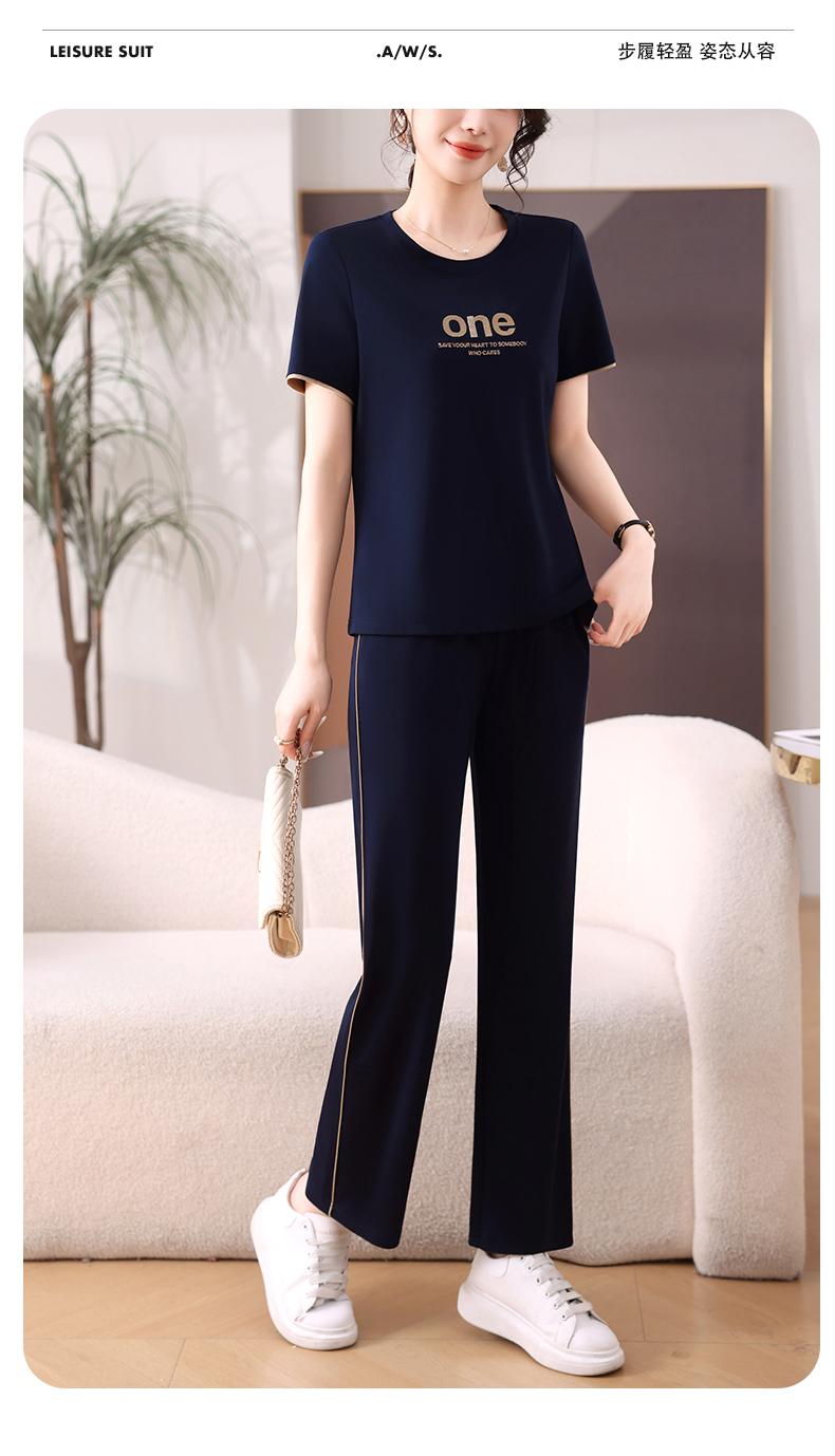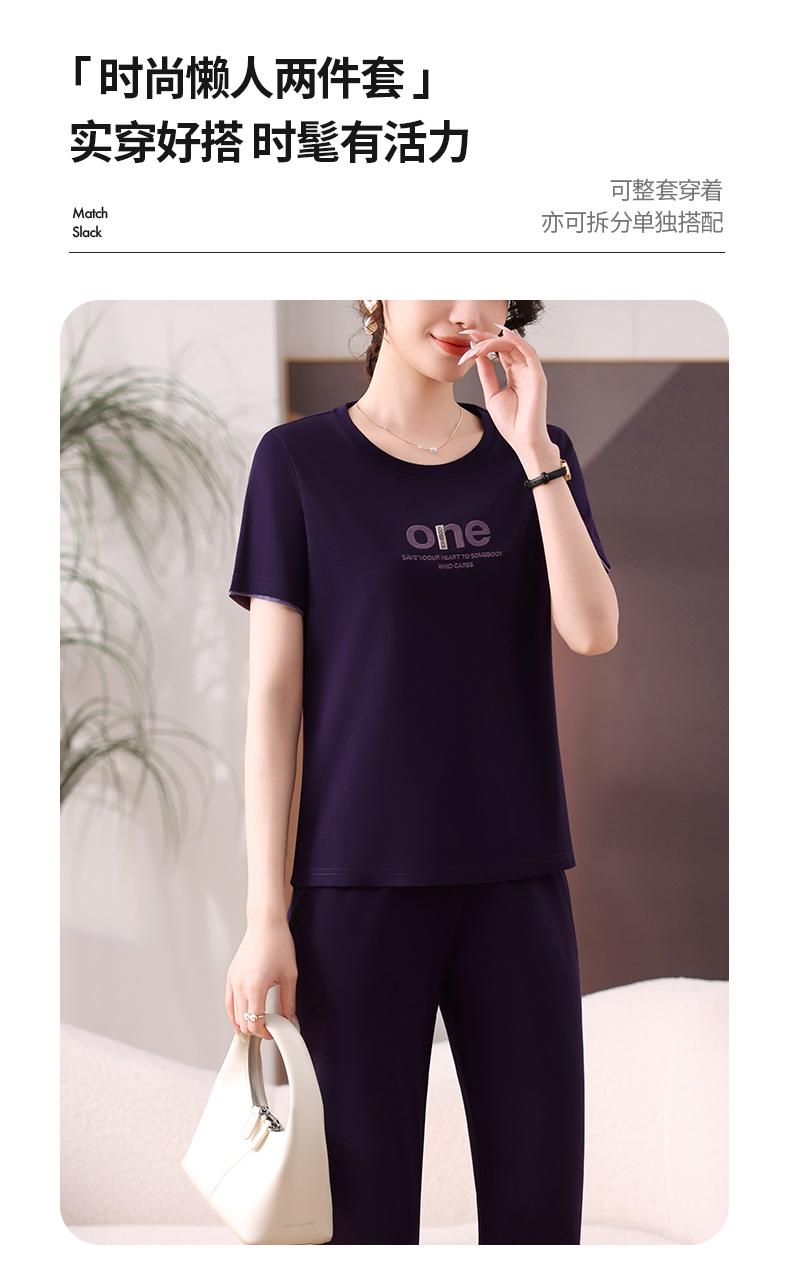 Traje Deportivo de Seda de Hielo para Mujer Verano 2025 Nuevo Cuello Redondo Manga Corta Pantalón Moda Mamá Casual para Correr Conjunto de Dos Piezas