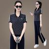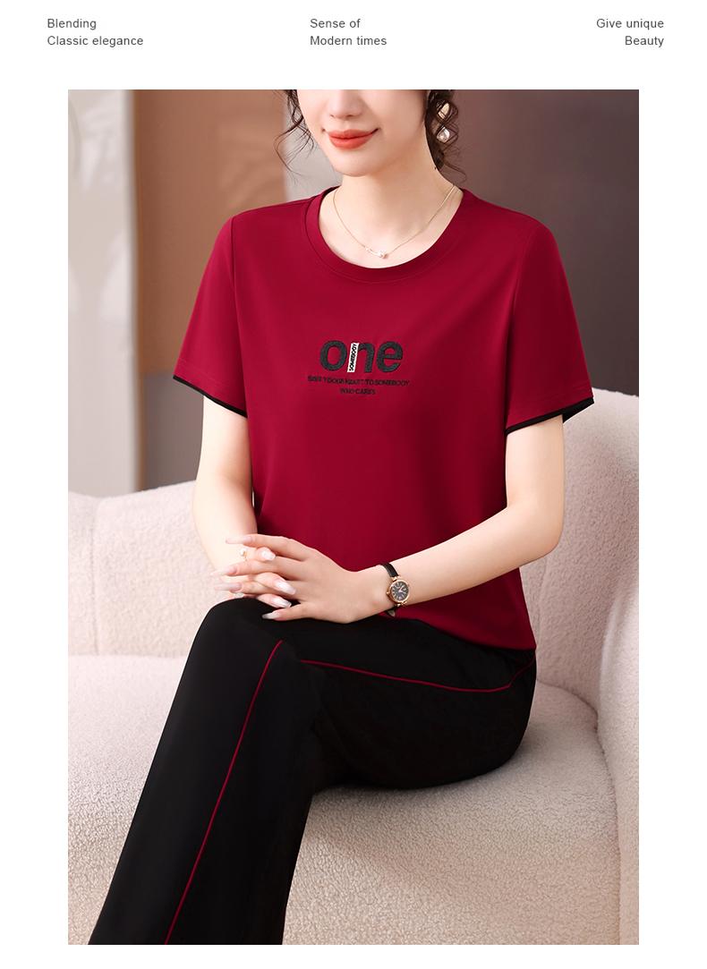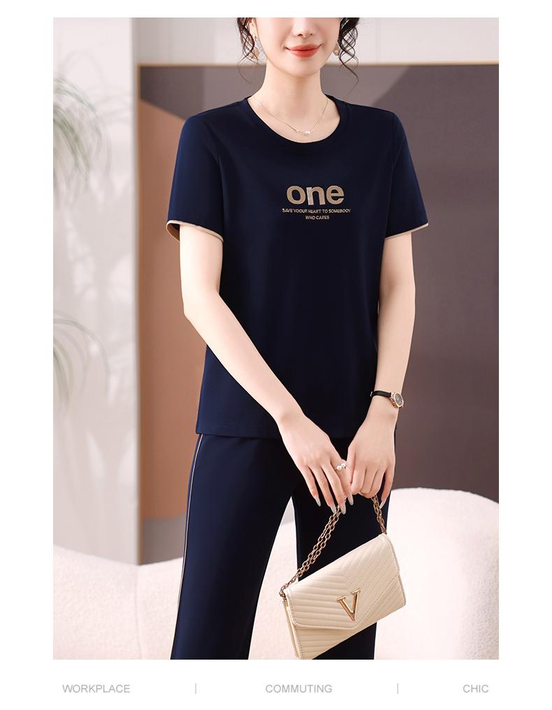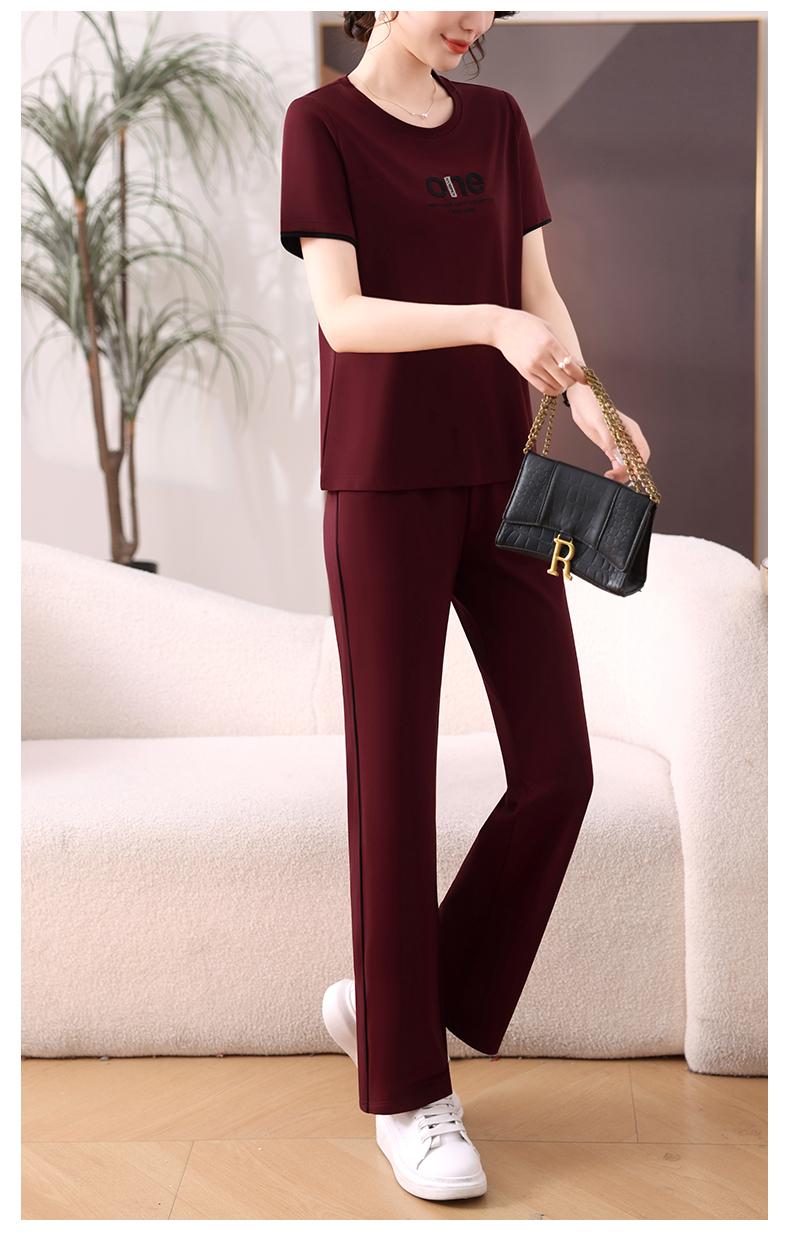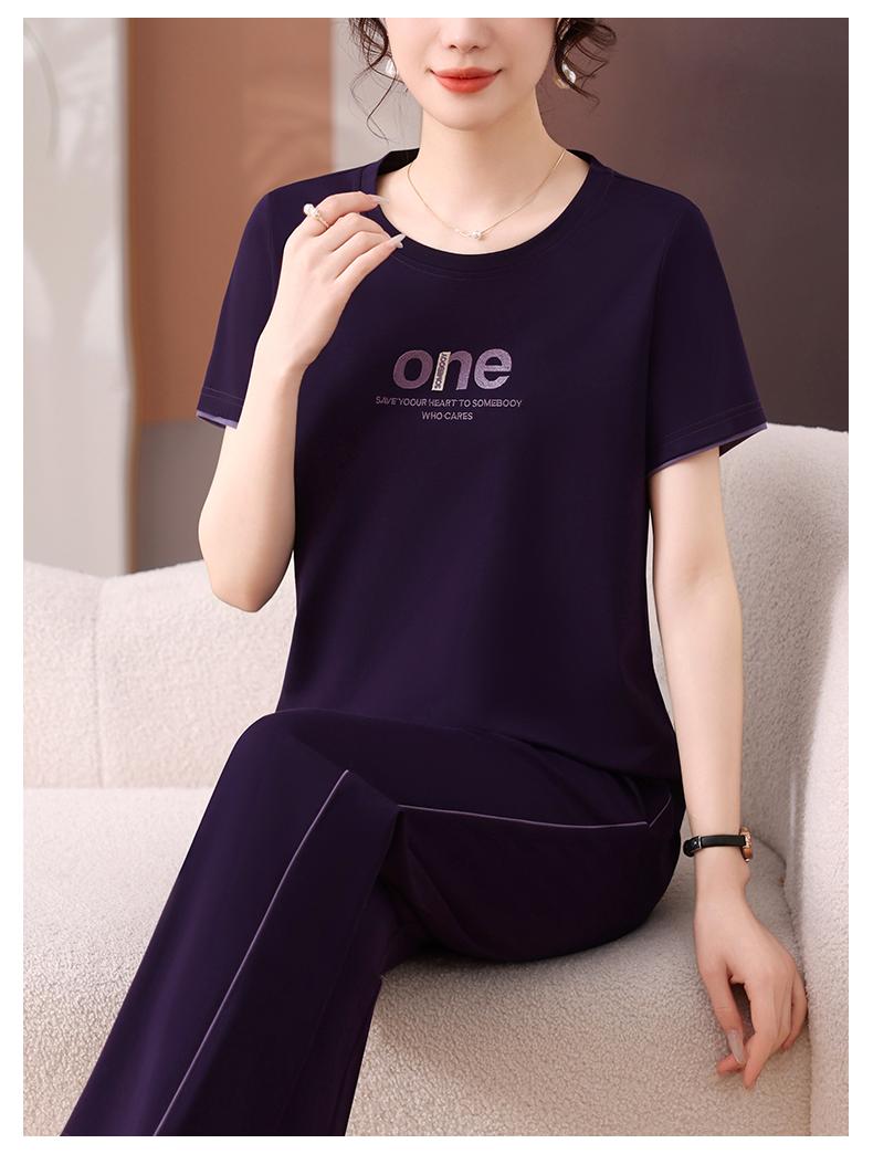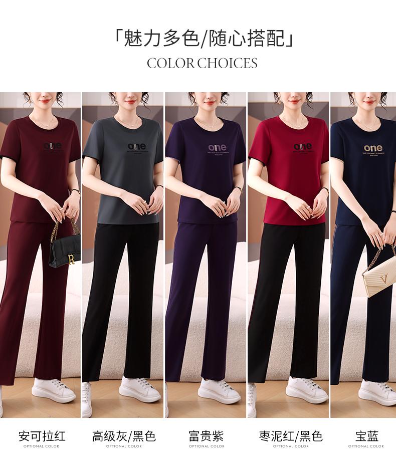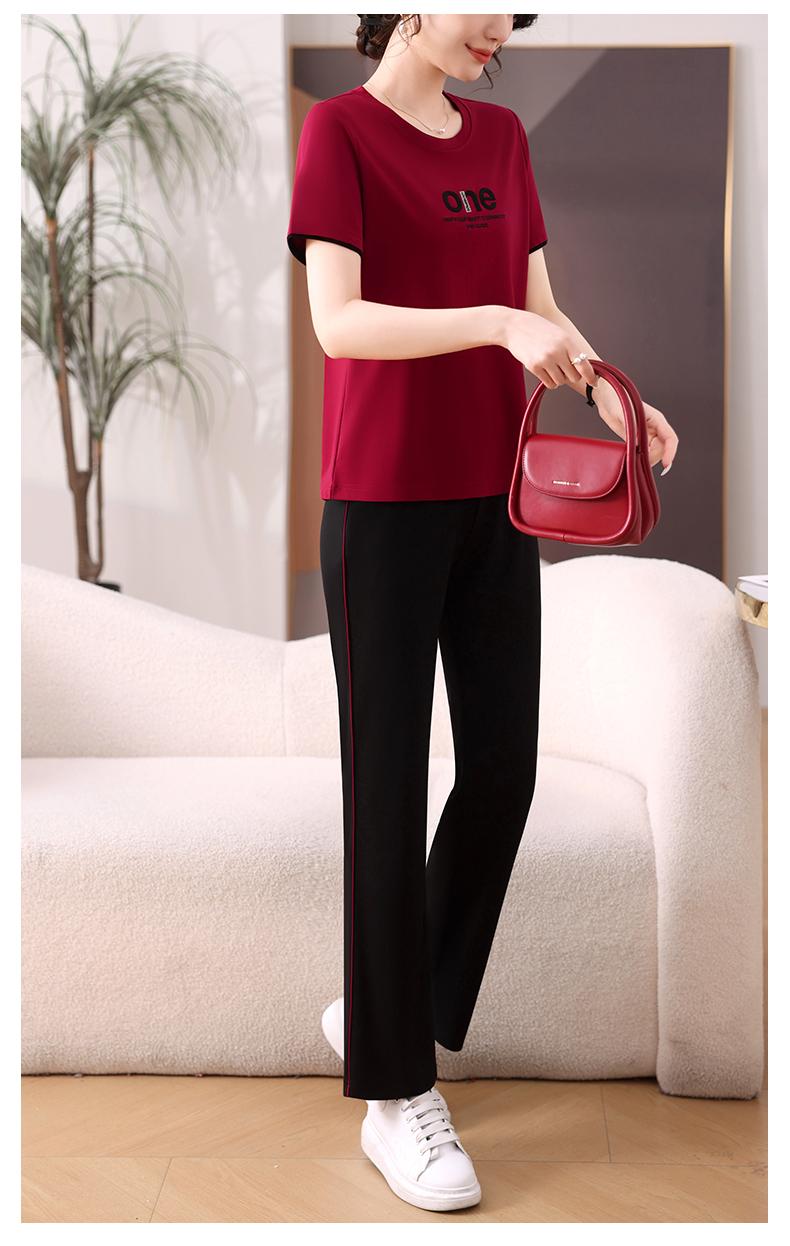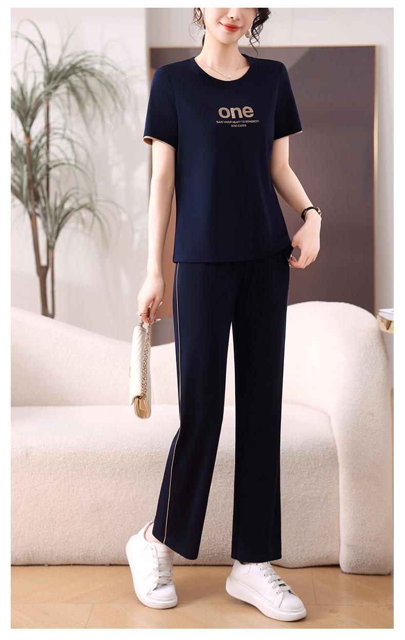 Traje Deportivo de Seda de Hielo para Mujer Verano 2025 Nuevo Cuello Redondo Manga Corta Pantalón Moda Mamá Casual para Correr Conjunto de Dos Piezas