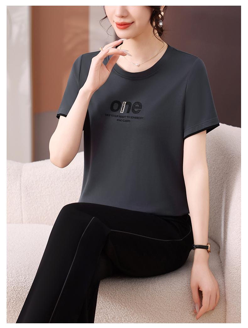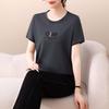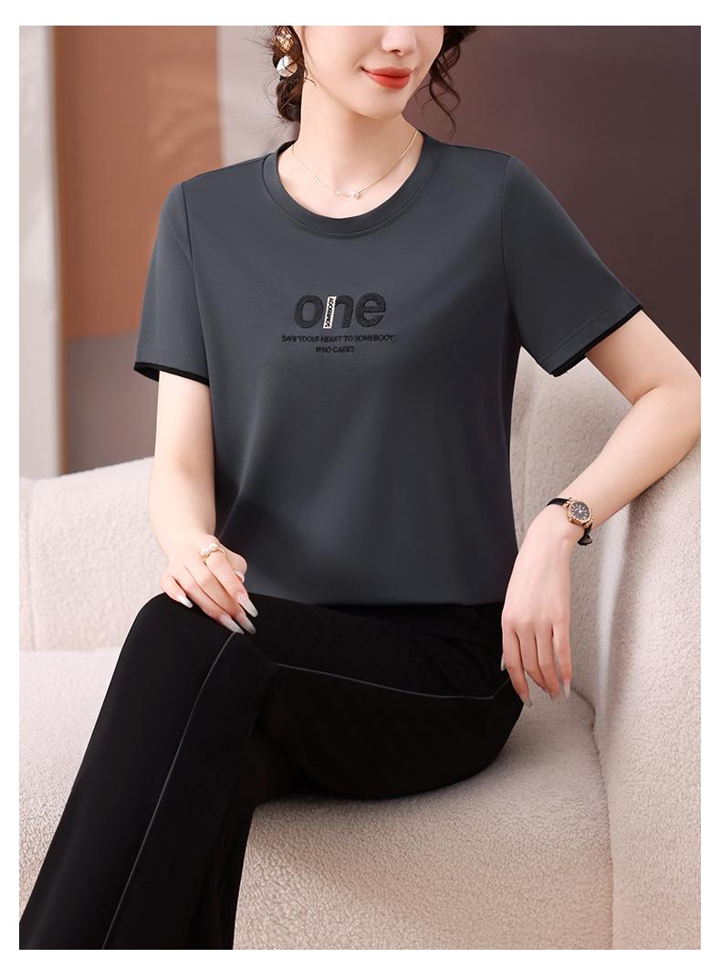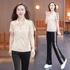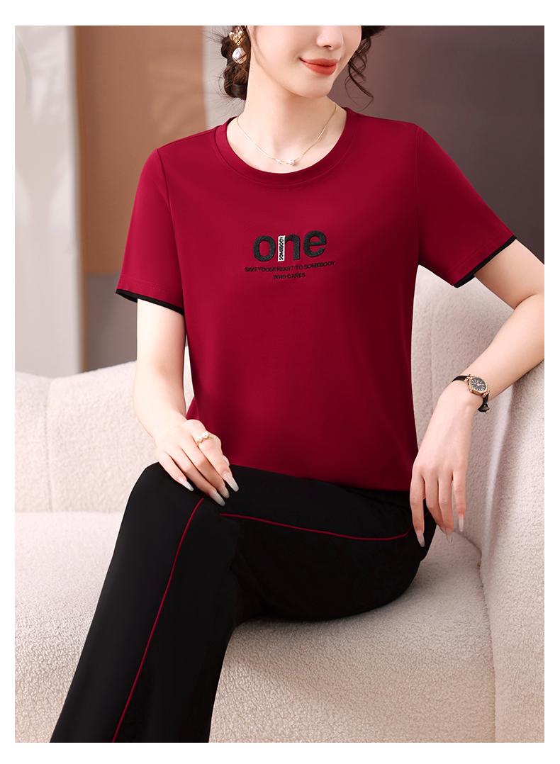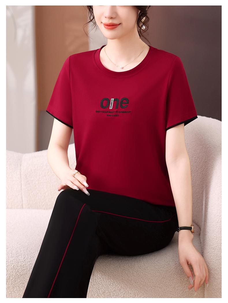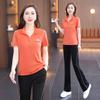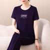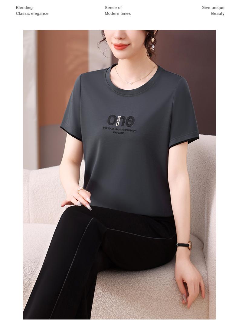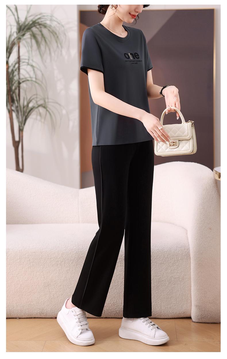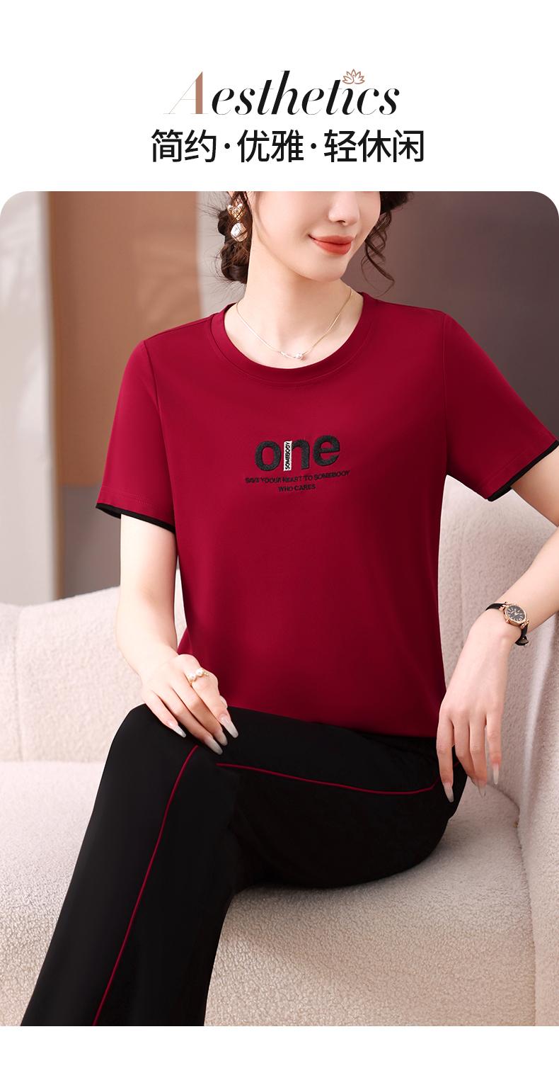 Traje Deportivo de Seda de Hielo para Mujer Verano 2025 Nuevo Cuello Redondo Manga Corta Pantalón Moda Mamá Casual para Correr Conjunto de Dos Piezas