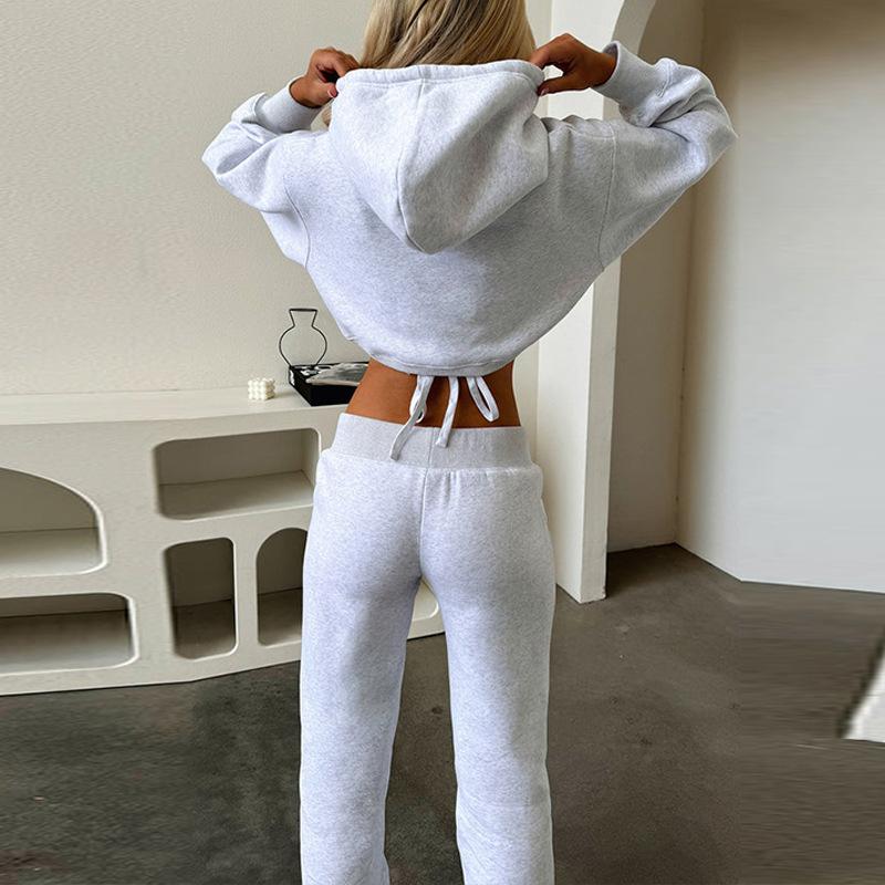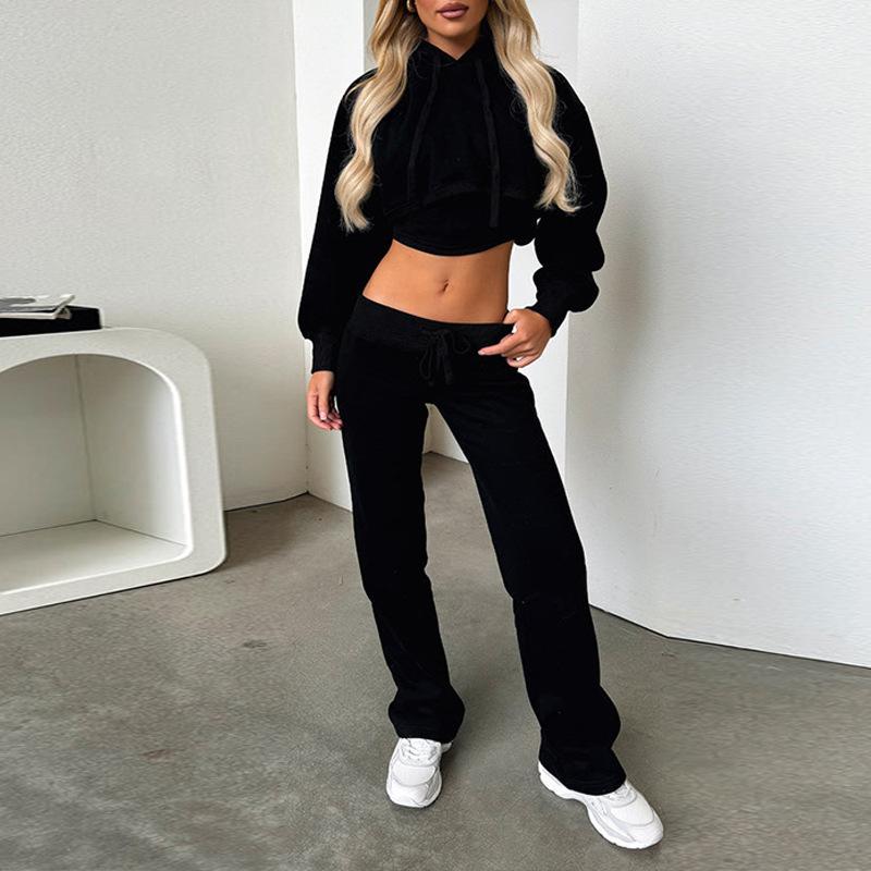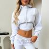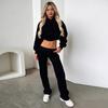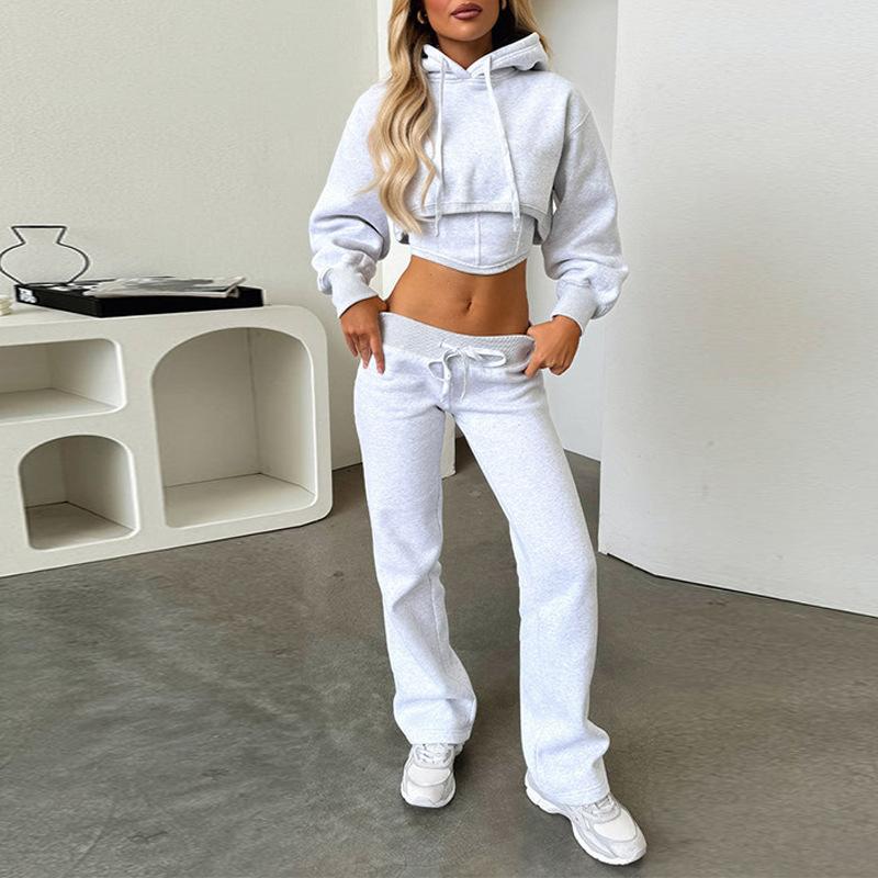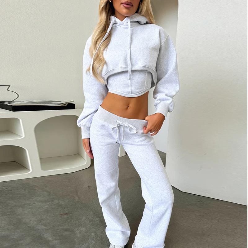 Traje de Mujer de Estilo Europeo y Americano 2025 Nuevo para Exportación Transfronteriza Traje de Sudadera de Dos Piezas Falso Corto de Color Puro para Mujer