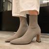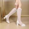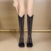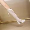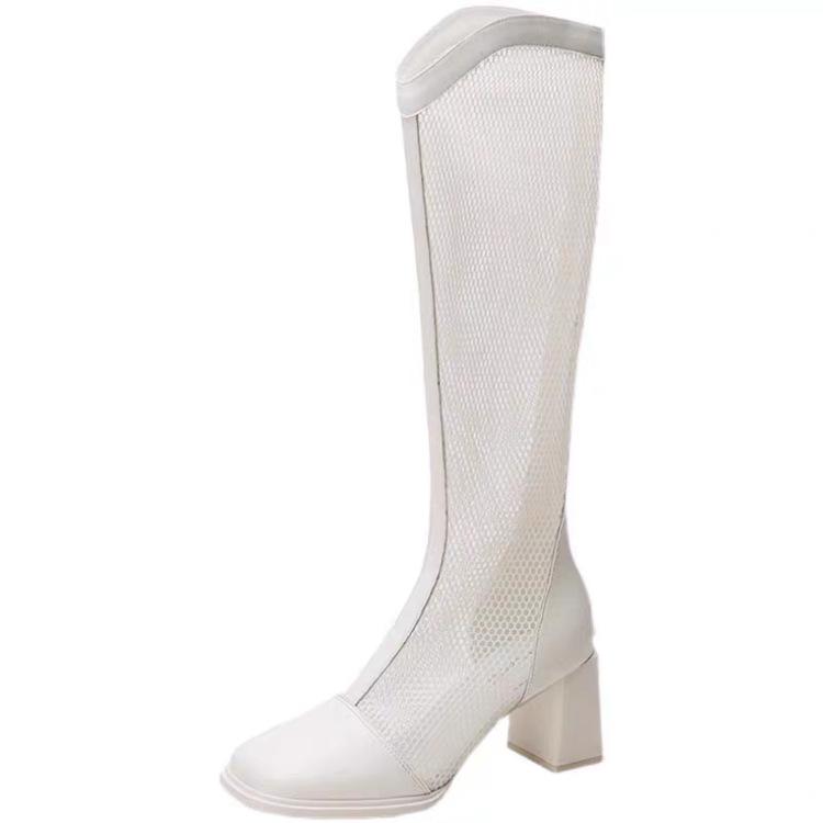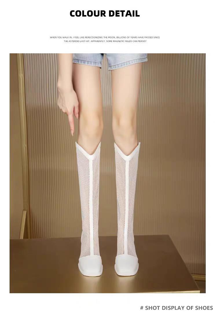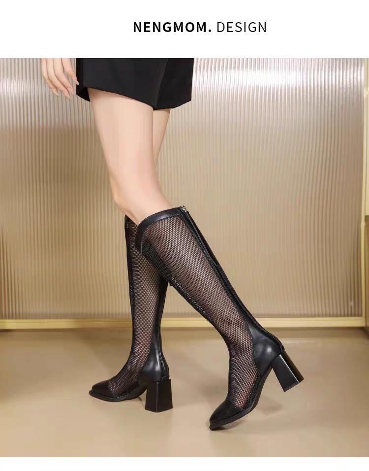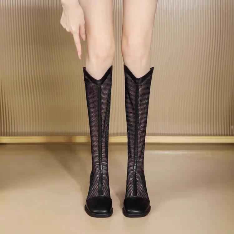 Botas de Malla de Tacón Grueso Nuevo Estilo 2024 Botas de Malla Frescas de Verano para Mujer Tacón Alto Punta Cuadrada Hueca Botas Altas Look Delgado Botas Largas Mujer