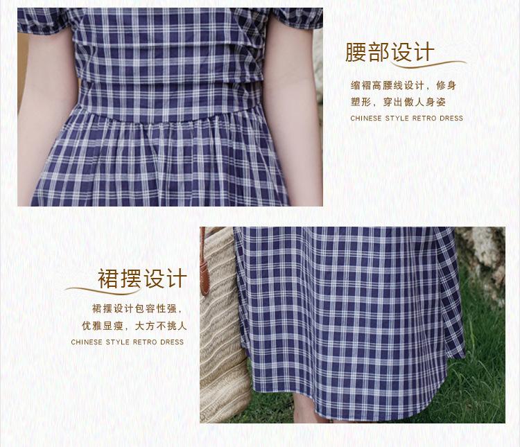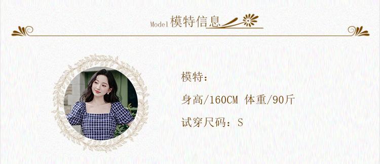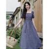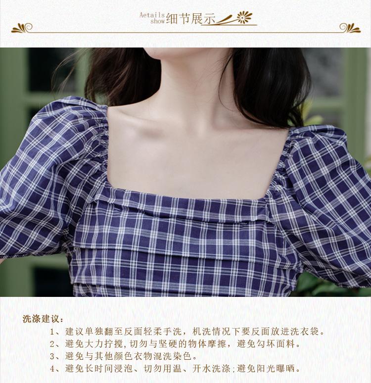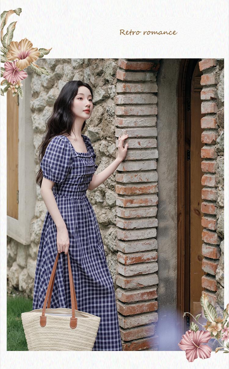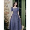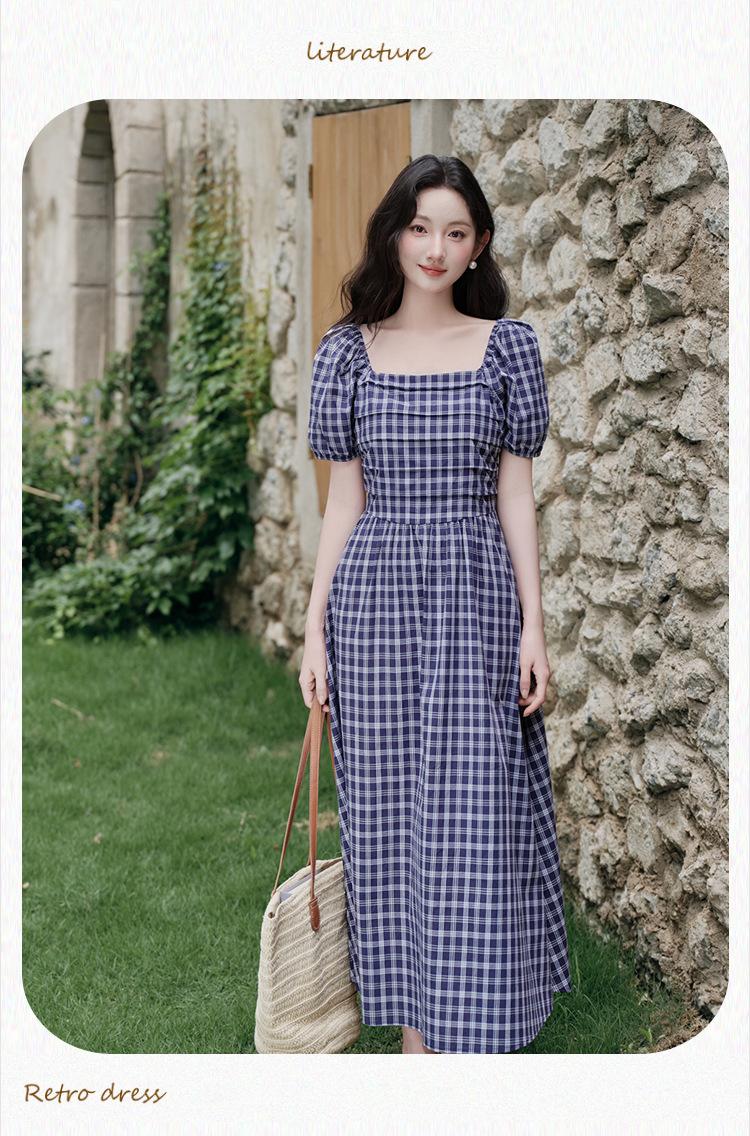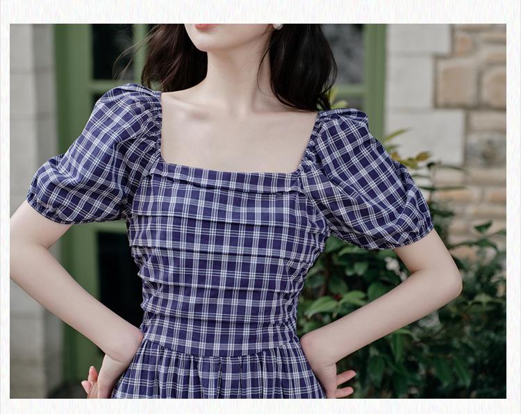 Foto Real de Vestido de Cuadros con Cuello Cuadrado Francés Listo para Usar para Mujer 2025 Verano Nuevo Falda de Manga Abullonada