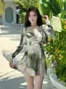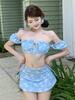 Traje de Baño 2025 Nuevo de Falda Dividida para Mujer para Cubrir el Vientre y Lucir Adelgazante Look Traje de Baño para Mujer para Playa Resort Aguas Termales [Una Pieza Envío Directo]