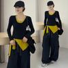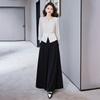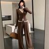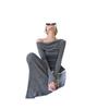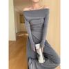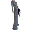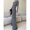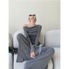 Traje Gris de Dos Piezas para Primavera y Otoño 2025 para Mujer, Top Irregular de un Hombro, Pantalones de Pierna Ancha de Cintura Alta, Diseño de Pantalón