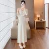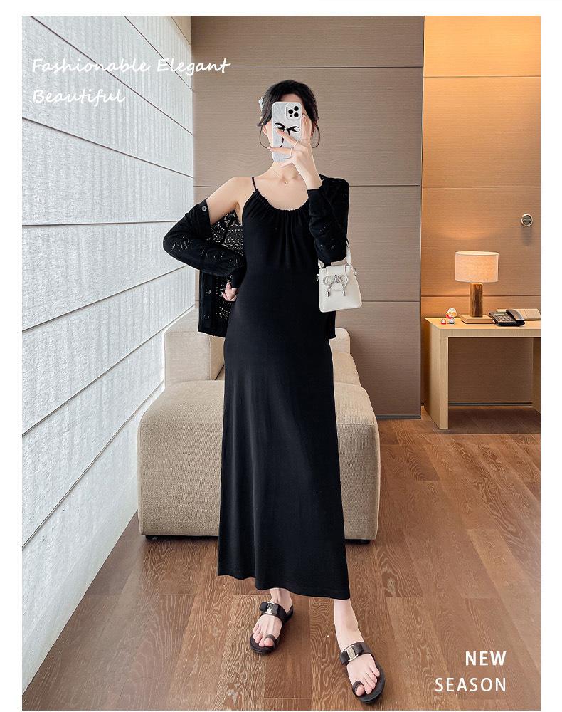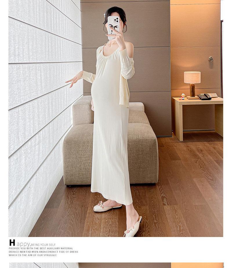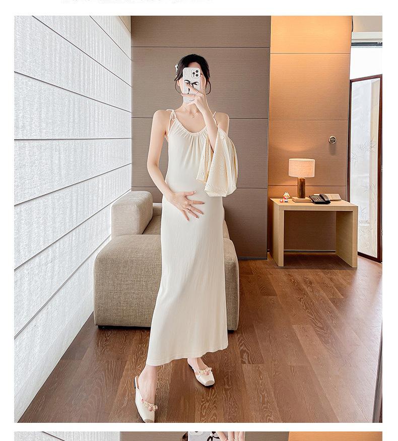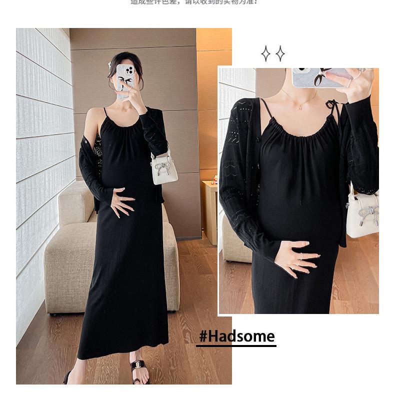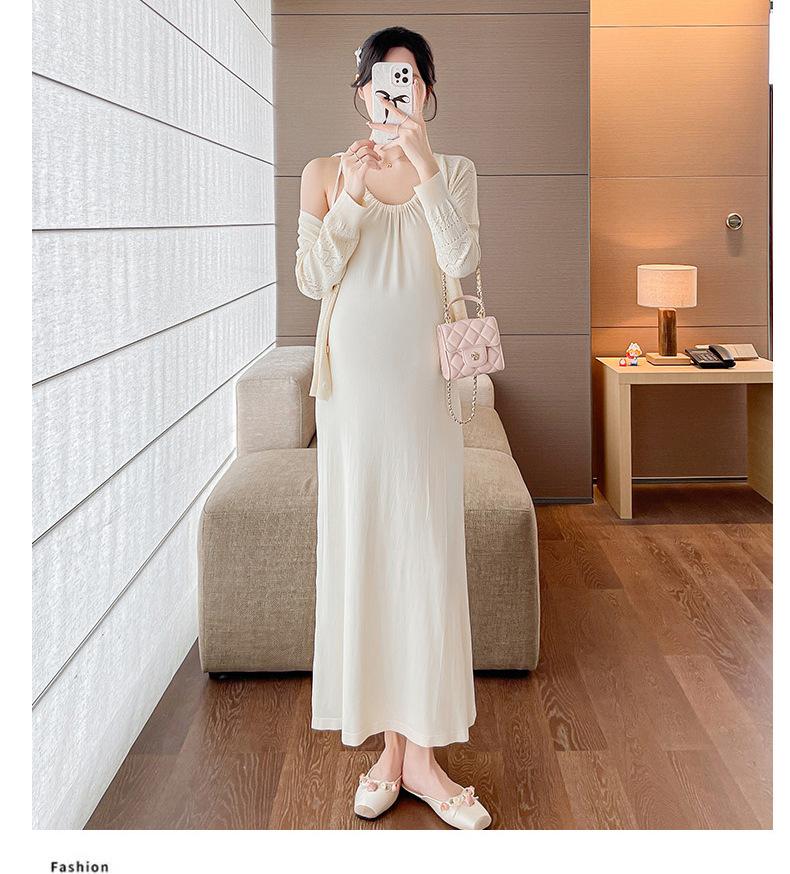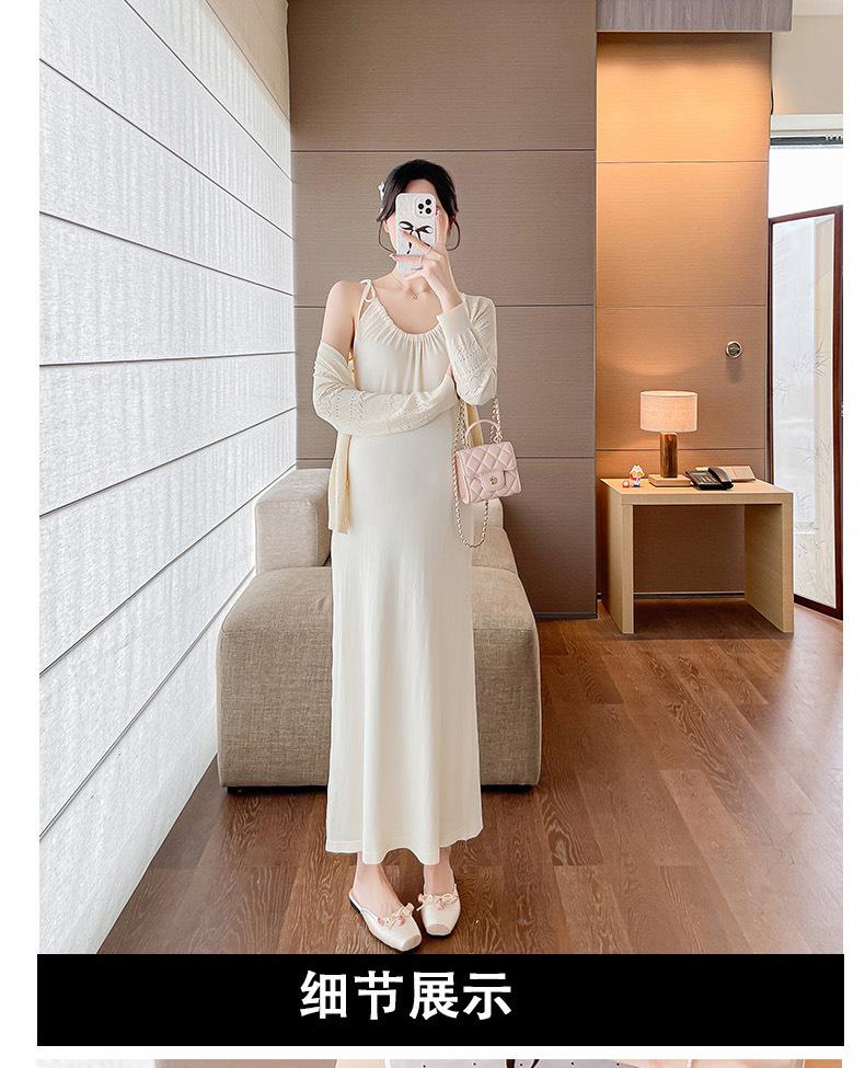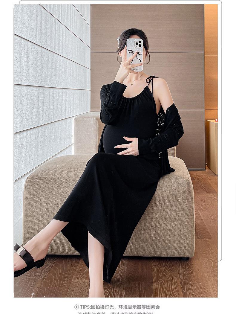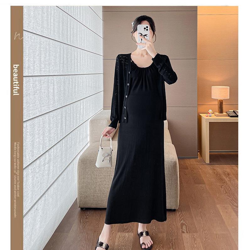 Ropa de Maternidad 2025 Verano Nuevo Dulce Suelto Seda de Hielo Falda de Tirantes + Cárdigan Vestido de Maternidad de Dos Piezas