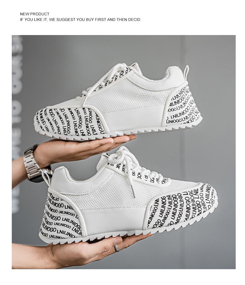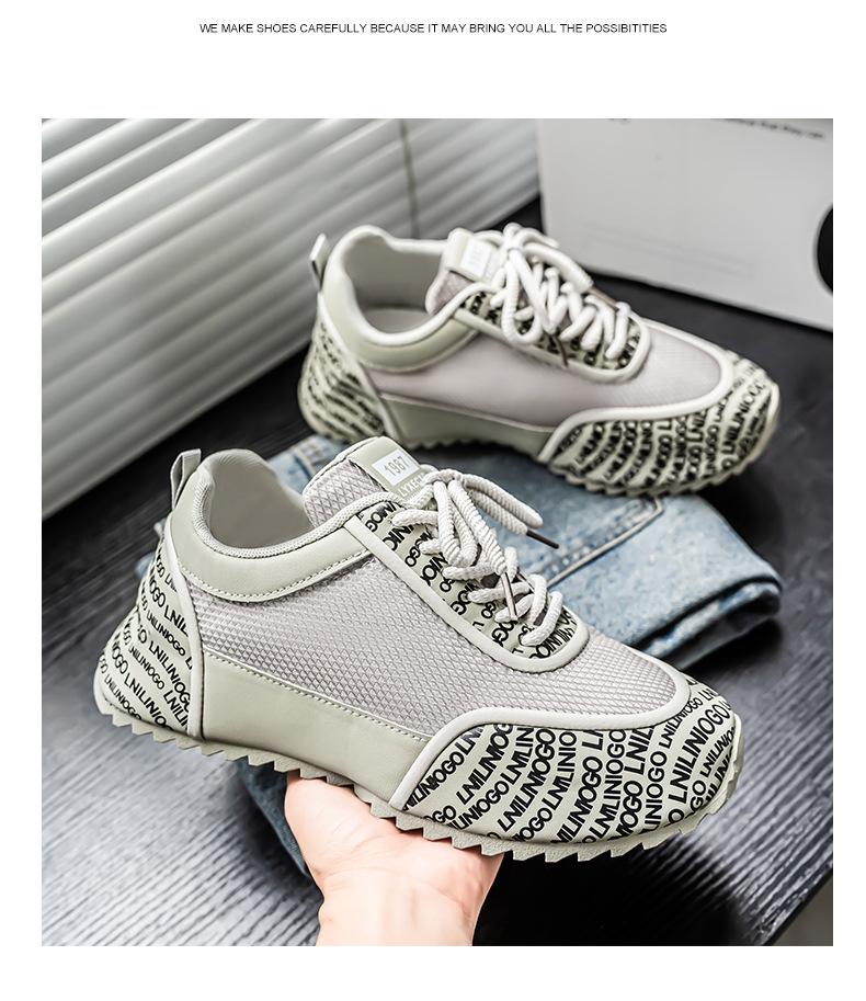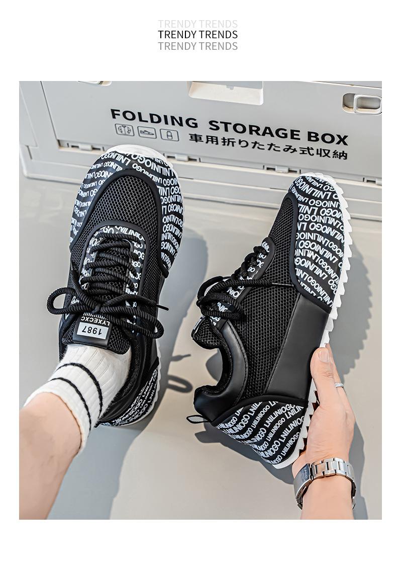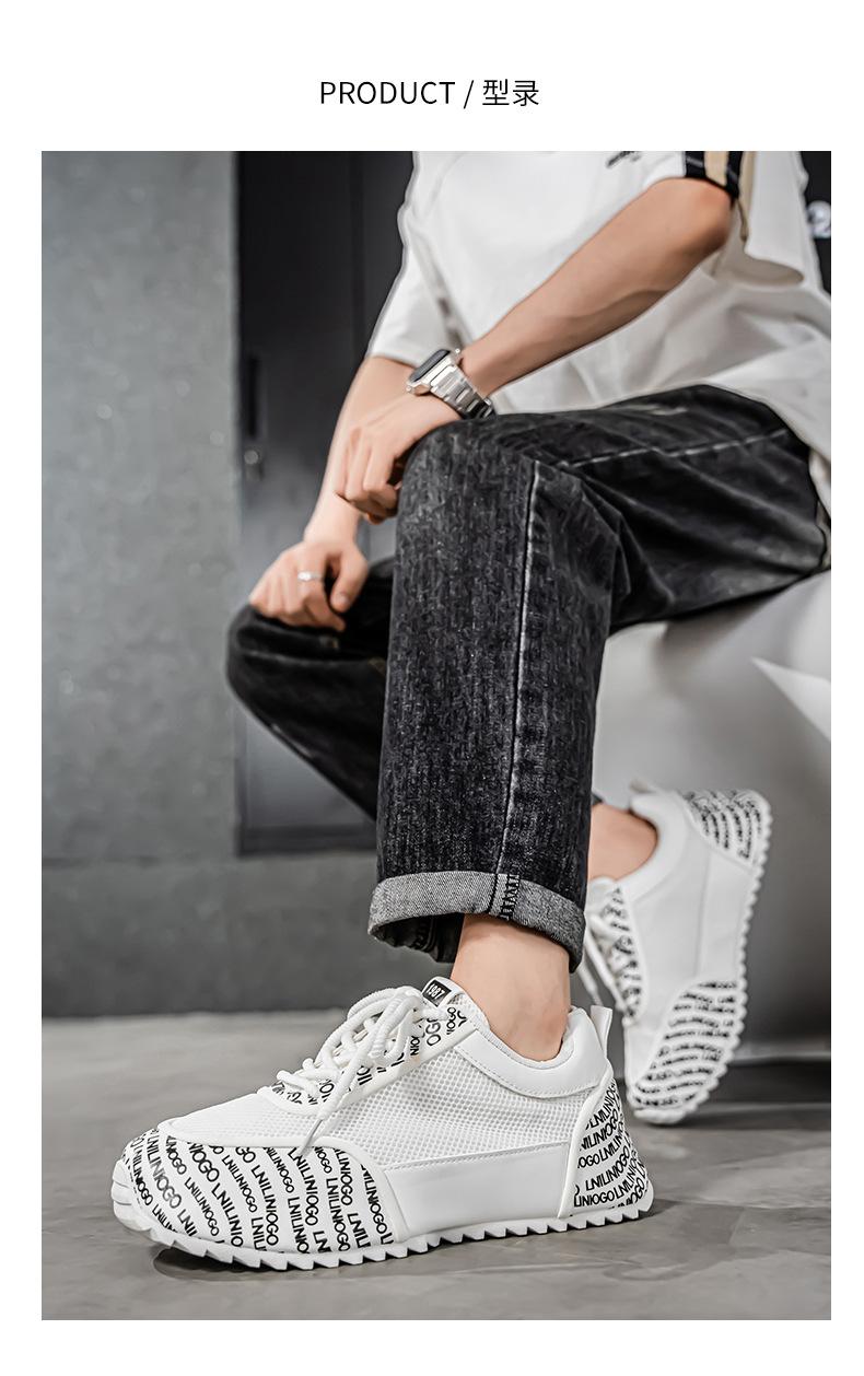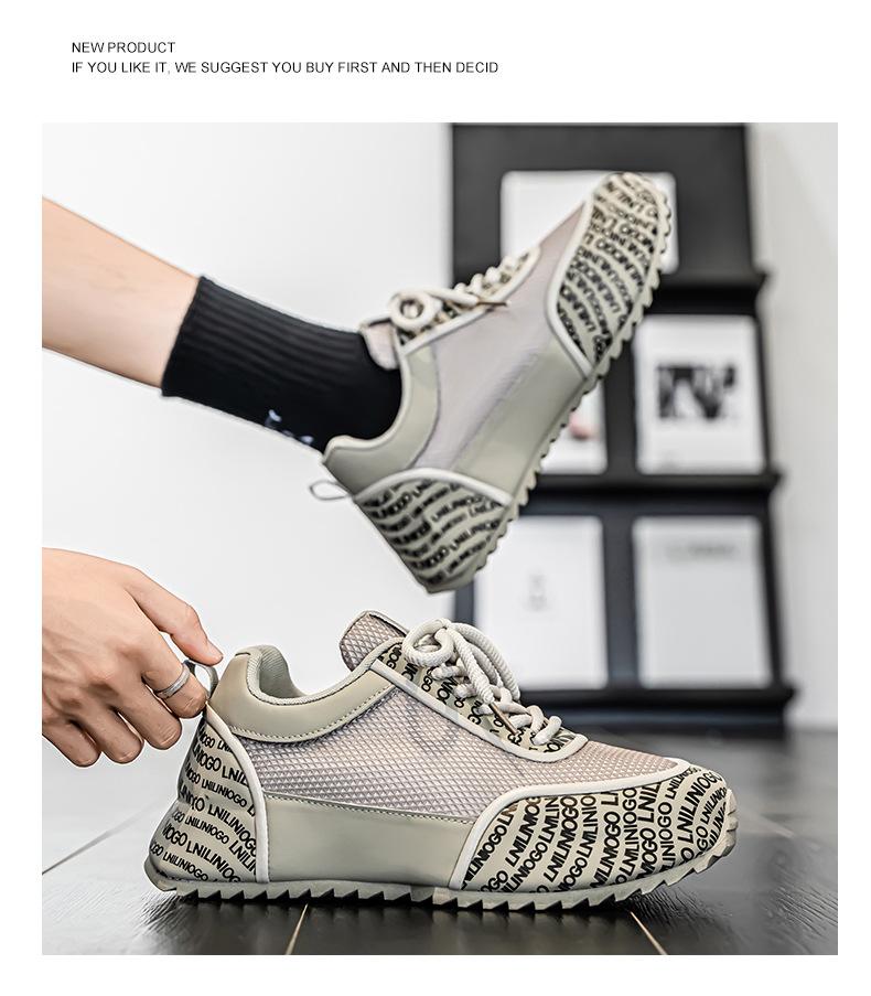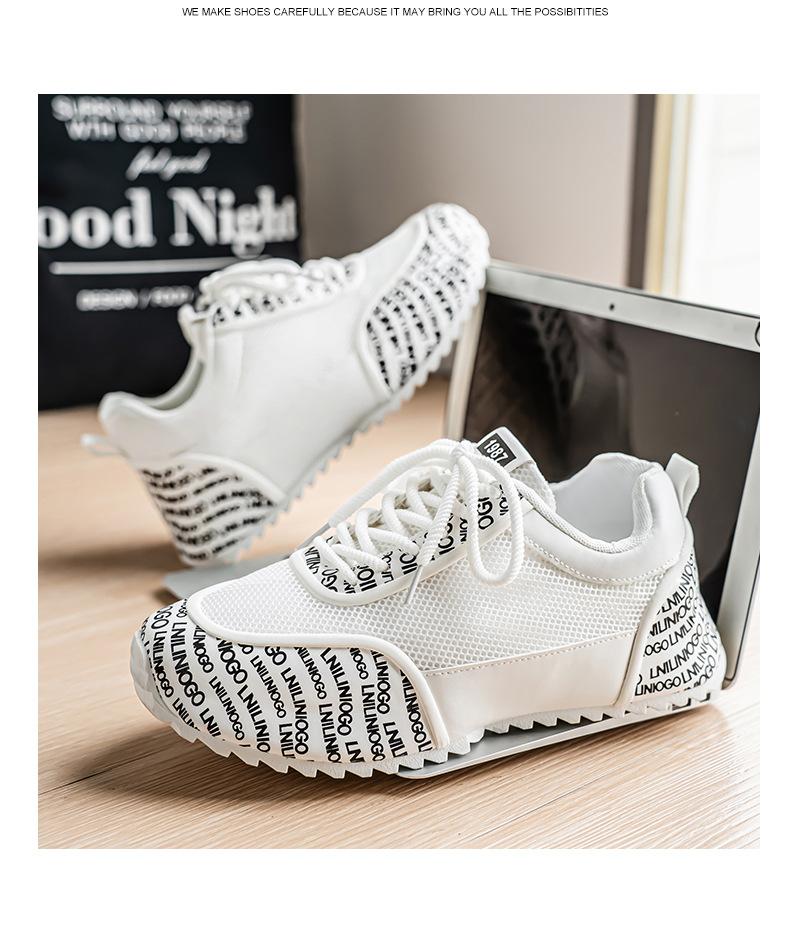 Zapatos Europeos para Hombre Verano Nuevo Malla Transpirable Zapatos Deportivos Casuales con Letras Estampadas que Aumentan la Altura Zapatos de Papá a la Moda