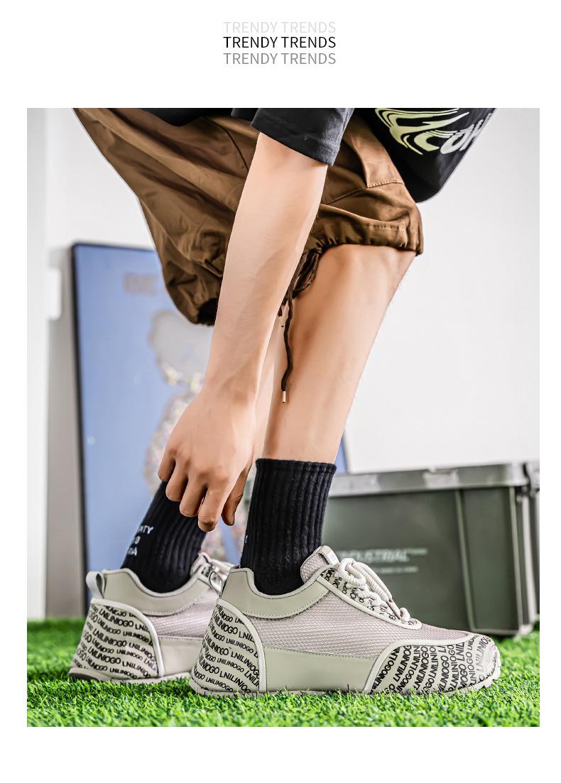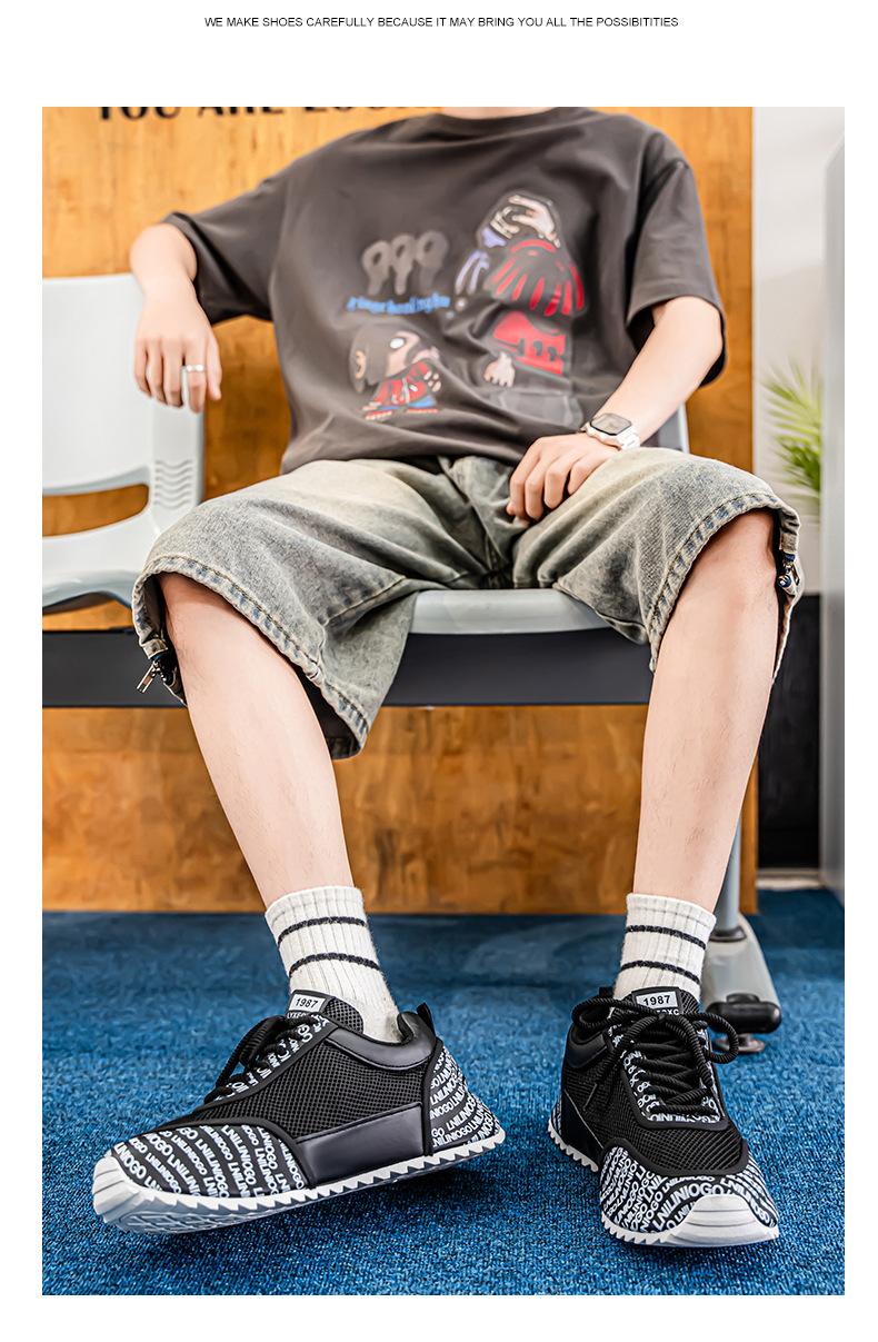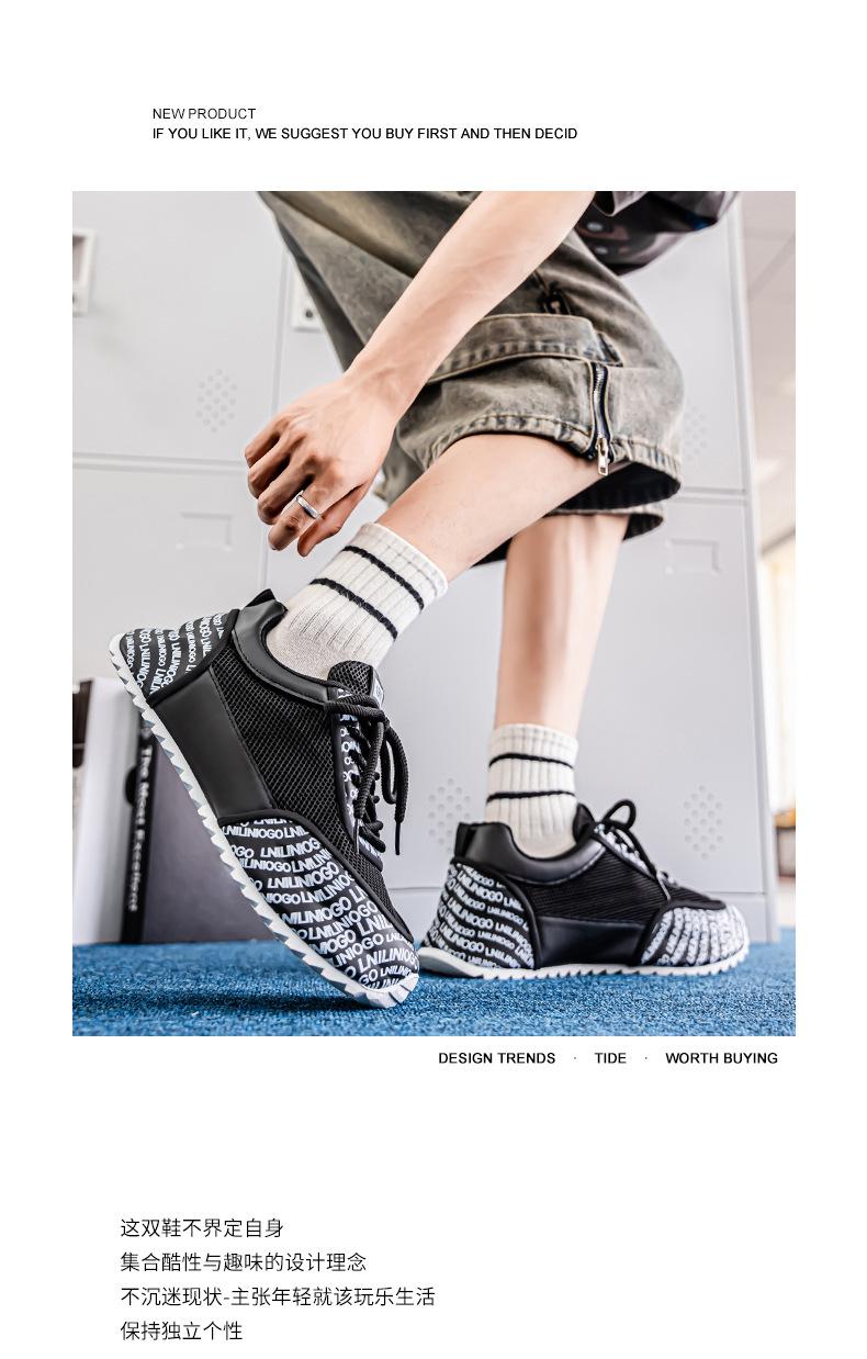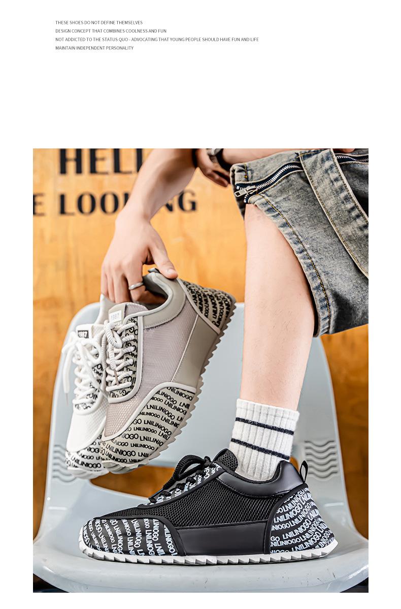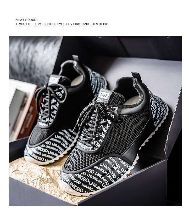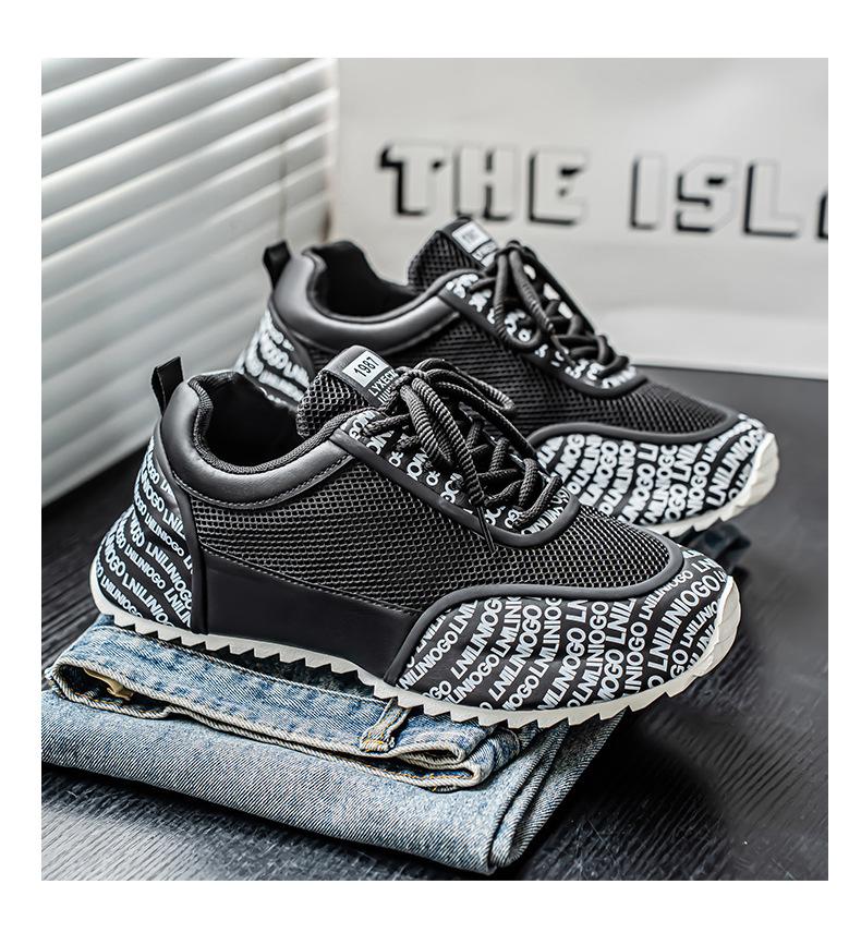 Zapatos Europeos para Hombre Verano Nuevo Malla Transpirable Zapatos Deportivos Casuales con Letras Estampadas que Aumentan la Altura Zapatos de Papá a la Moda