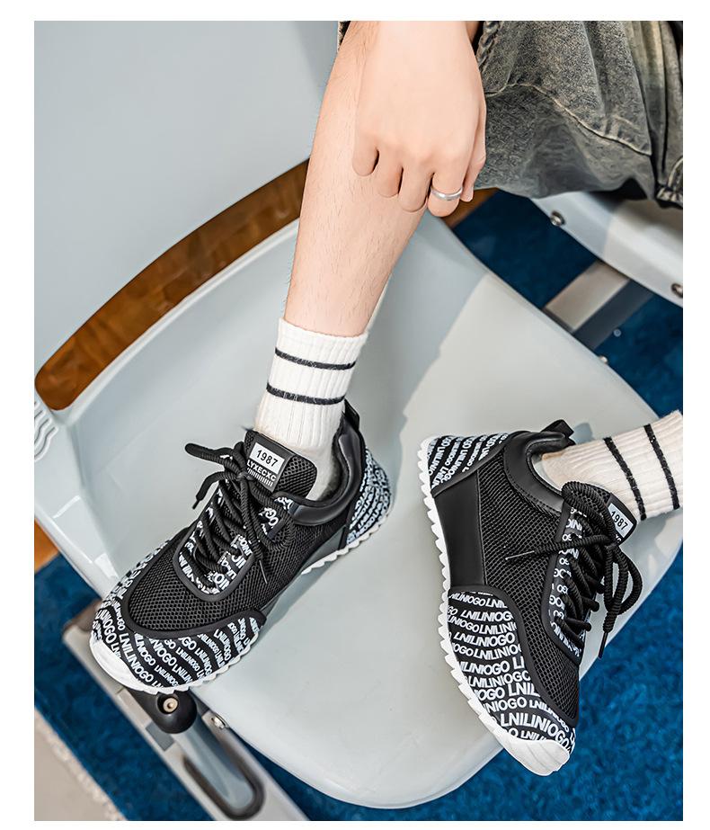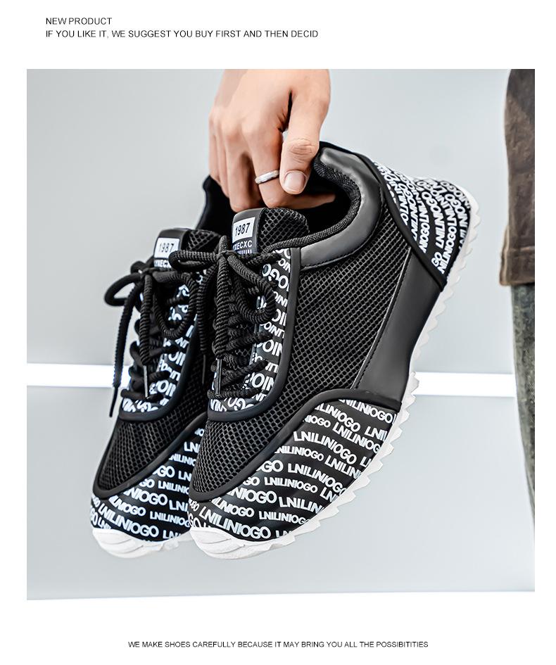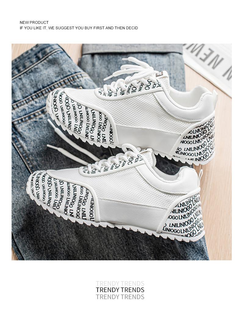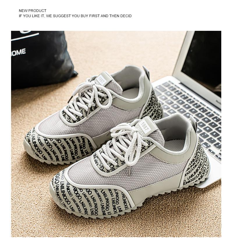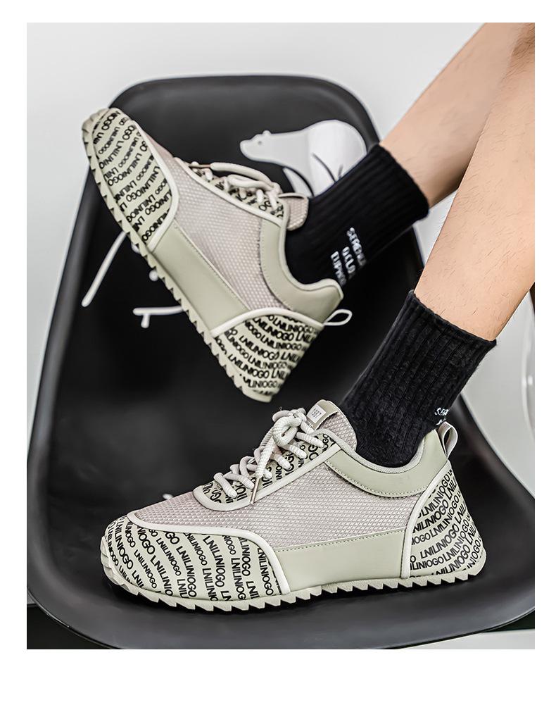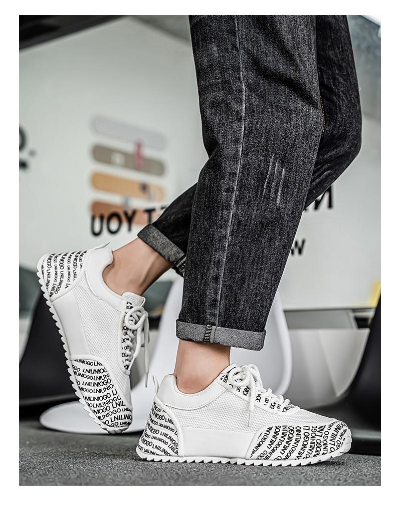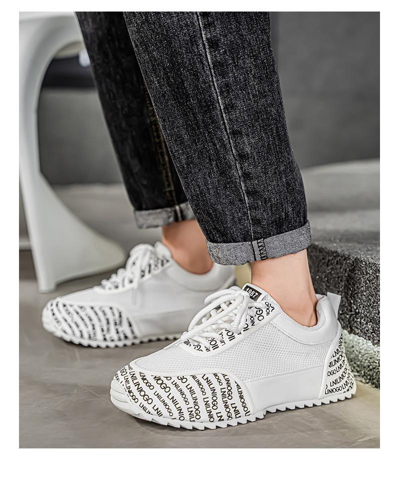 Zapatos Europeos para Hombre Verano Nuevo Malla Transpirable Zapatos Deportivos Casuales con Letras Estampadas que Aumentan la Altura Zapatos de Papá a la Moda