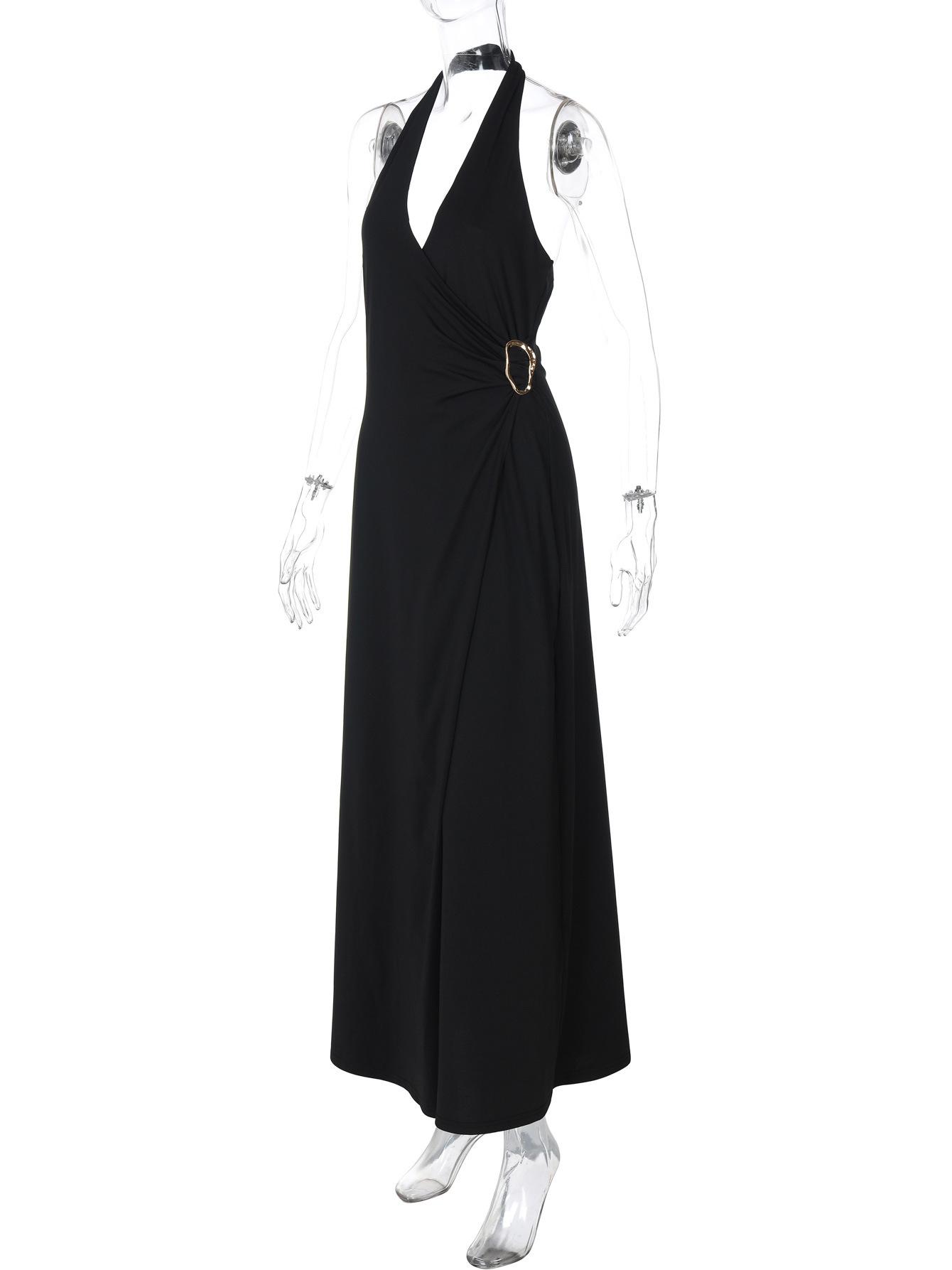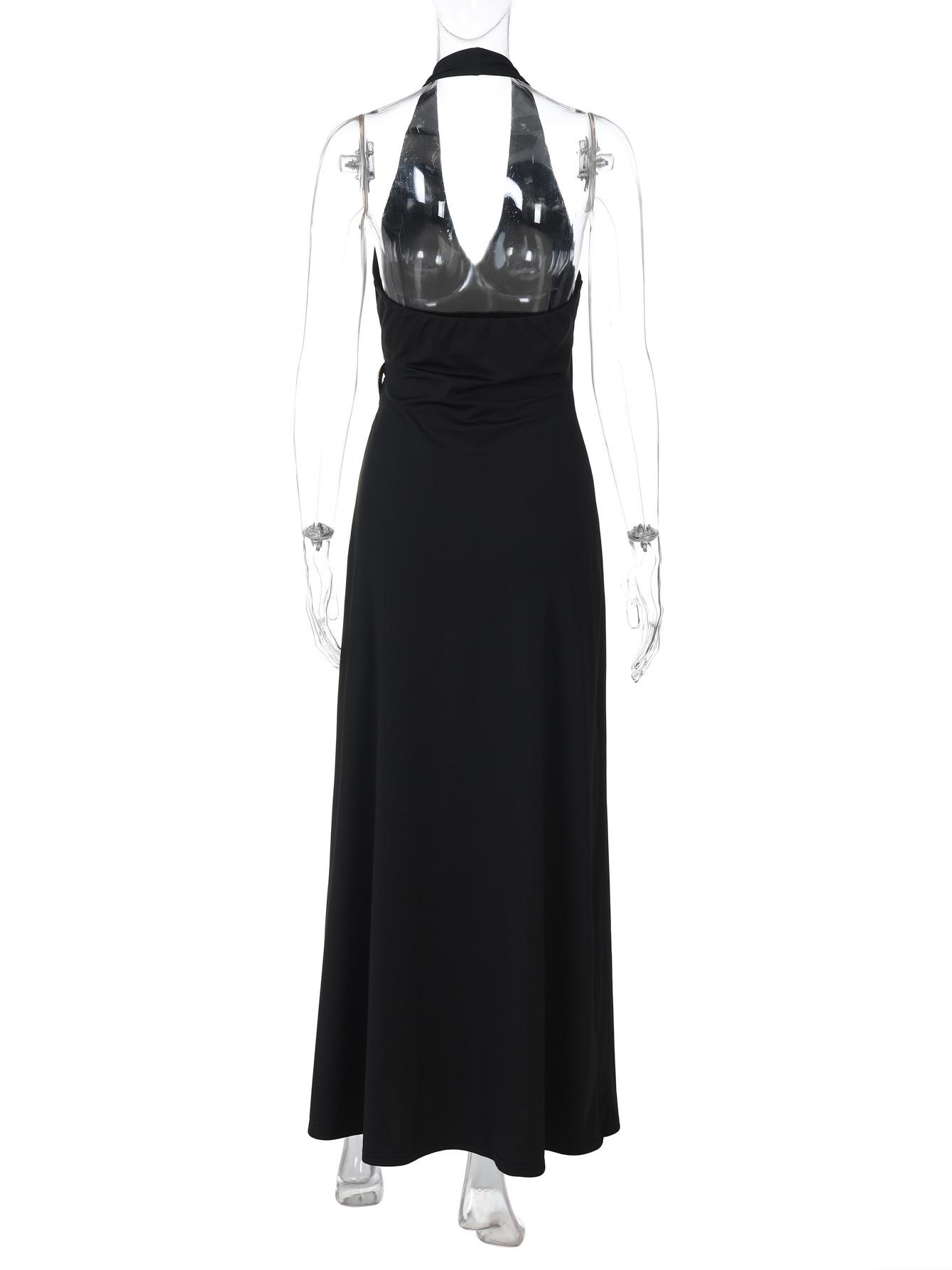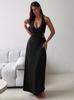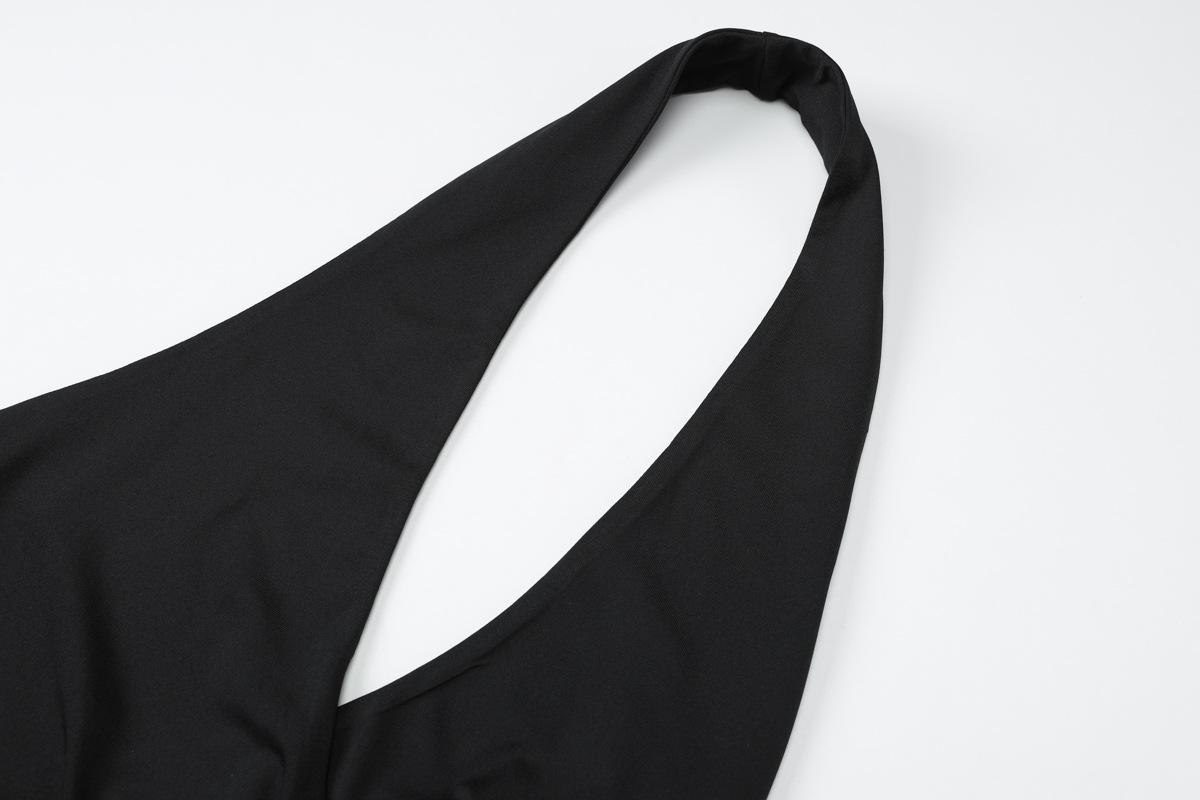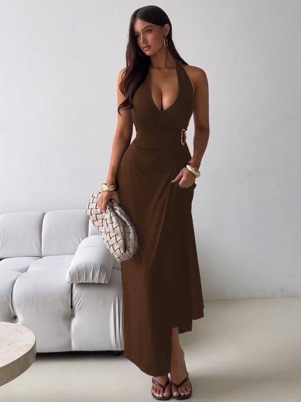 Ropa de mujer europea y americana 2025 verano nuevo deseo puro chica hot cuello halter profundo V escote bajo vestido sin mangas color sólido de alta gama