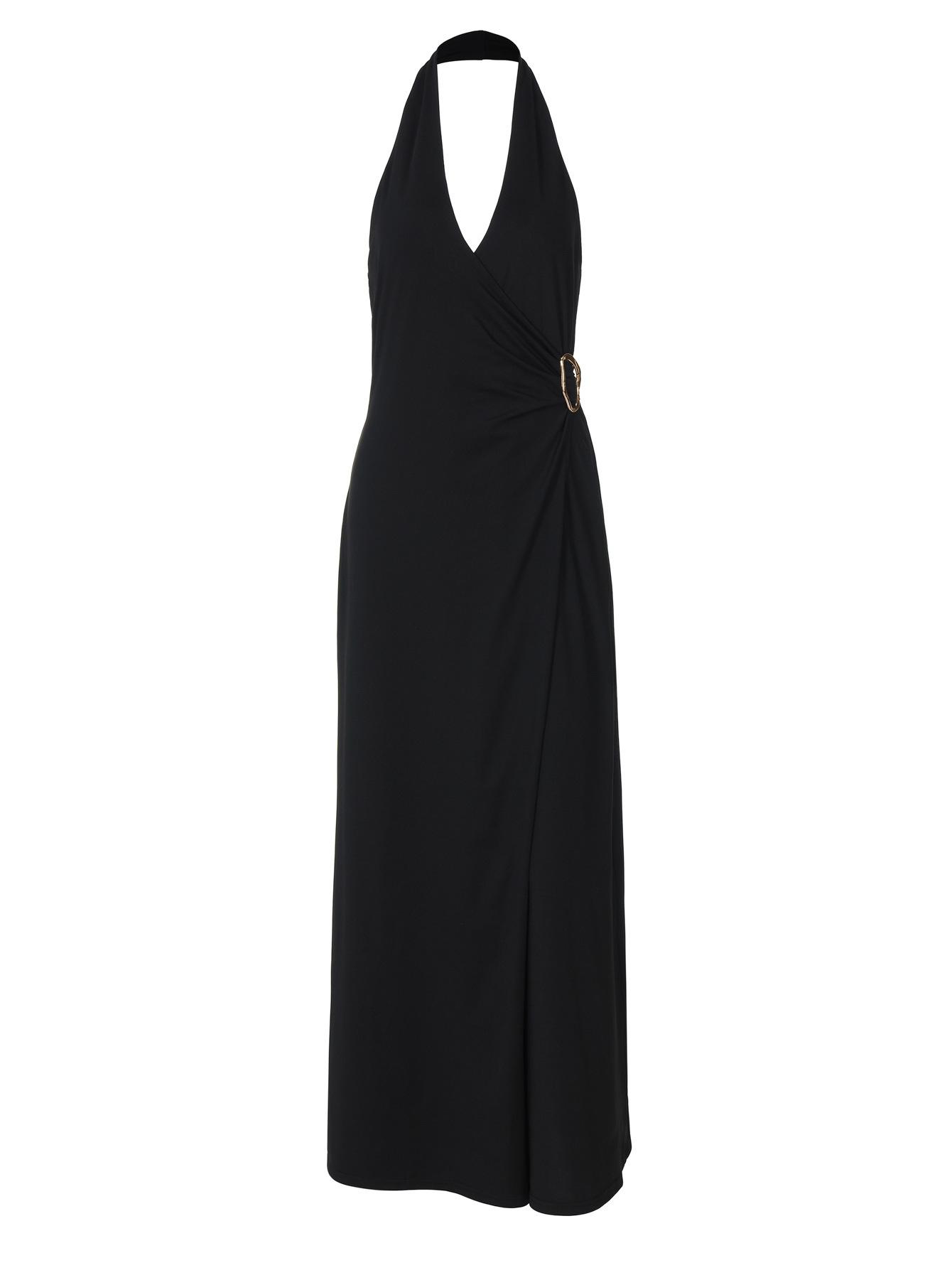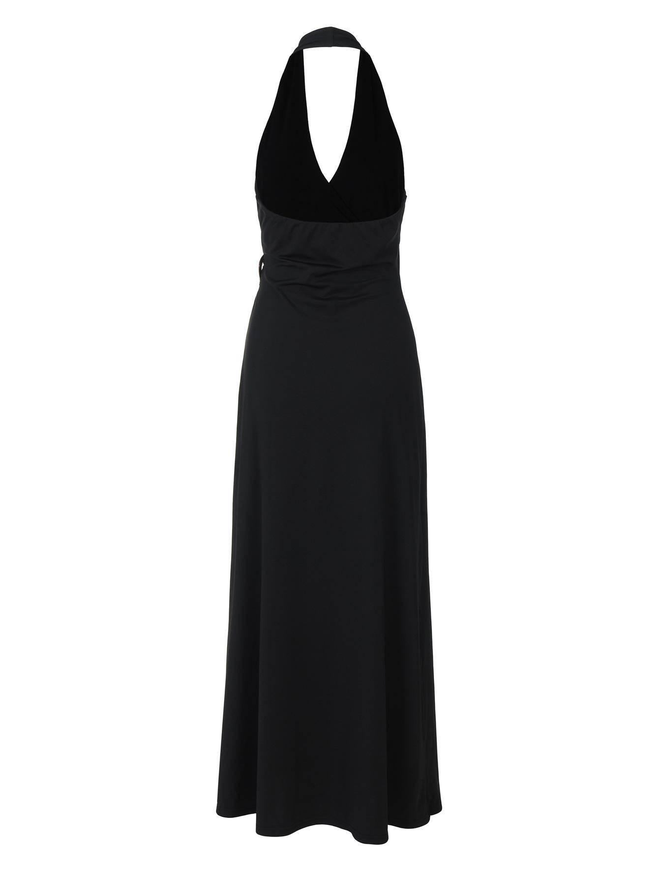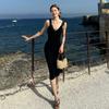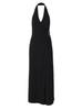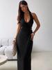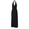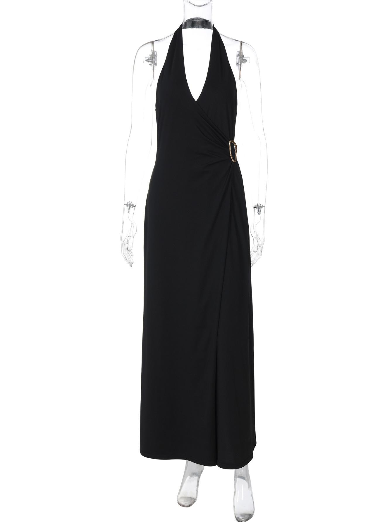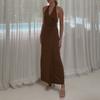 Ropa de mujer europea y americana 2025 verano nuevo deseo puro chica hot cuello halter profundo V escote bajo vestido sin mangas color sólido de alta gama