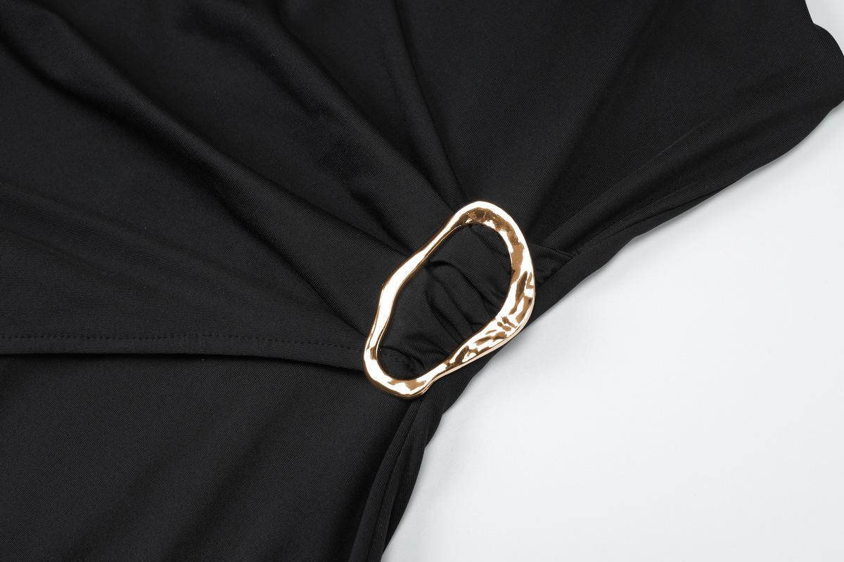 Ropa de mujer europea y americana 2025 otoño nueva moda plisado cuello oblicuo hombros descubiertos moderno casual sexy vestido de cadera femenino