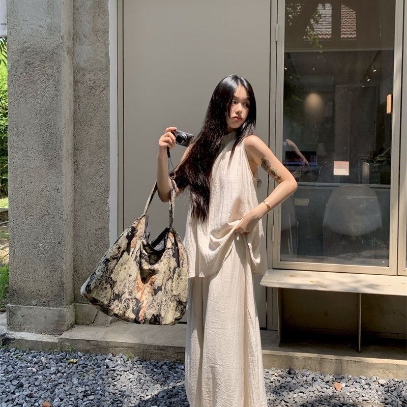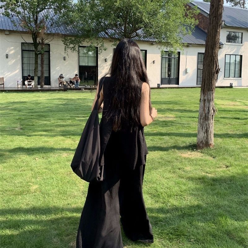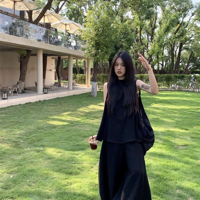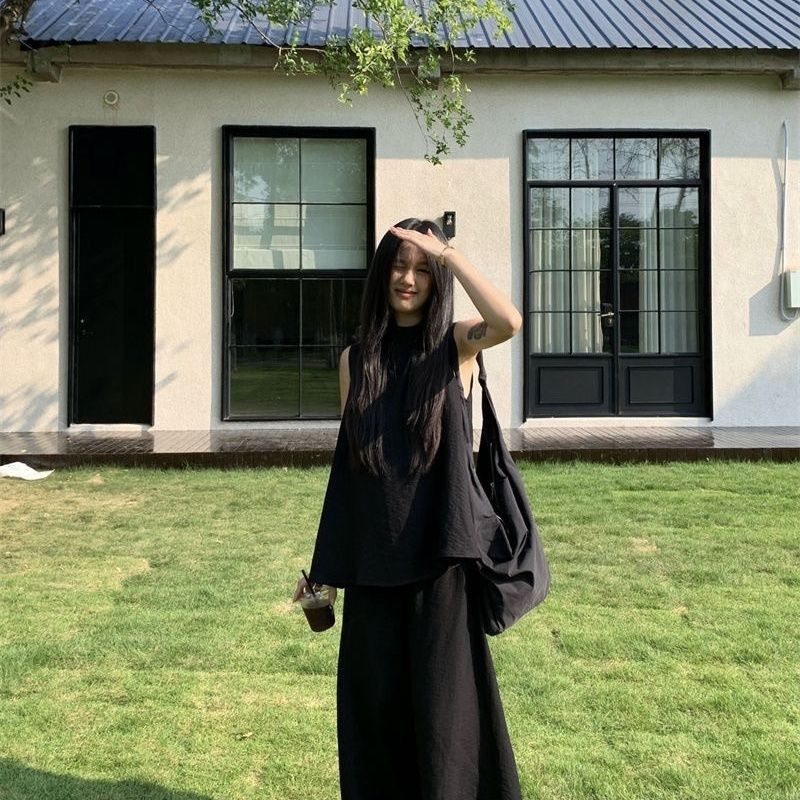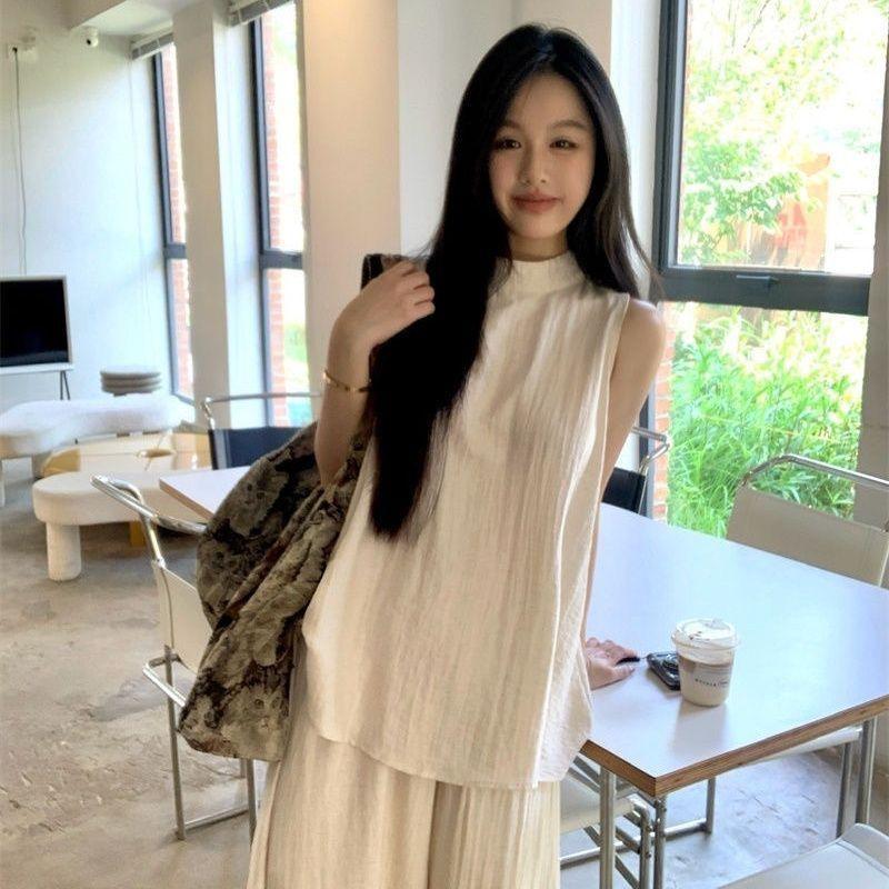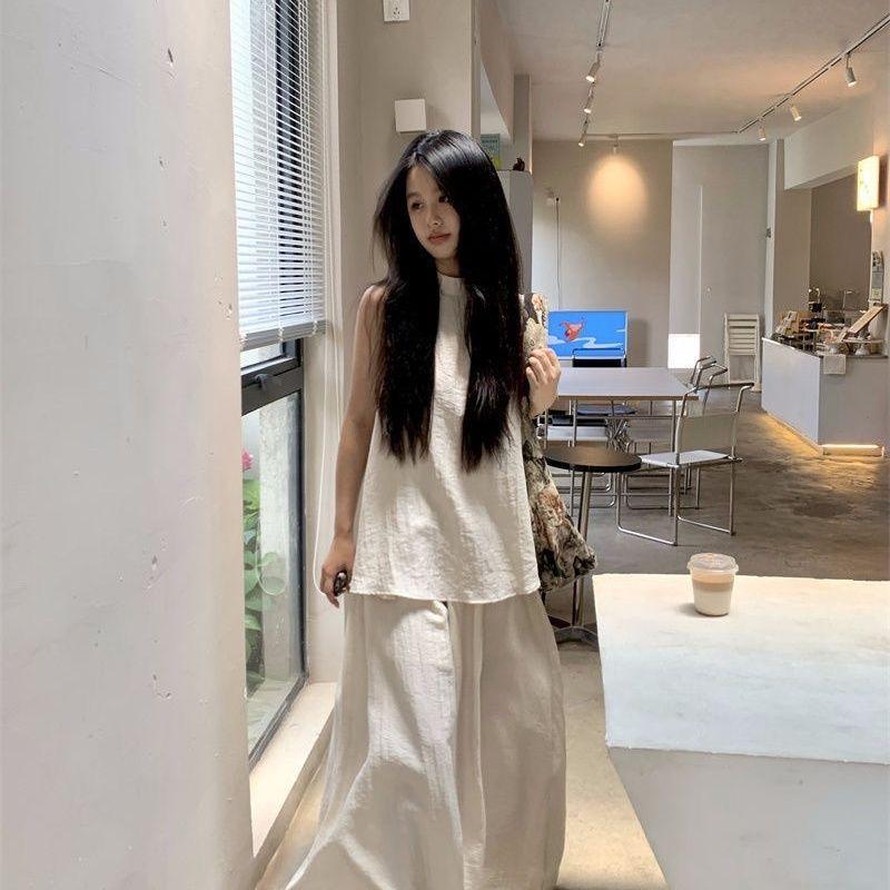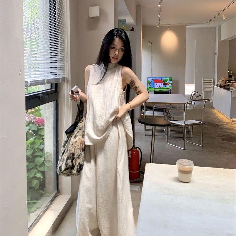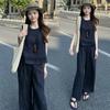 Moda de Verano 2025 Nuevo Traje Casual Relajado Top sin Mangas Chaleco Culottes de Pierna Ancha Conjunto Suelto de Dos Piezas