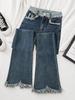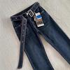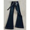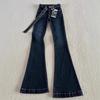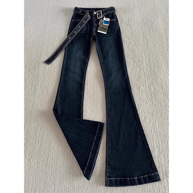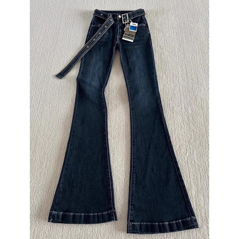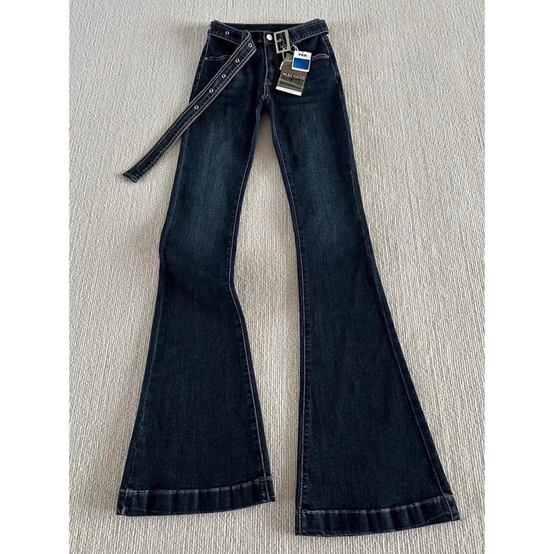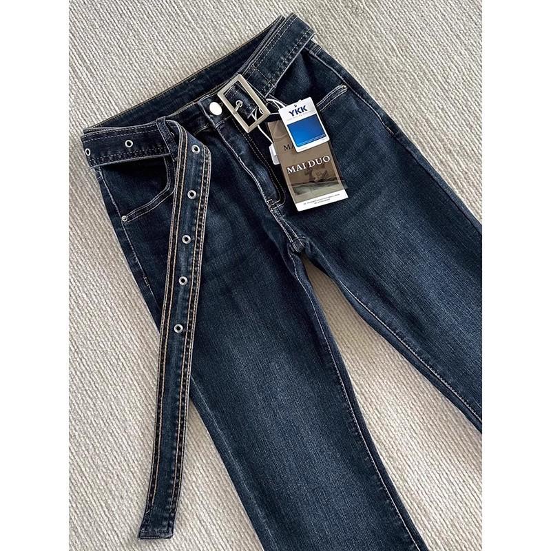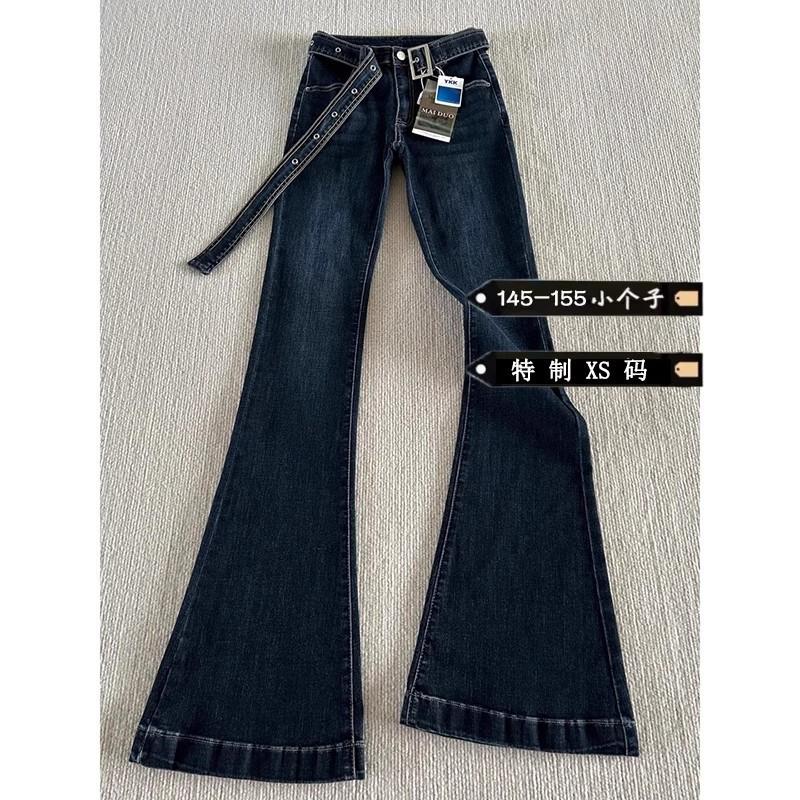 Jeans Micro-acampanados Pequeños Azul Oscuro 150cm Primavera Nuevo Tiro Medio Elásticos Ajustados Pantalones Herradura de Mujer