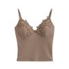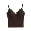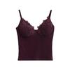 Deseo Puro Chica Caliente Sexy Camisola de Cuello en V con Almohadilla en el Pecho para Mujer Encaje Interior Calado Top Pequeño