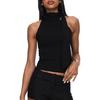 Chaleco de Tirantes para Mujer 2025 Estilo Europeo y Americano Estampado de Letras Línea Slim Color Empalmado sin Mangas Pulóver