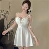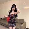 Ins Chica Caliente Cintura Ajustada Adelgazante Corte Bajo Espalda Descubierta Falda Elegante Vestido Sling con Lazo y Aberturas Deseo Puro para Mujer