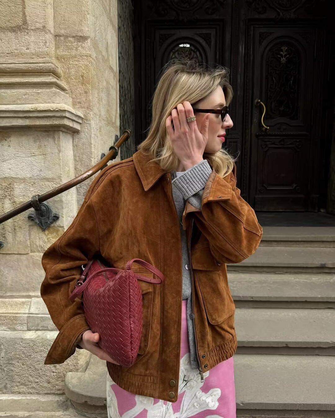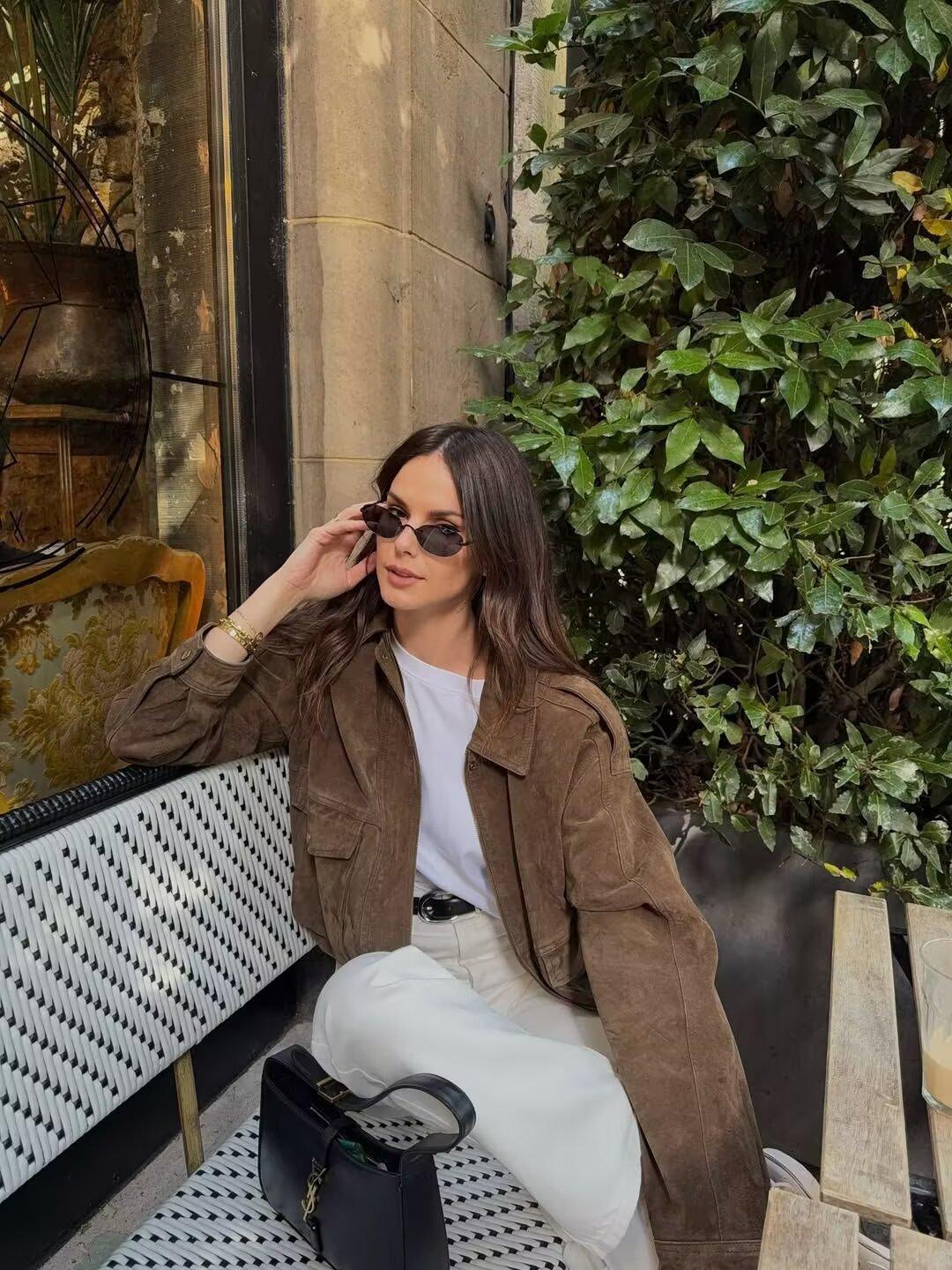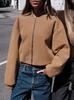 Chaqueta Abrigo de Otoño Simple Solapa Color Sólido Suelto Texturizado para Mujer Estilo Europeo y Americano Transfronterizo Nuevo Modelo 2025