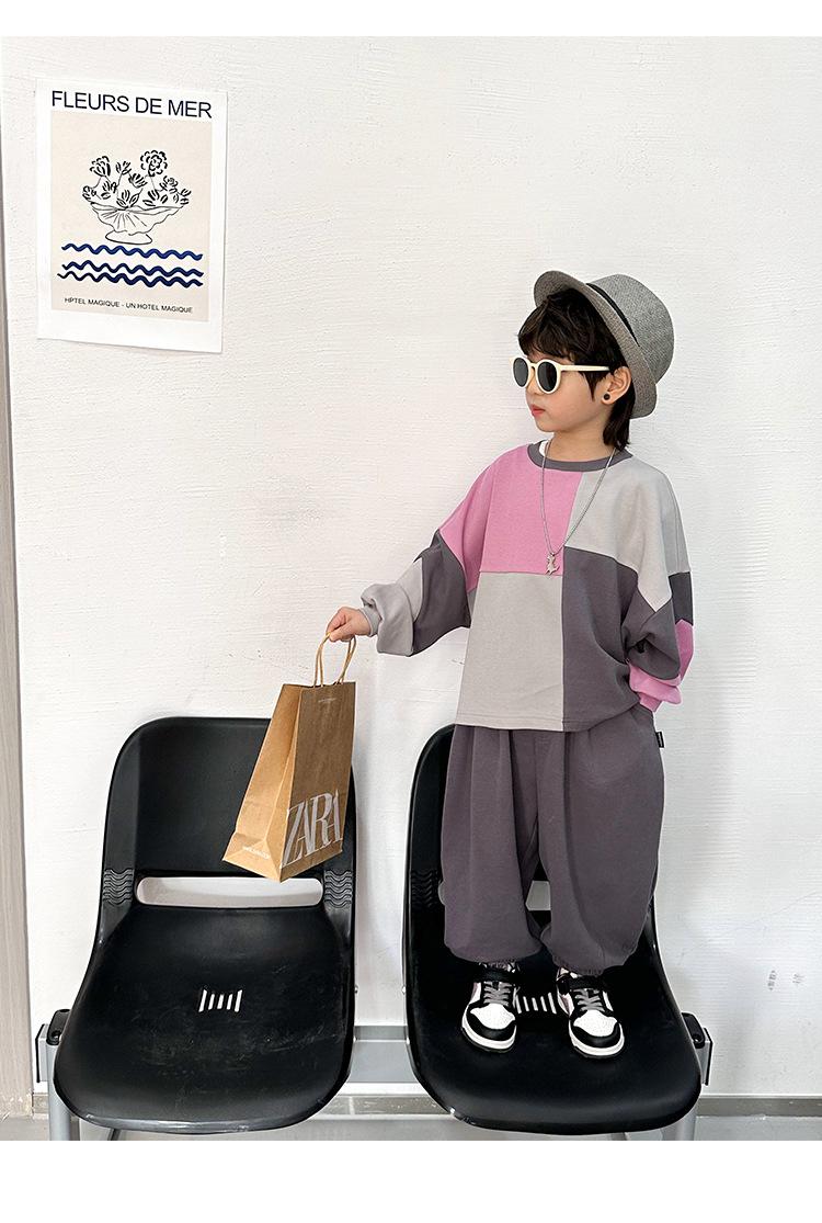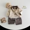 Traje de Otoño para Niño 2025 Nuevo Estilo Bebé Ropa de Primavera Estilo Coreano Bloque de Color a Cuadros Moderno Conjunto de Dos Piezas