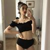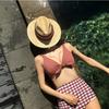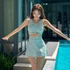 Traje de baño dividido estampado para mujer nuevo japonés y coreano 2022, pantalones de cintura alta, look delgado, sexy, cubre el vientre, bikini