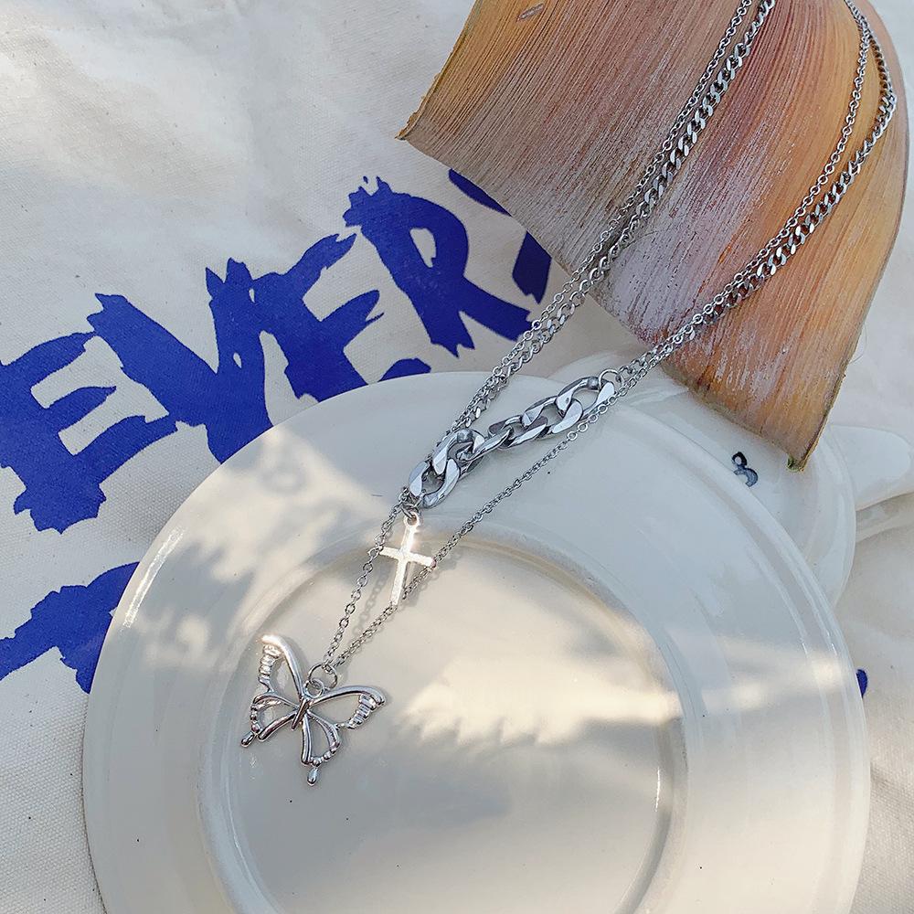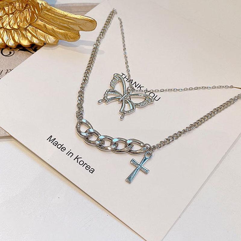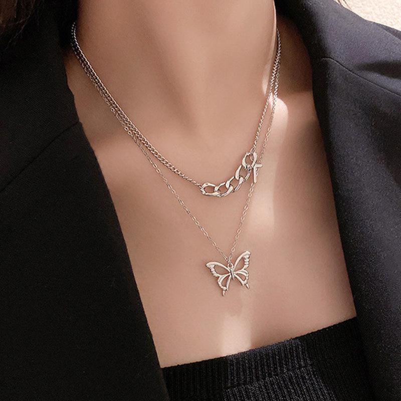 Collar de mariposas multicapa estilo coreano para mujer ins fresco hueco mariposa cadena clavicular viento frío cadena clavicular cadena suéter