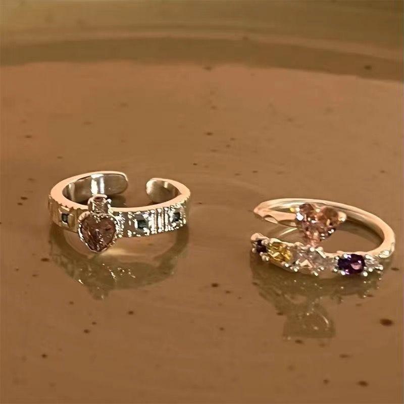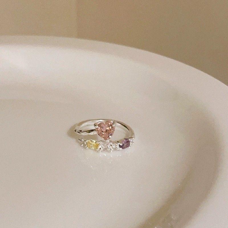 M1124 [pink diamond love ring], M1111 [matte silver pink love ring] opening, M1124+m1111 ring two-piece set