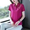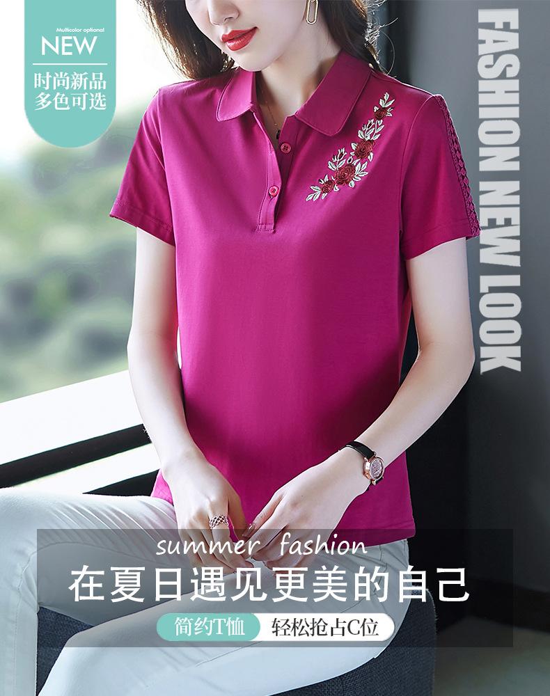 Camiseta de verano de solapa y manga corta para mujer, sencilla, combinable con todo, cómoda de algodón, deportiva, de media manga, top de camiseta ajustada