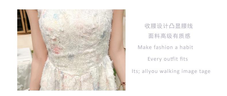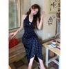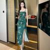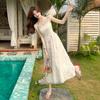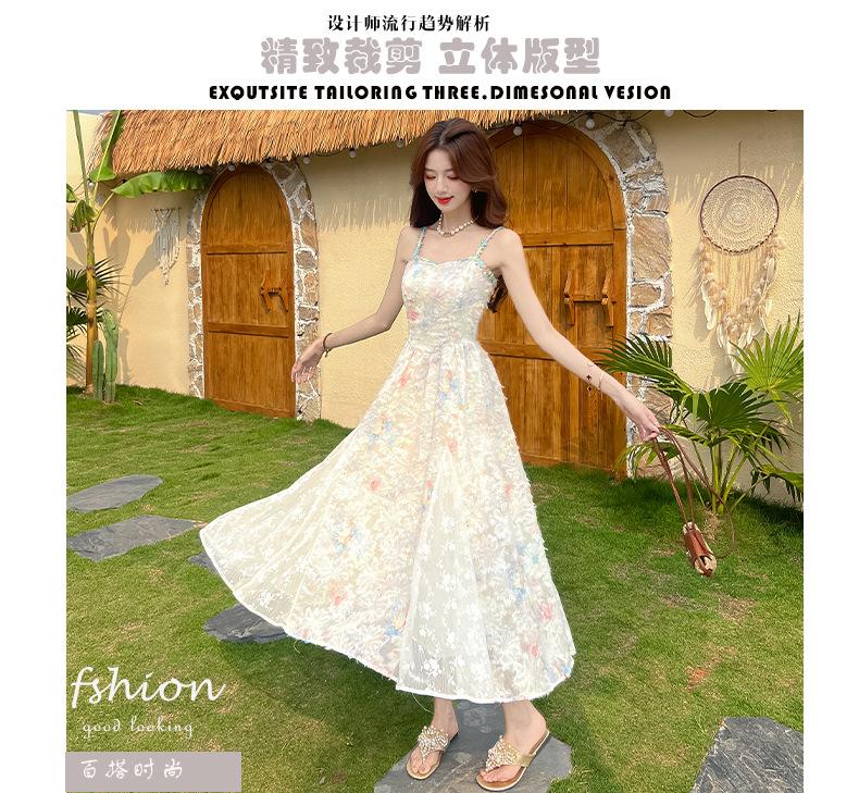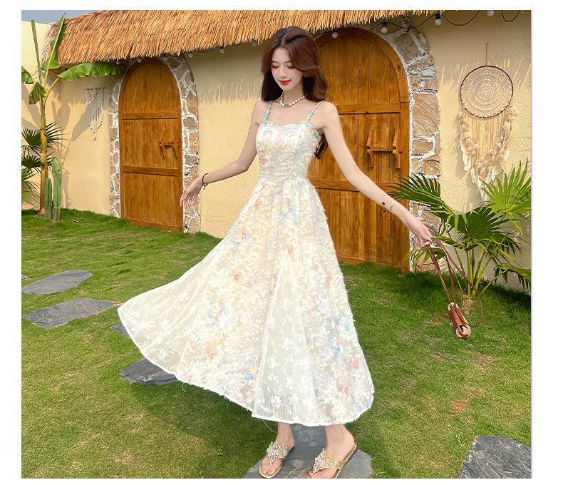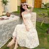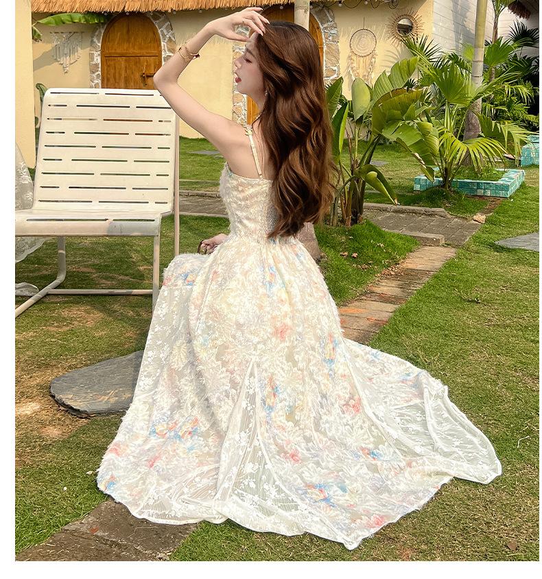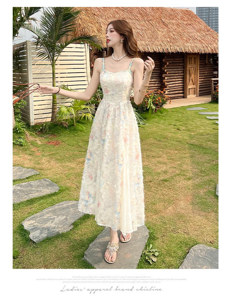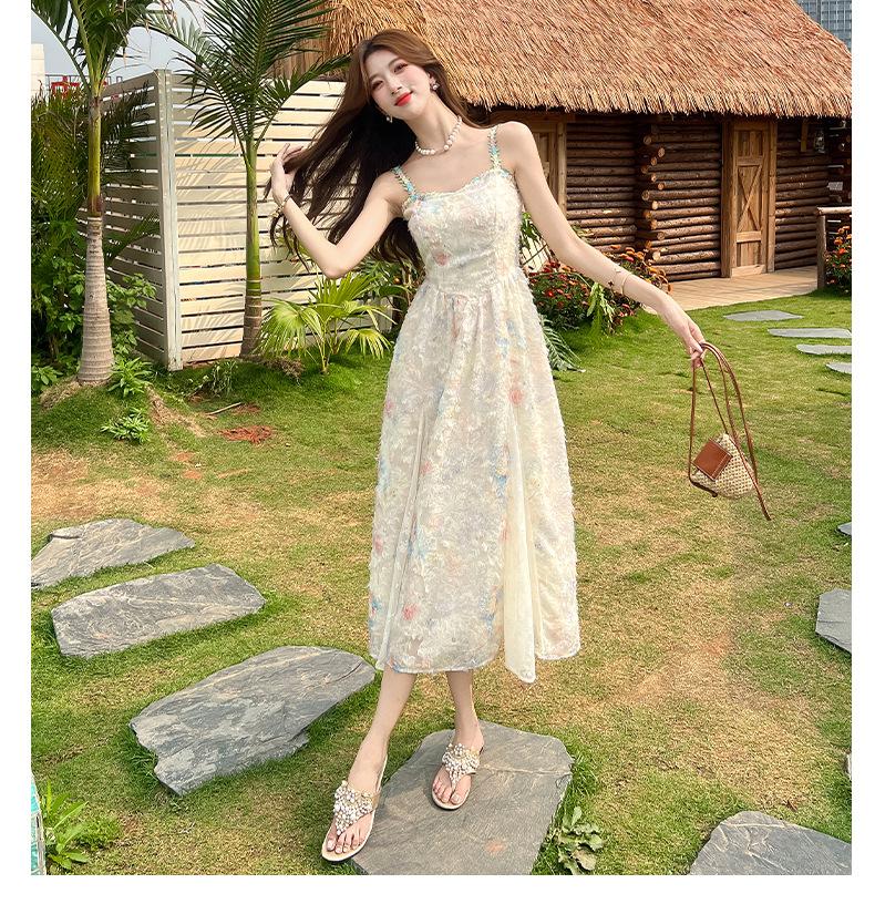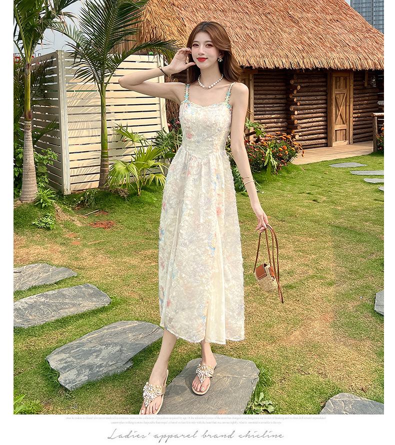 Jardín de Monet Francés 2025 Nuevo Elegante Floral Verano Vestido de Tirantes Estilo Vacacional Cintura Playa Falda Larga