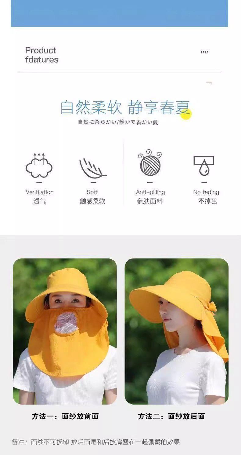 Sombrero Sombrero de Sol de Verano para Mujer Cubre-Cara Sombrero de Sol Ala Grande Sombrero Fresco para Exterior Protección UV Recolección de Té Ciclismo Sombrero de Sol